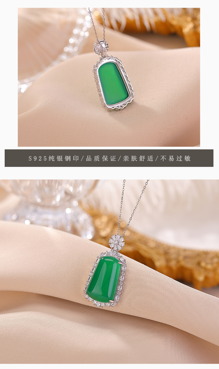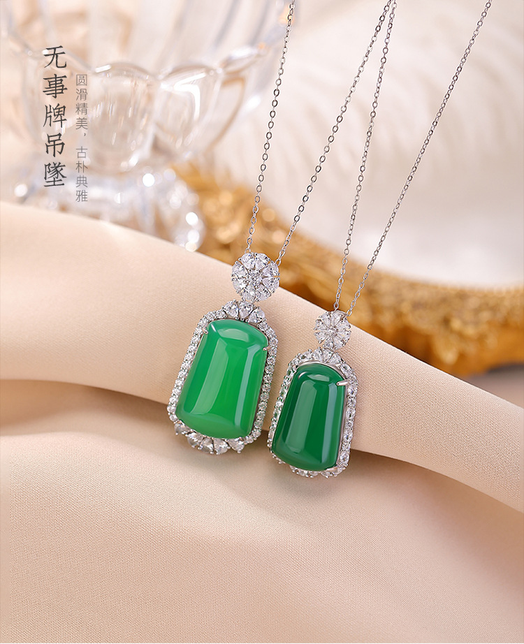 【清欢一度】S925纯银绿玉髓无事牌吊坠【CW-DZ07144】