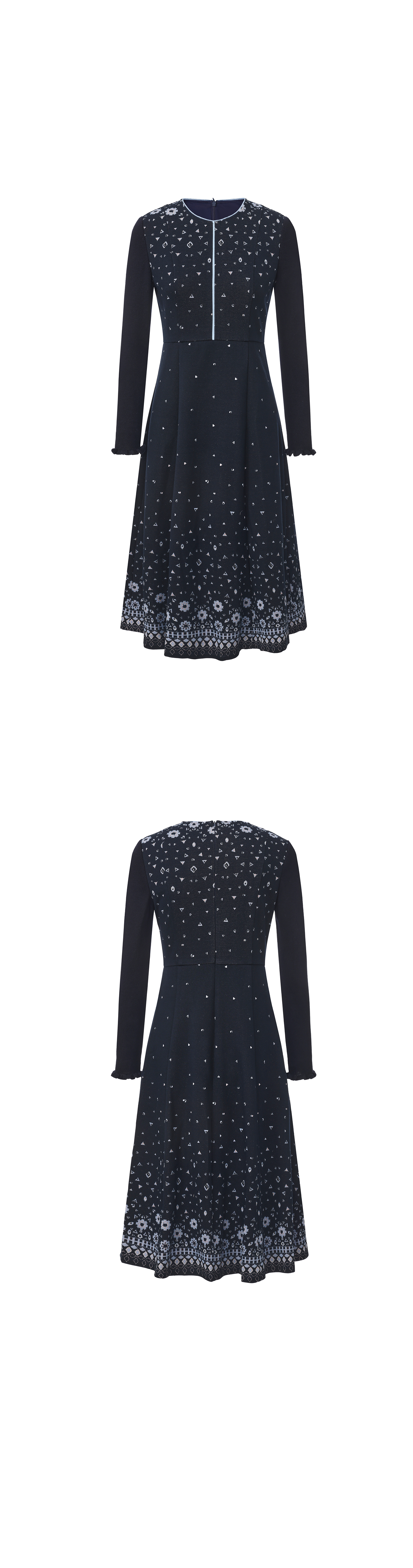司歌绒感蕾丝修身高贵长袖连衣裙A901238X