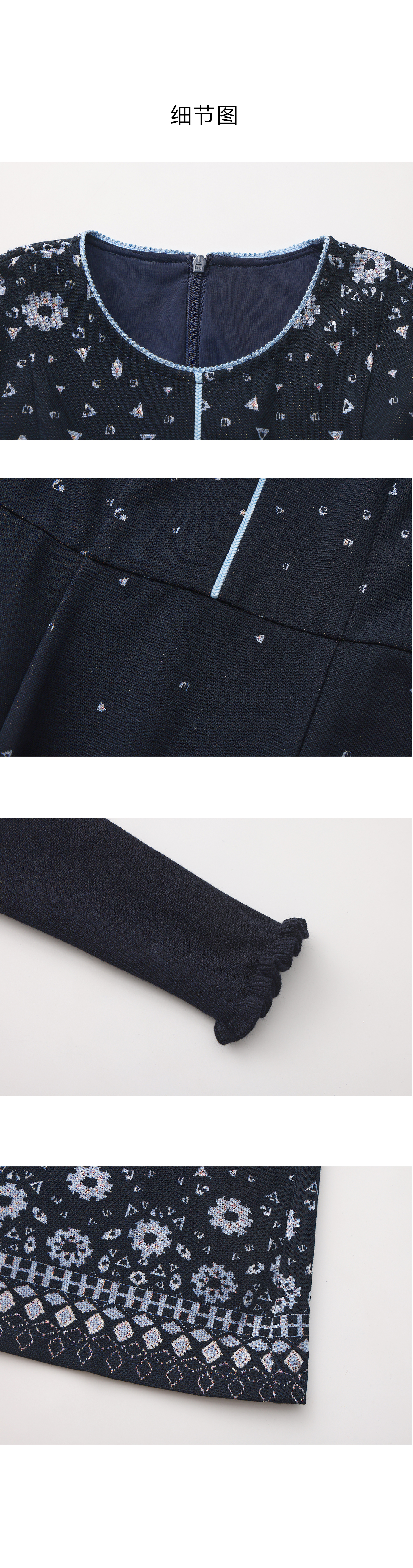 司歌秋冬连衣裙立体几何印花V领弹力长袖A881459