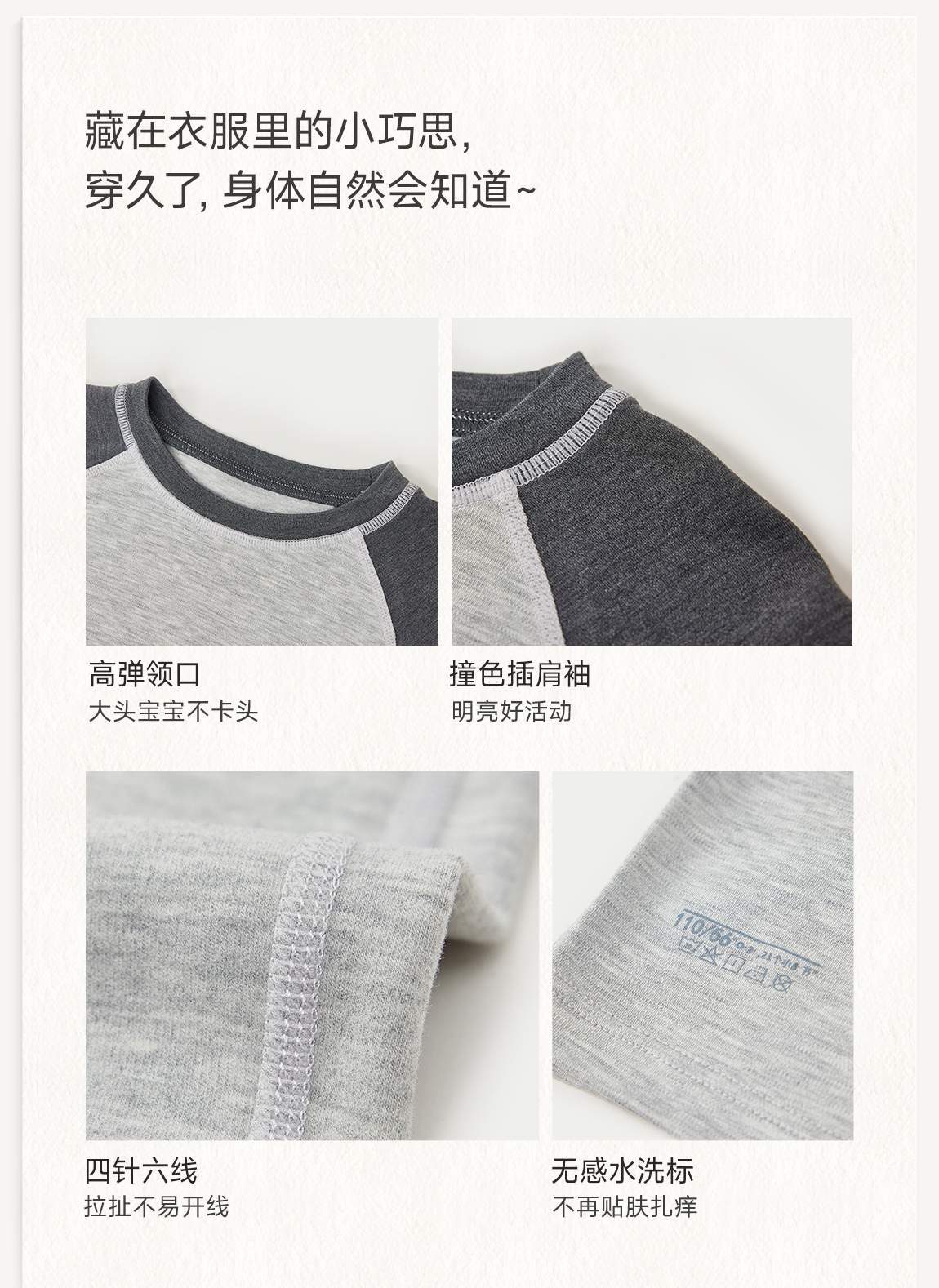 *【小暖皮山茶油养肤】Q21小暖皮中暖圆领套装吸湿发热秋衣秋裤拼色款