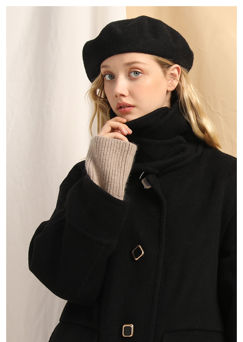 羊毛呢的材质,温暖又有质感,羊毛的菇凉们记得不可以机洗哦,也不建议水洗,如果要洗涤最好是干洗。实在怕麻烦的话,冷水+羊毛洗涤剂略浸泡十几分钟,轻柔洗涤。还有,羊毛呢的面料是会有一点掉毛的哈,这是正常现象。而市面上很多不掉毛的,反而是用甲醛泡过的,非常有损健康。