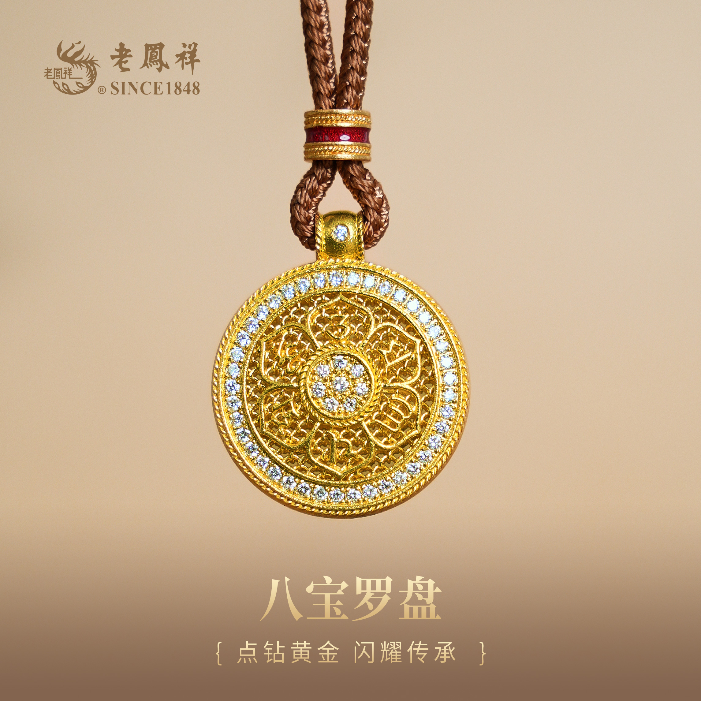 老凤祥黄金点钻足金999八宝罗盘吊坠.门店同款。一口价产品,支持到店自取/包邮到家.