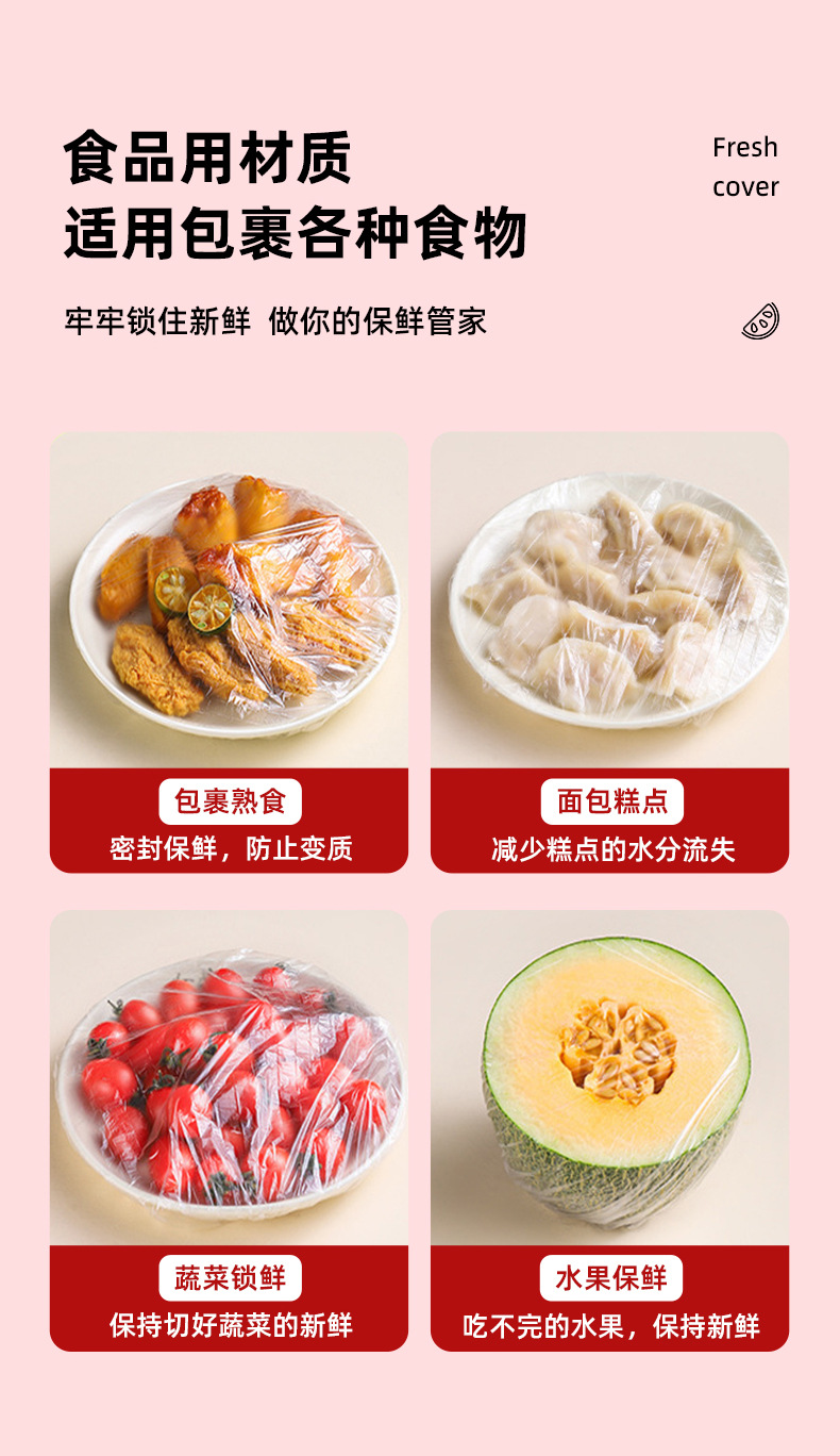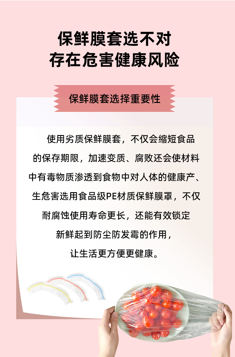 【品牌优选】限时抢500只!【免撕保鲜膜套!大小盘通用,比保鲜膜好用!】食品级加大号500只装 保鲜膜套 剩菜冰箱 家用加厚 一次性PE保鲜套袋-QB