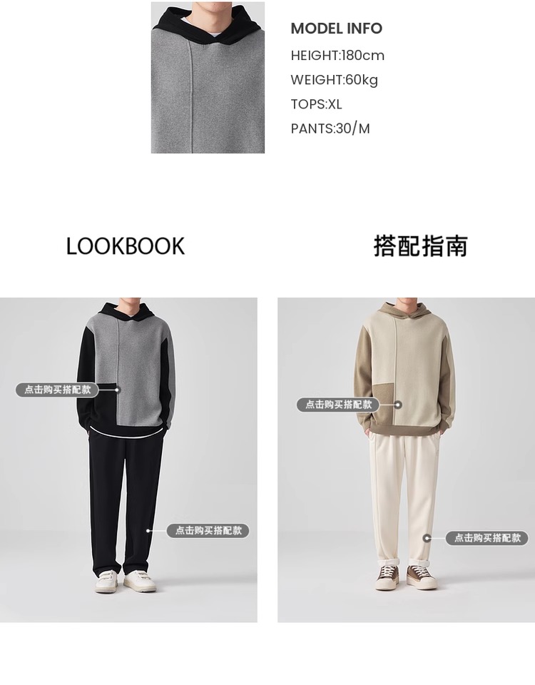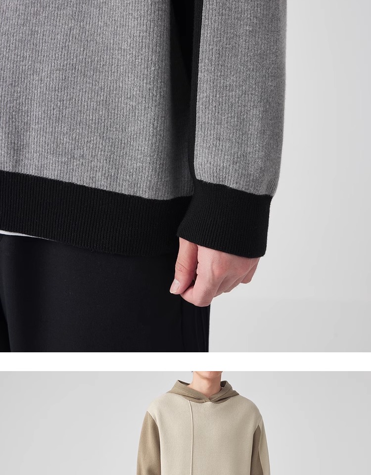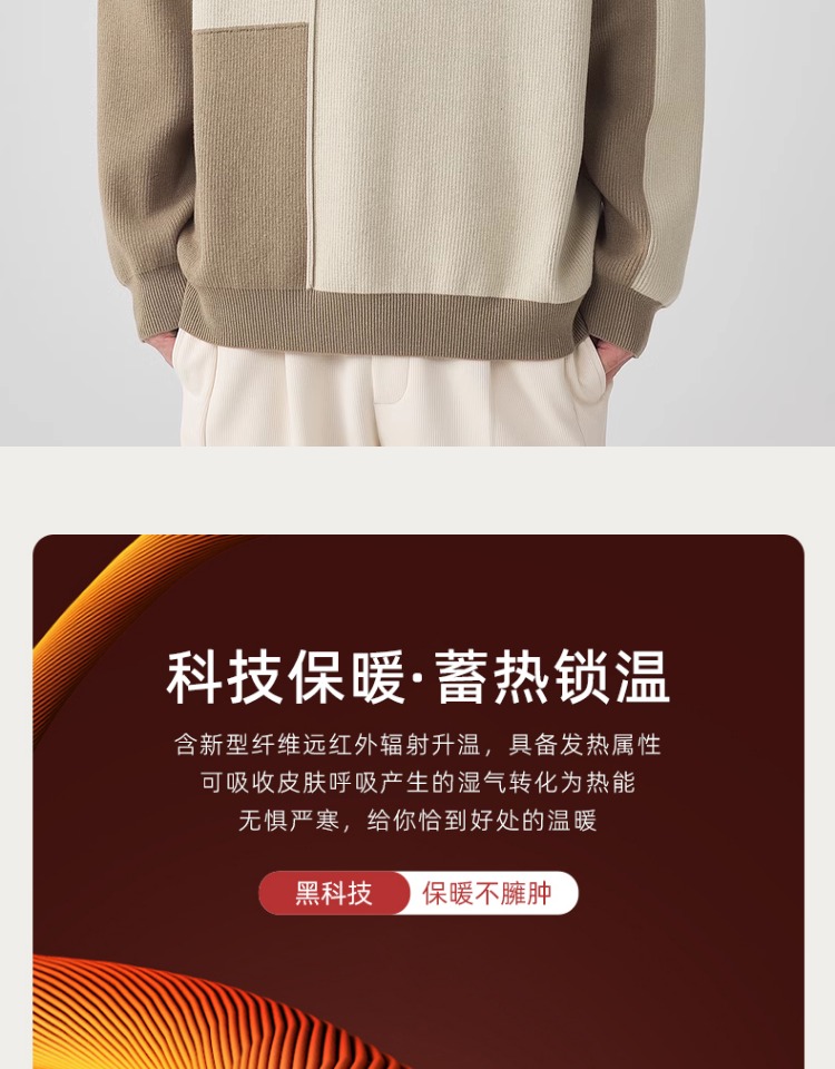 墨麦客男装撞色拼接男士休闲圆领卫衣2024秋季新款重磅肌理上衣男