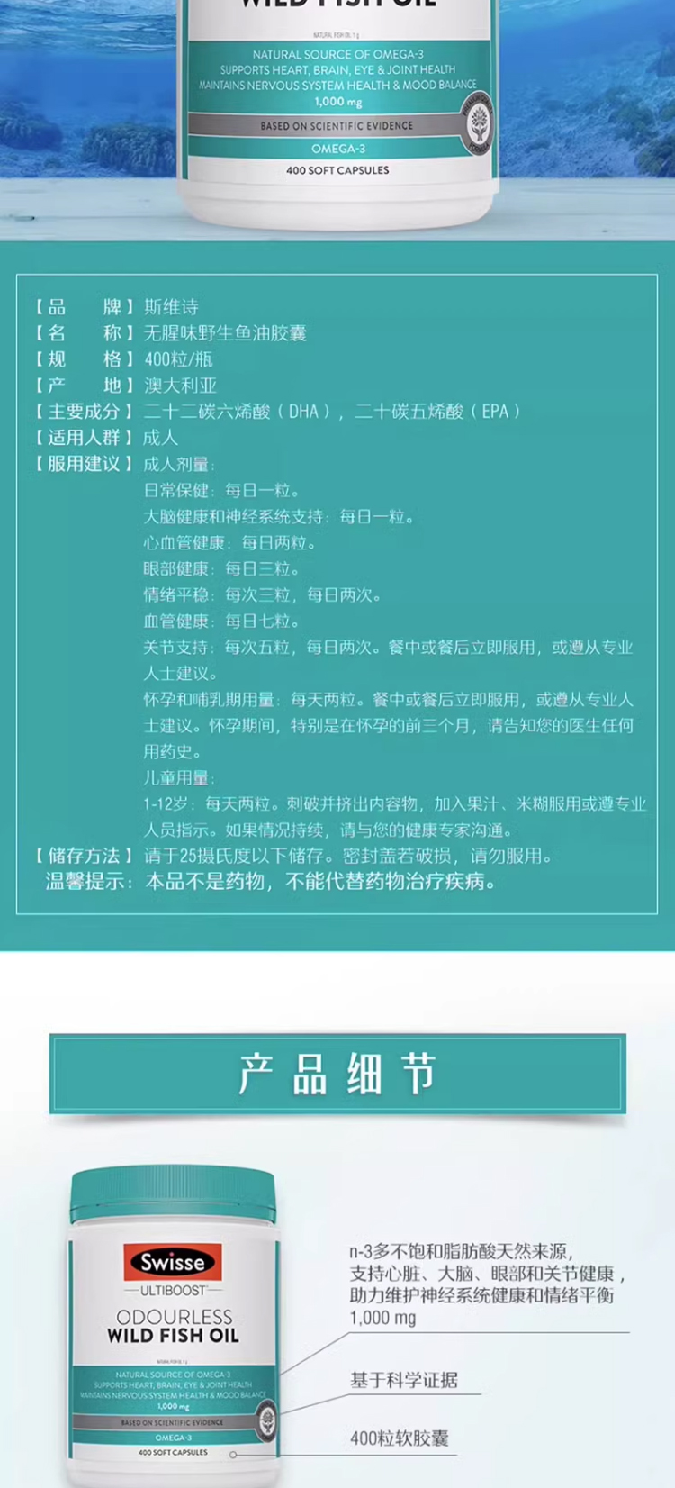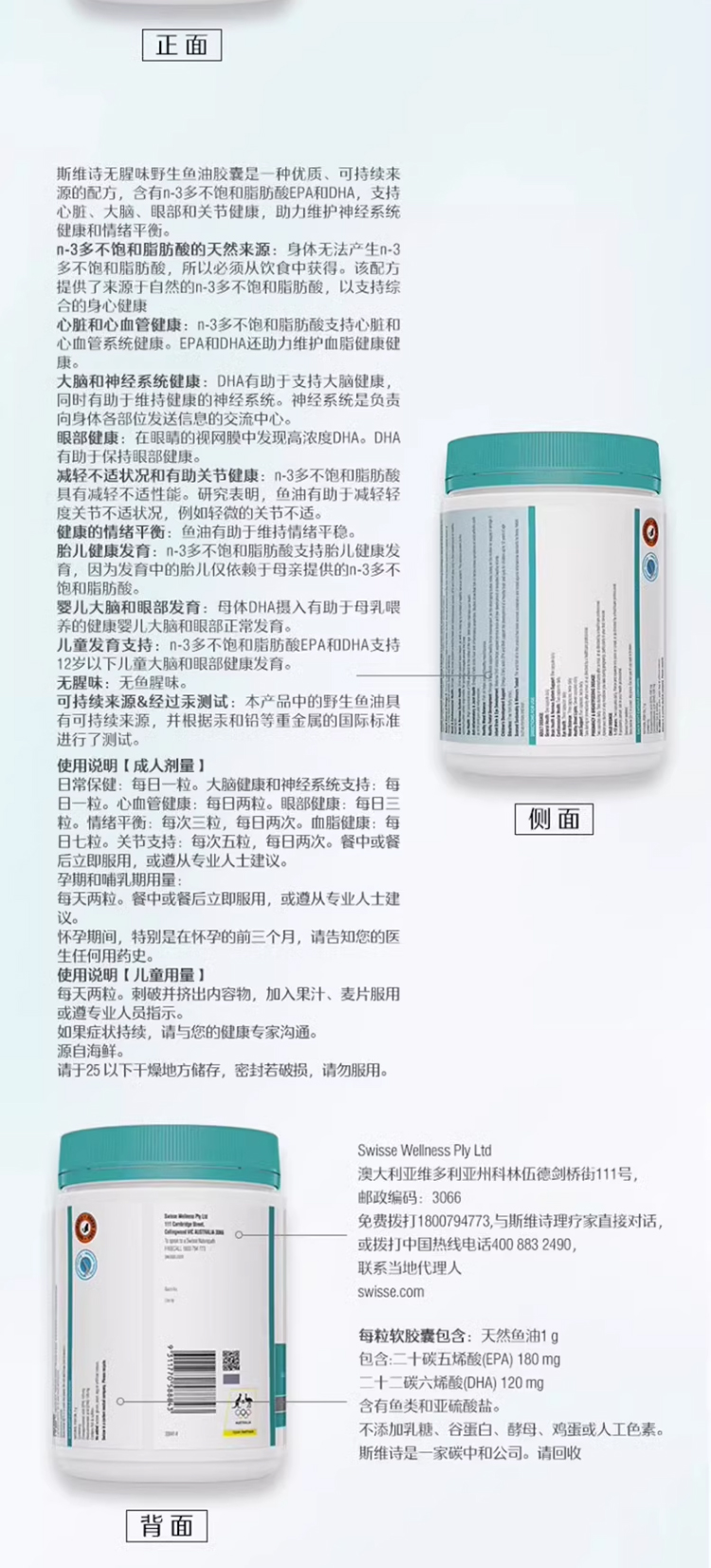Swisse斯维诗无腥味深海鱼油胶囊 1000mg 400粒