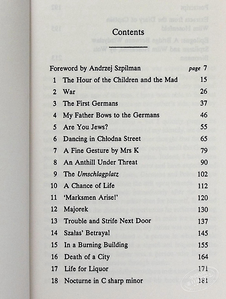"You can learn more about human nature from this brief account of the survival of one man throughout the war years in the devastated city of Warsaw than from several volumes of the average encyclopaedia." INDEPENDENT ON SUNDAY, 28/3/99