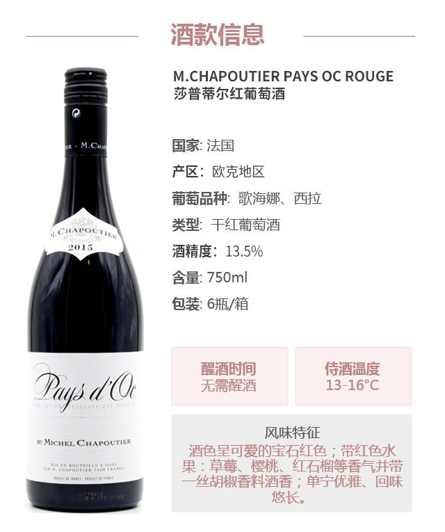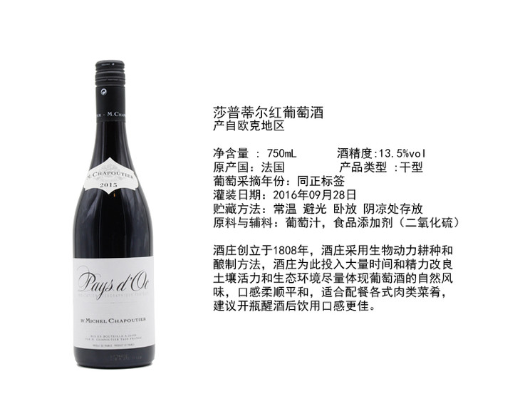 【整箱购买】莎普蒂尔红葡萄酒 M.Chapoutier Pays d'Oc 2013 750ml*6