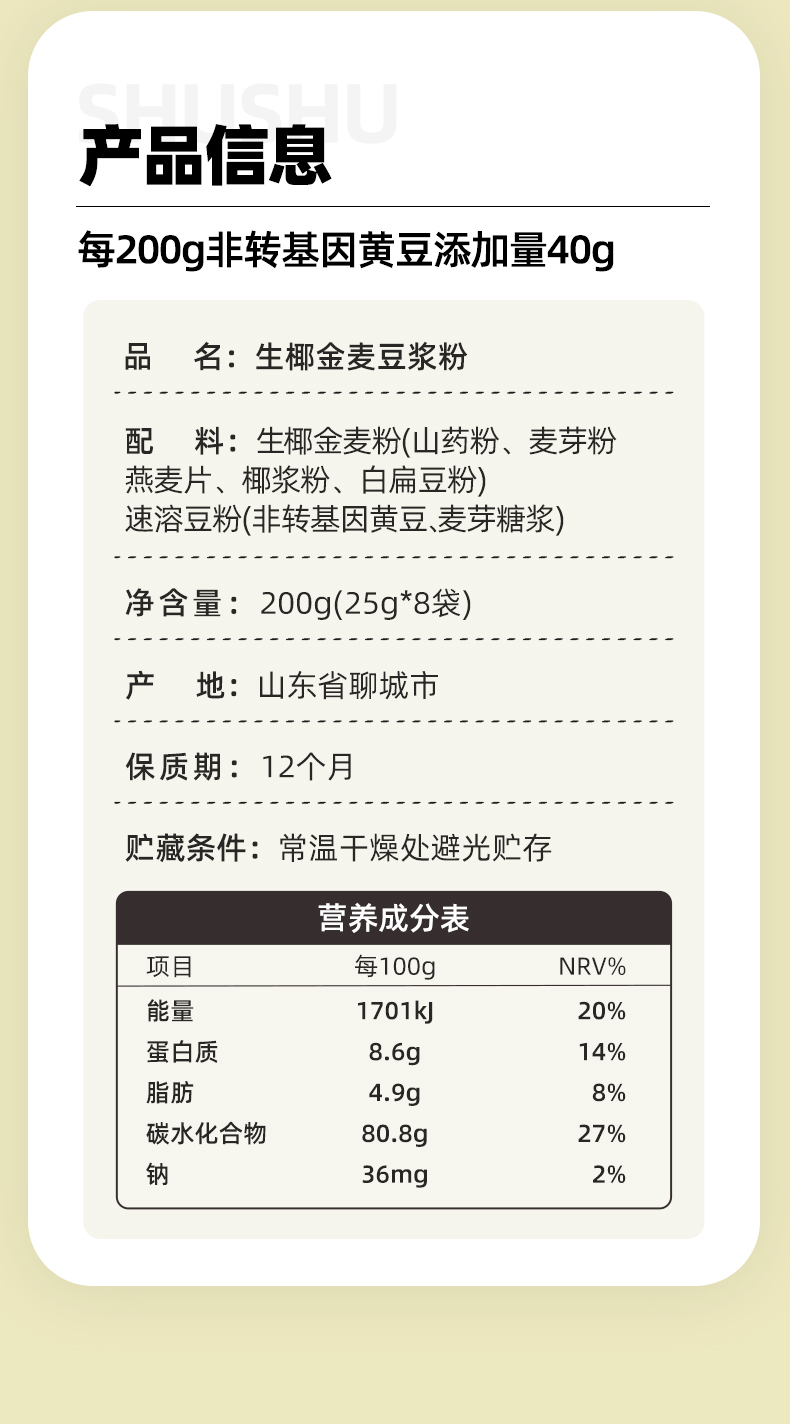 麦菽菽椰香金麦豆浆粉营养早餐200g*3袋