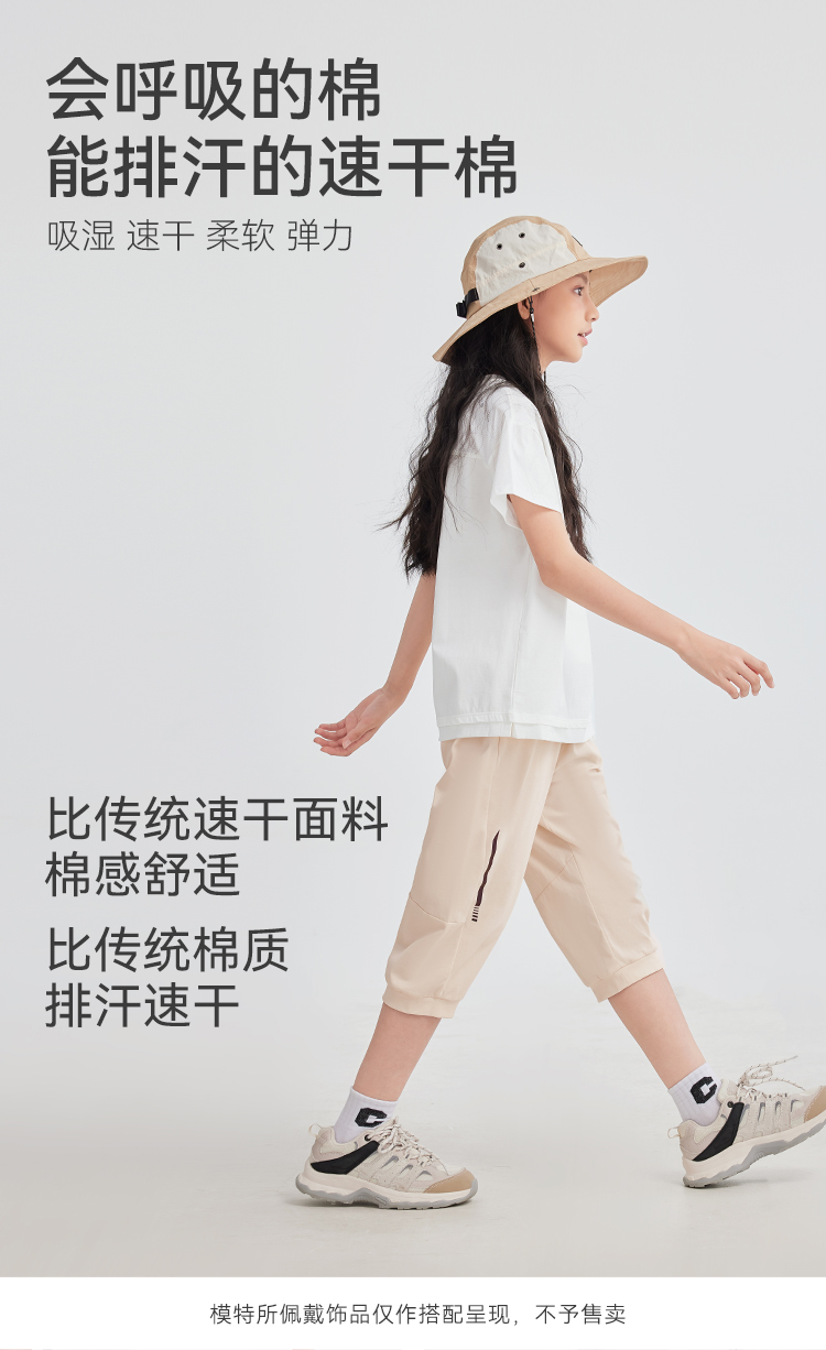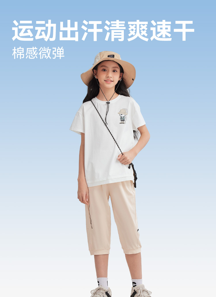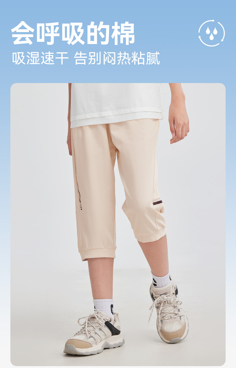 水孩儿童装儿童速干七分裤夏季新款男童棉感透气裤子女童弹力运动裤