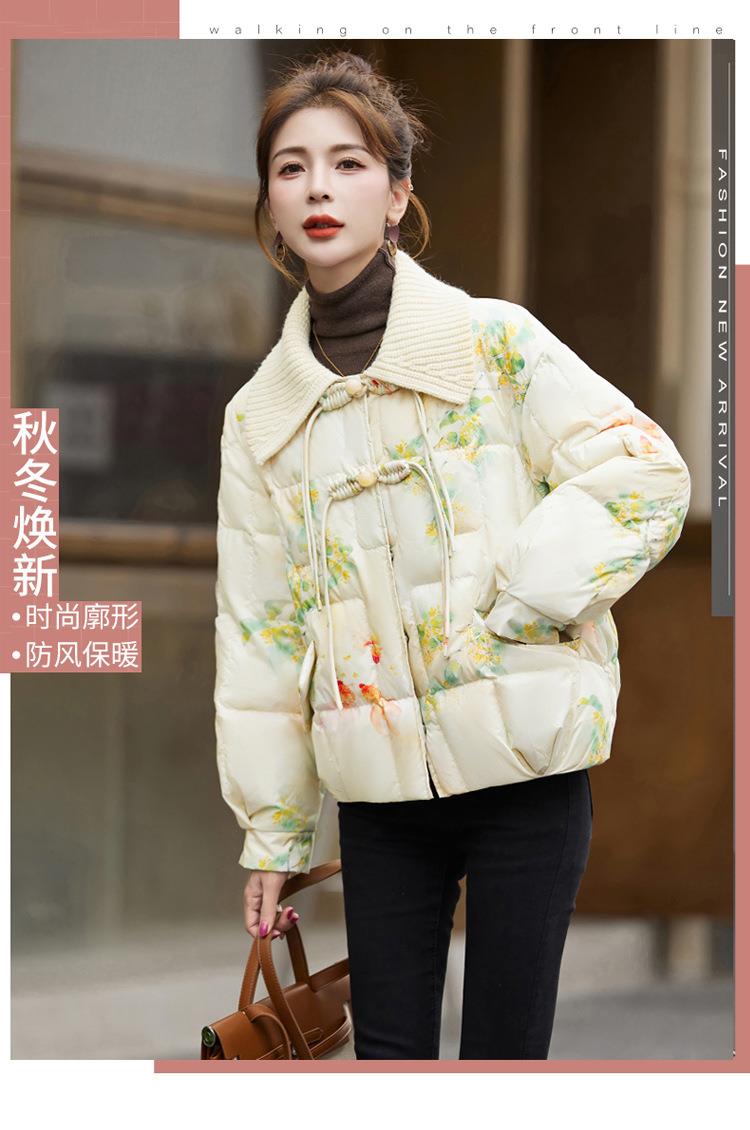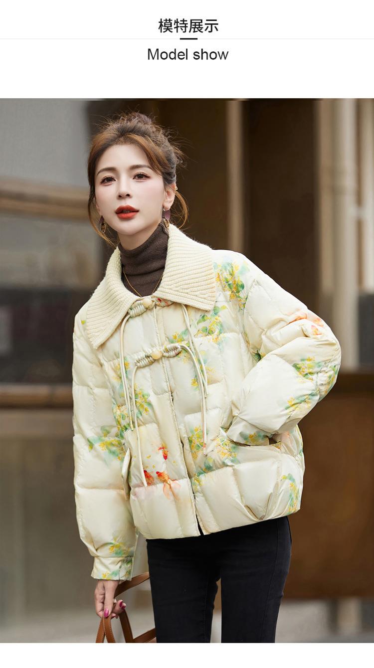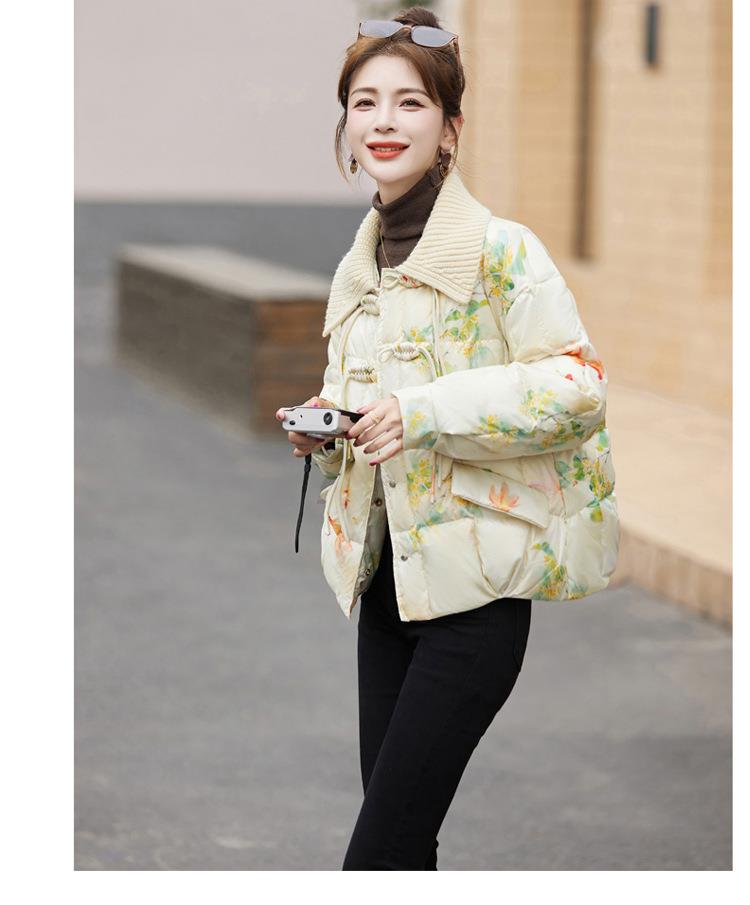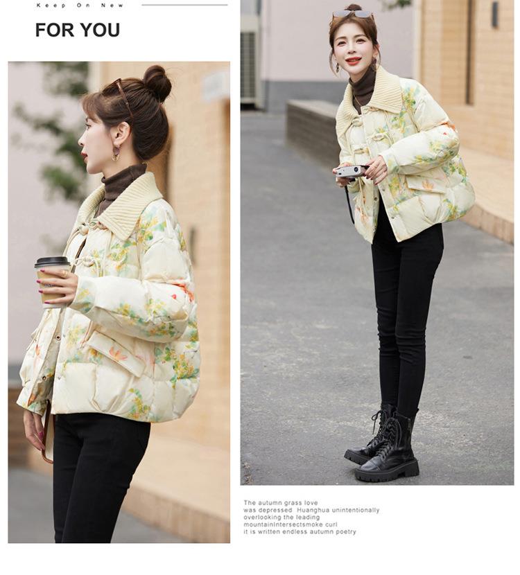 短版羽绒衣女冬2023新款时尚显瘦气质小个子中式国风印花外套