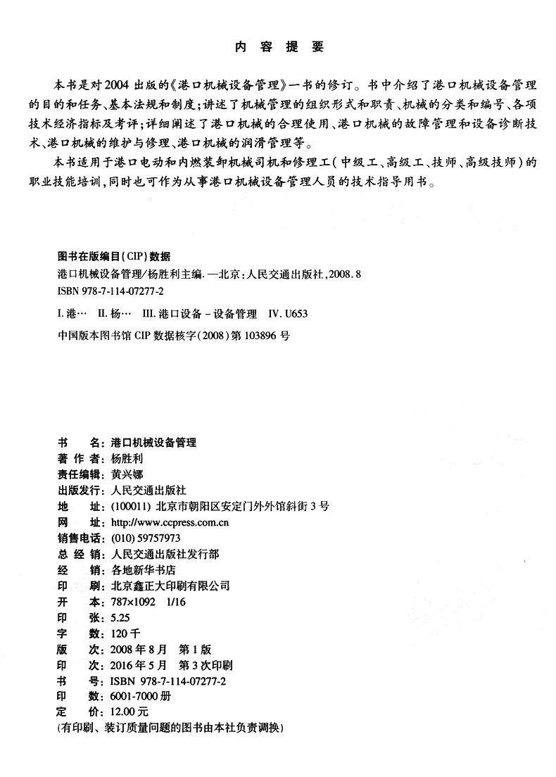 书名:港口机械设备管理
