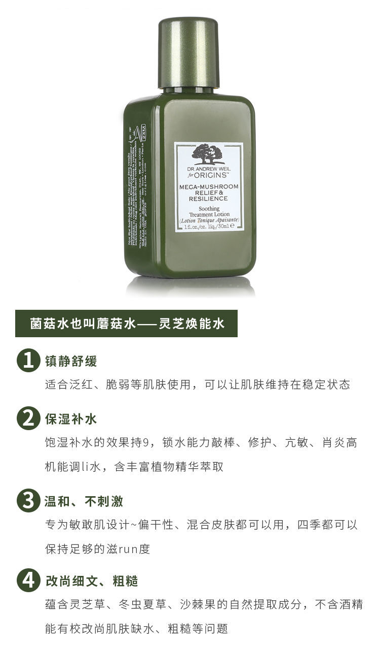 【爆款超低价预售 急单慎拍】ORIGINS悦木之源韦博士 菌菇水30ml灵芝水焕能爽肤水精华水