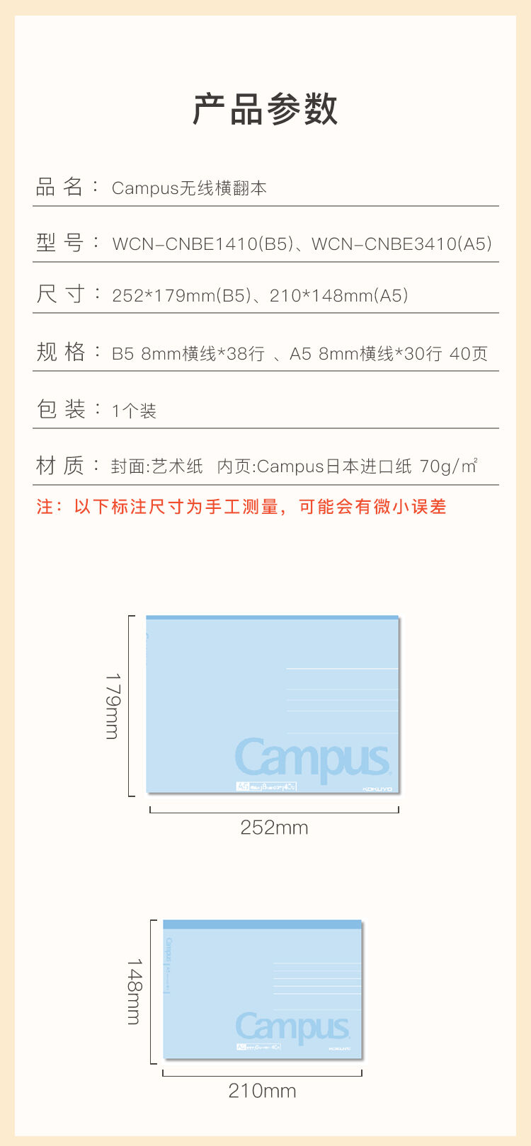 国誉(KOKUYO)Campus无线横翻本胶装本记事本笔记本子8mm横线B5/40