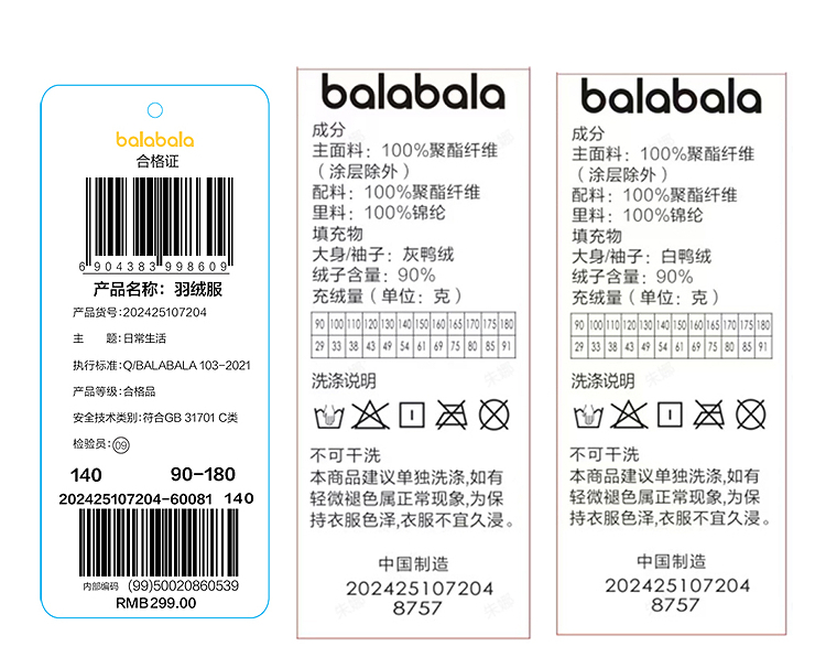 【商场同款】巴拉巴拉童装儿童轻薄羽绒服宝宝女童男童2025冬外套