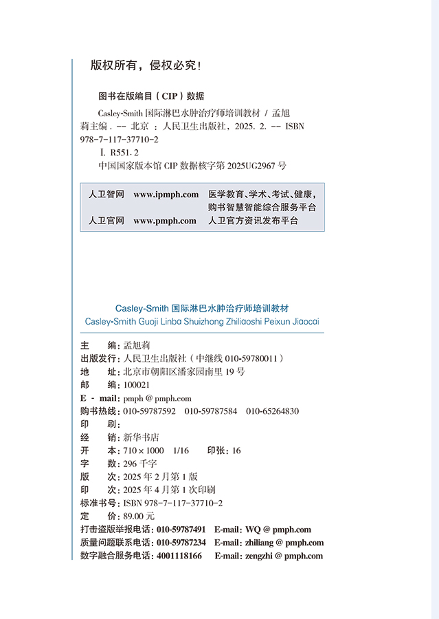 Casley-Smith国际淋巴水肿治疗师培训教材 孟旭莉 主编 主要内容主要包括基础理论 实操培训 病例实践三部分 人民卫生出版社