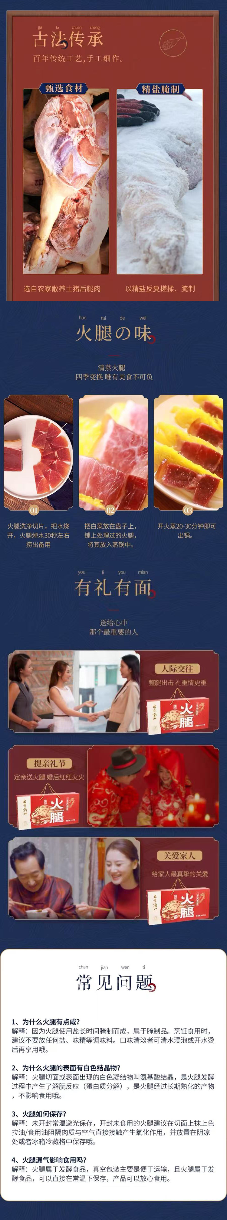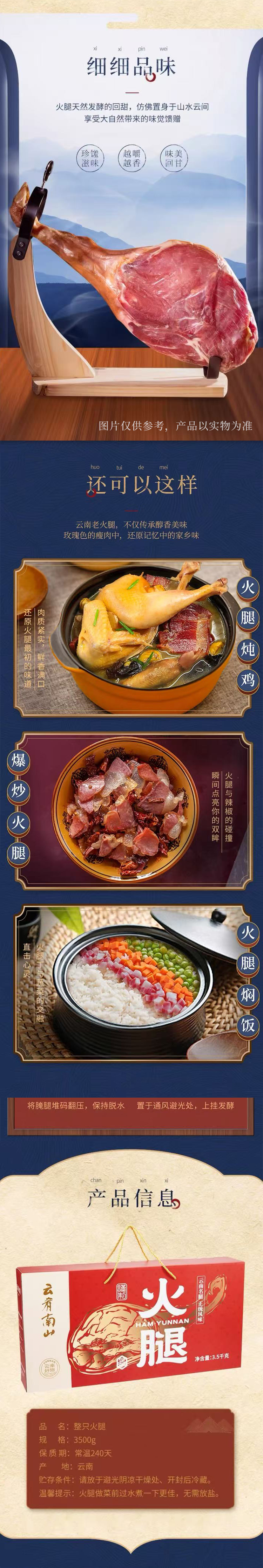云南整只火腿3.5kg/盒 云南特产礼赠首选 时间赠与的沉淀美味 肉质紧实 味道醇厚肉香馥郁 还原记忆中的家乡味