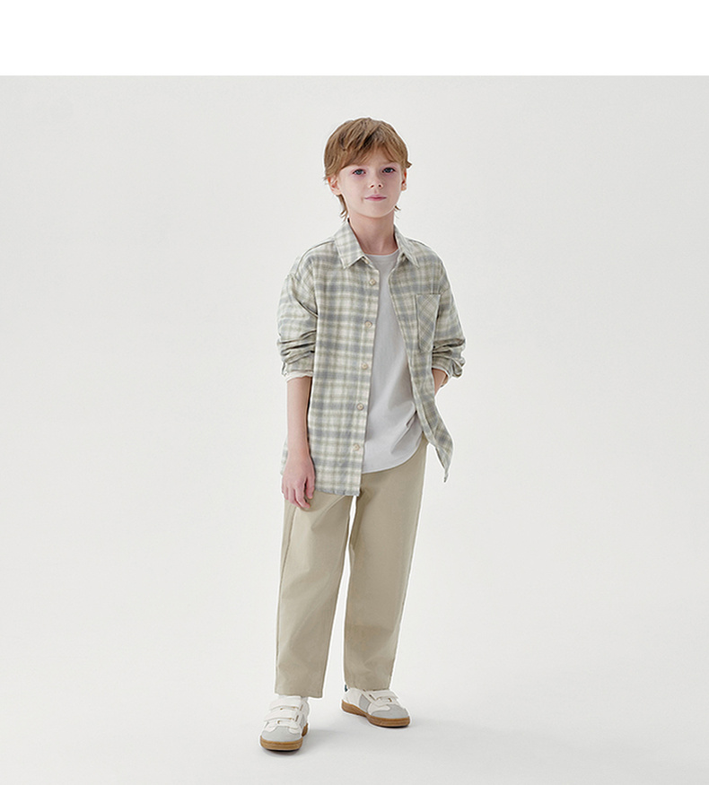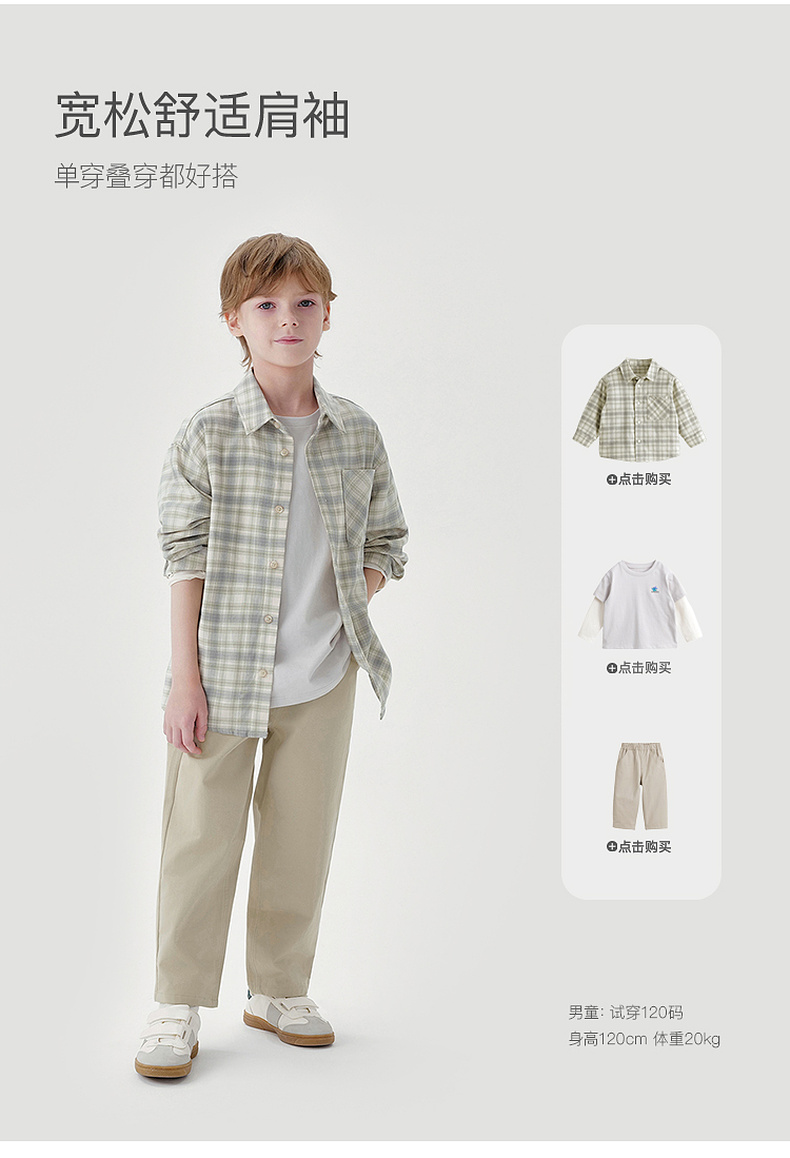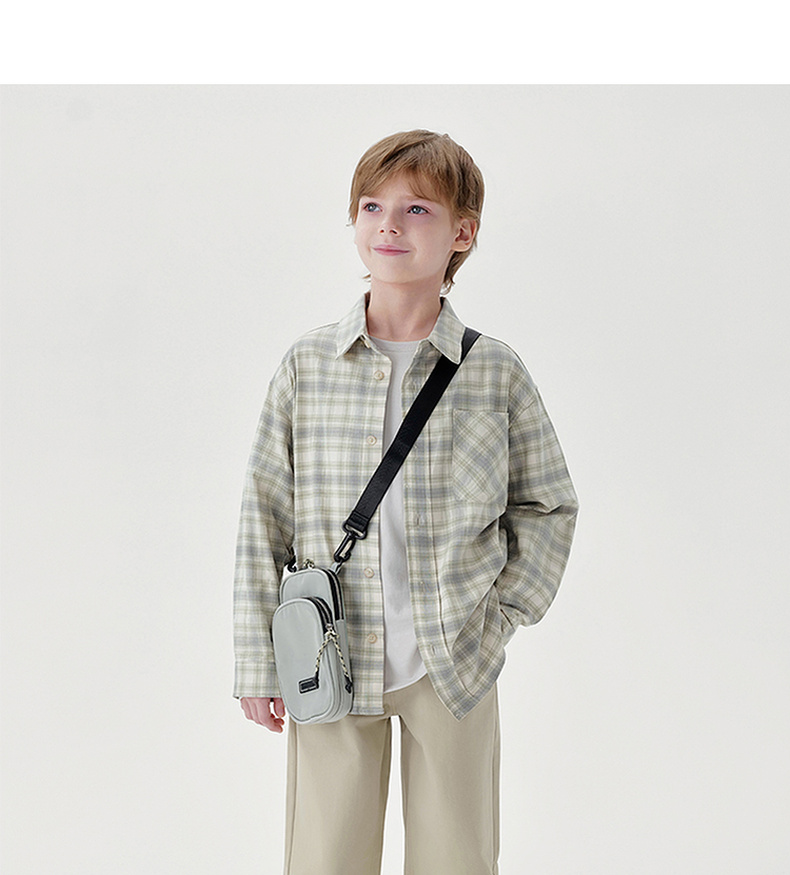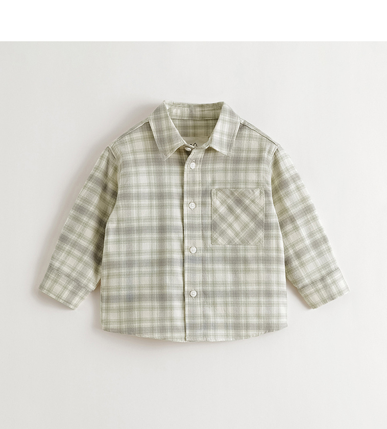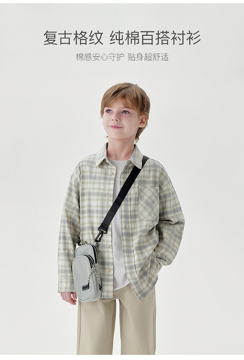 马克珍妮男童复古格纹百搭衬衫儿童格子衬衣2025年秋装新款551596