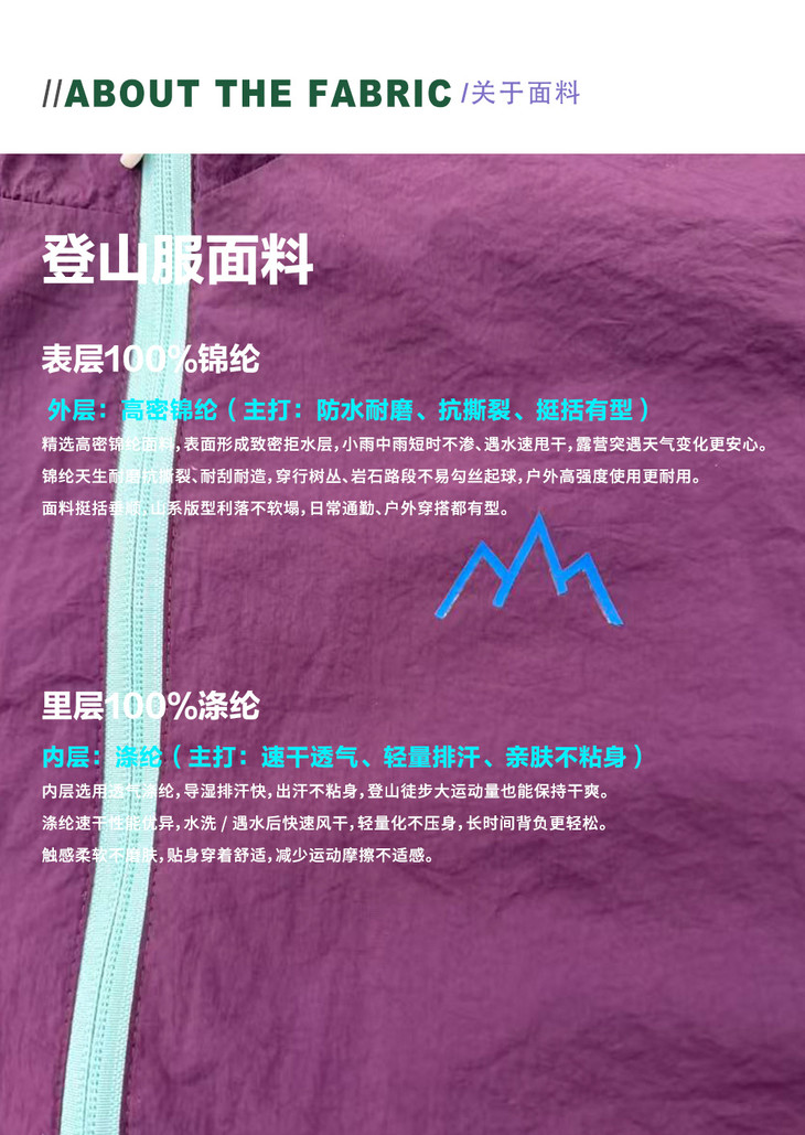 【成分】 表层:100锦纶 里层: 100%涤纶