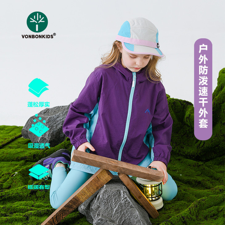 【vonbonkids 山系软壳登山服25118】 锦纶防水速干面料,轻量透气,干爽不粘身