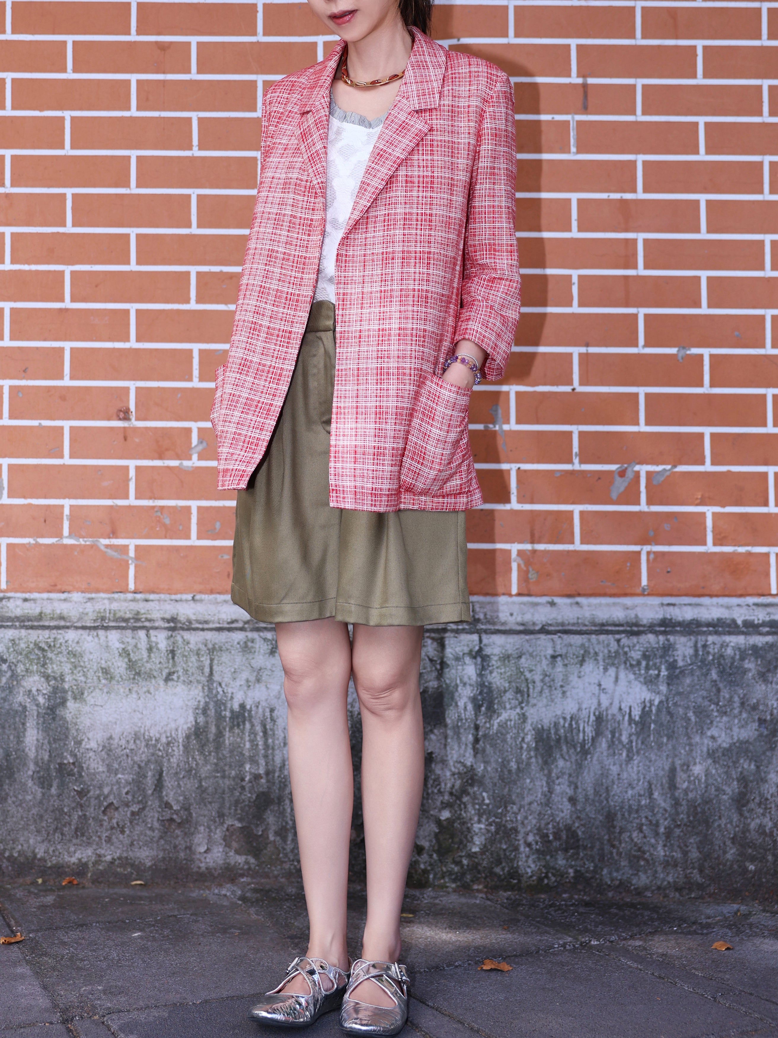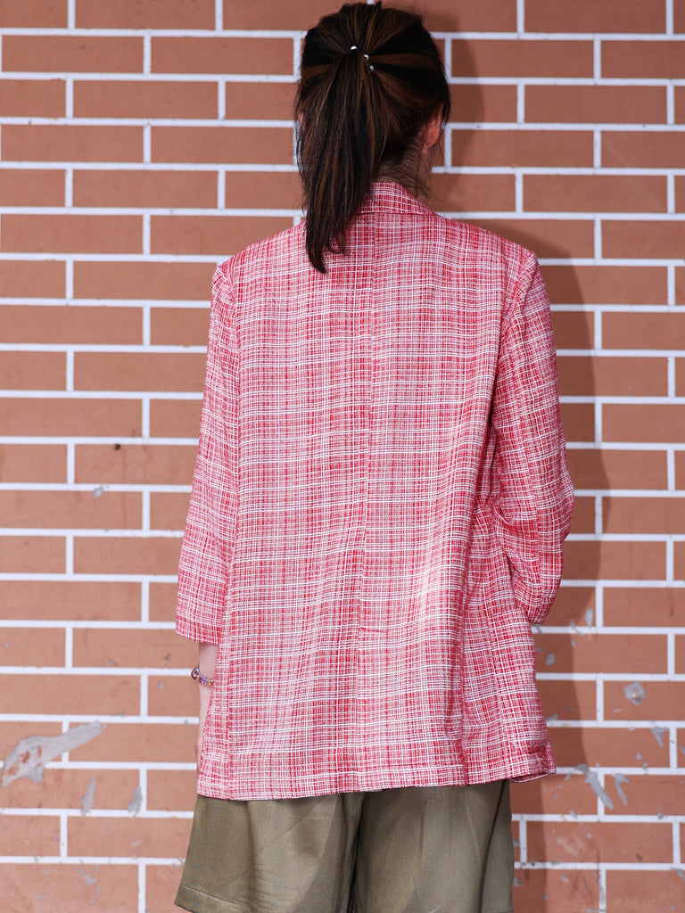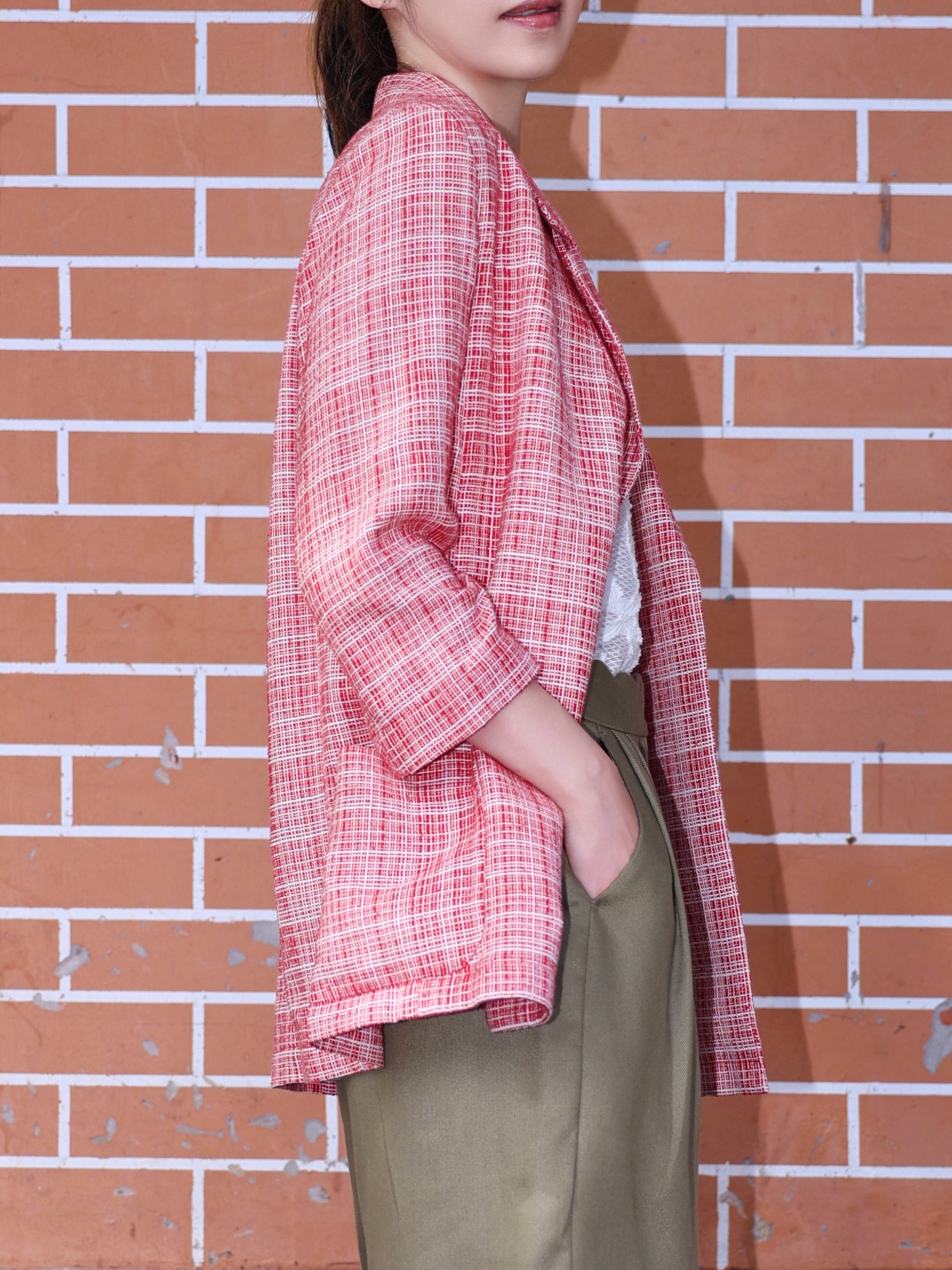 TYNVIE 七分袖前开式无里西装外套 - 红格