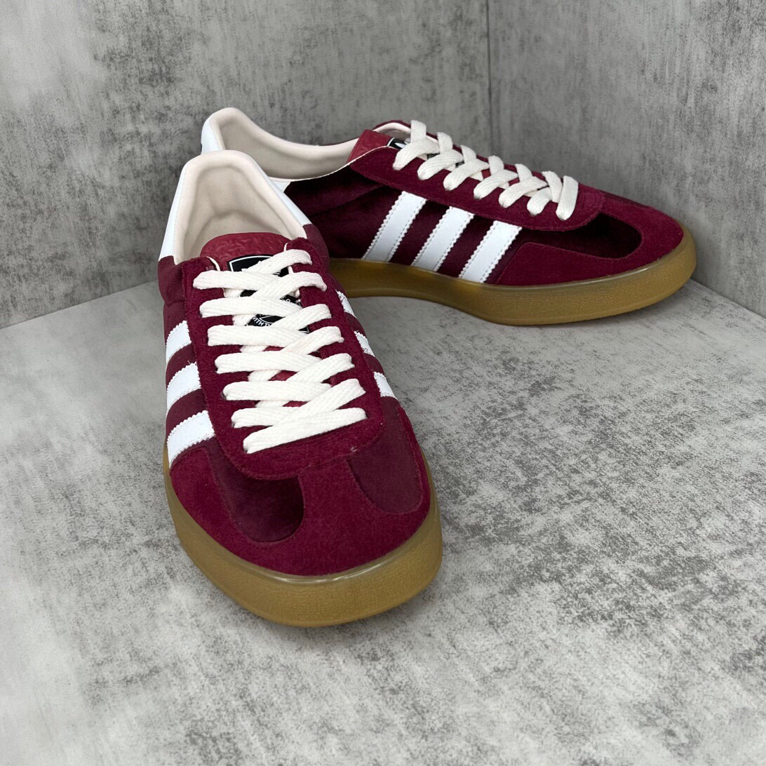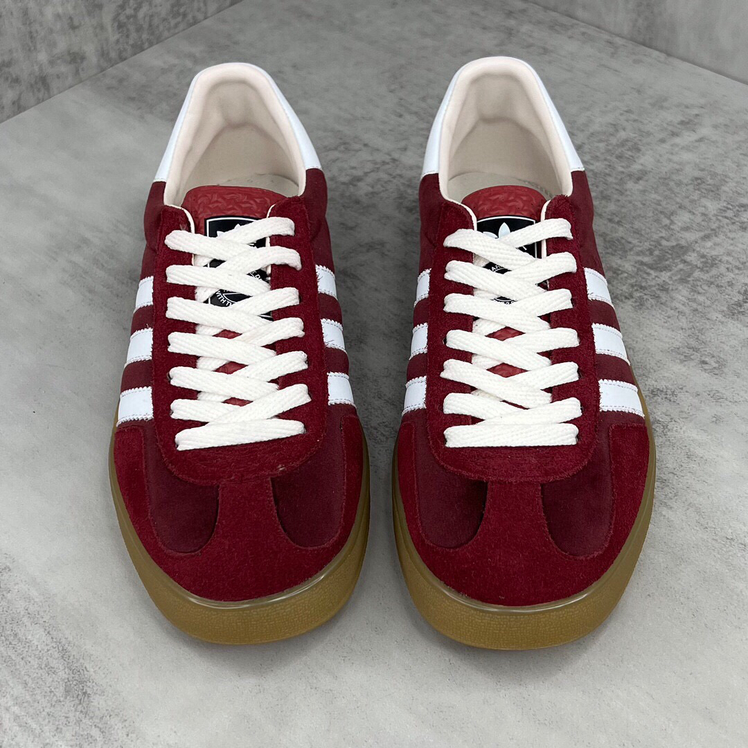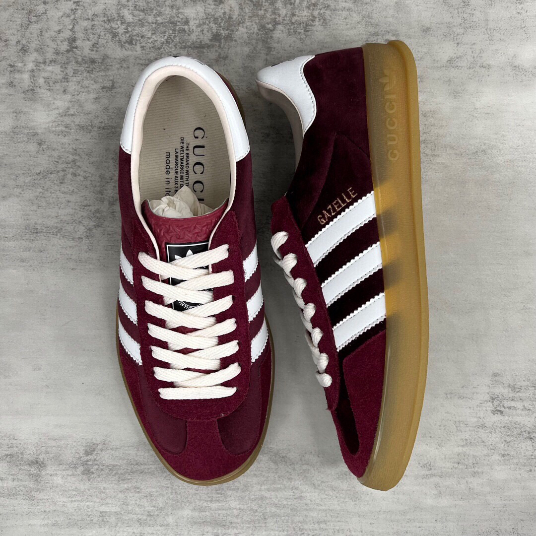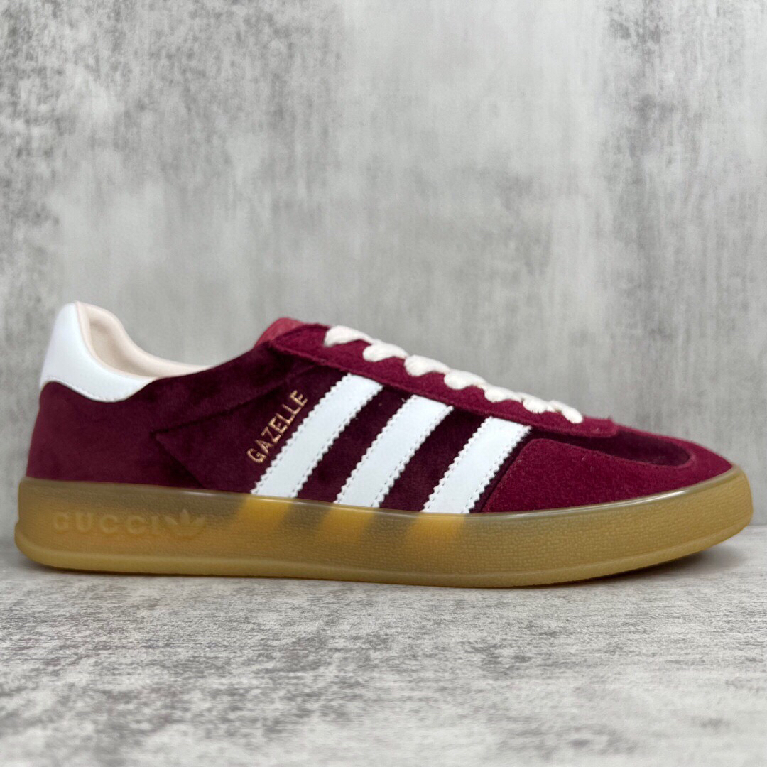 秋冬特惠💰480 重磅联名 Adidas x GUCCI 三叶草logo与标志性三条杆为设计元素 将其与属于的GUCCI 双方选择adidas originals经典鞋型 Gazalle为蓝本,生胶鞋底搭载三叶草和GUCCI logo,蛇纹、绒面、麂皮等材质纹理覆盖在鞋面上,将奢华复古与运动风相结合却不显违和感。三条杆的德训鞋今年也是要继续走俏!