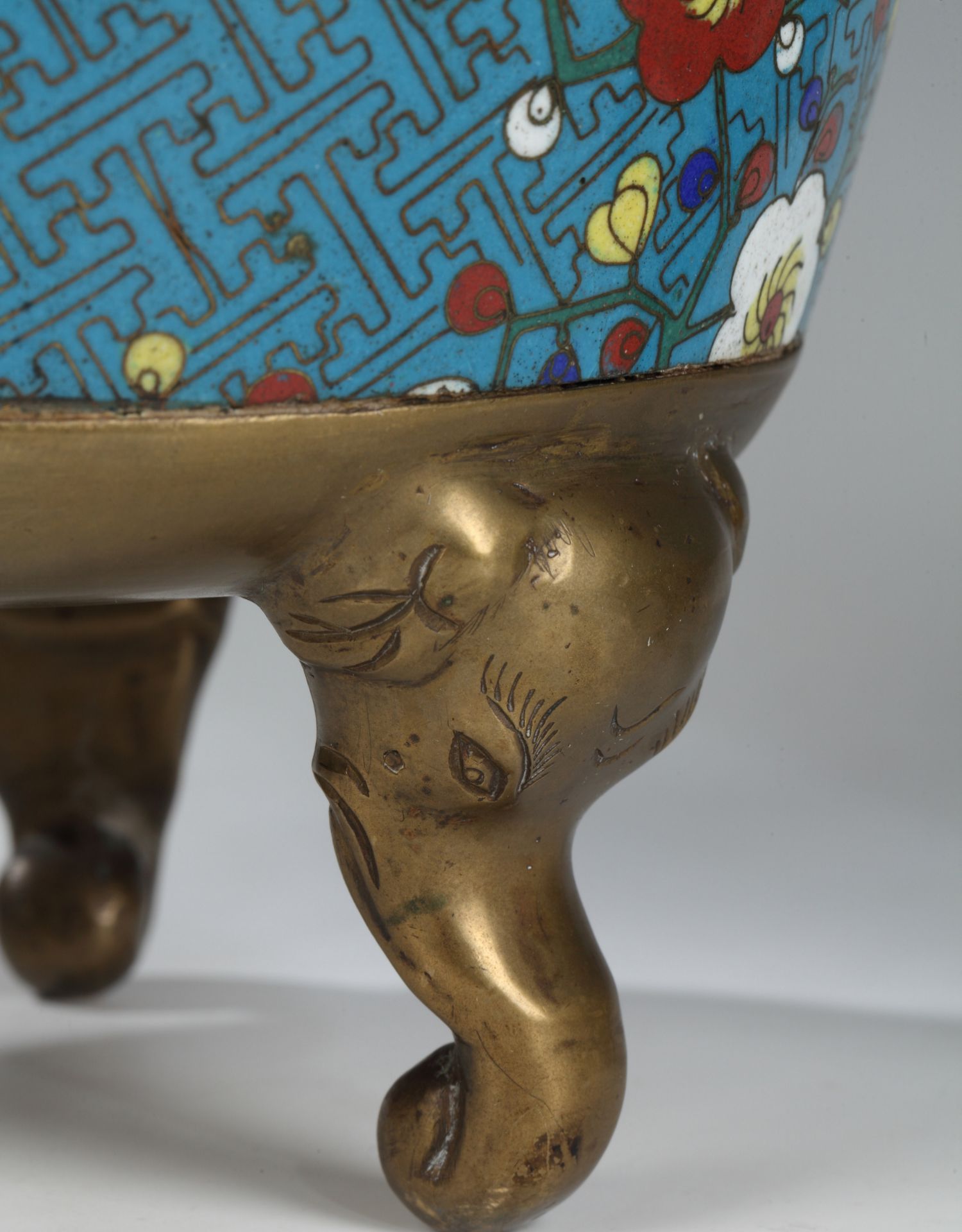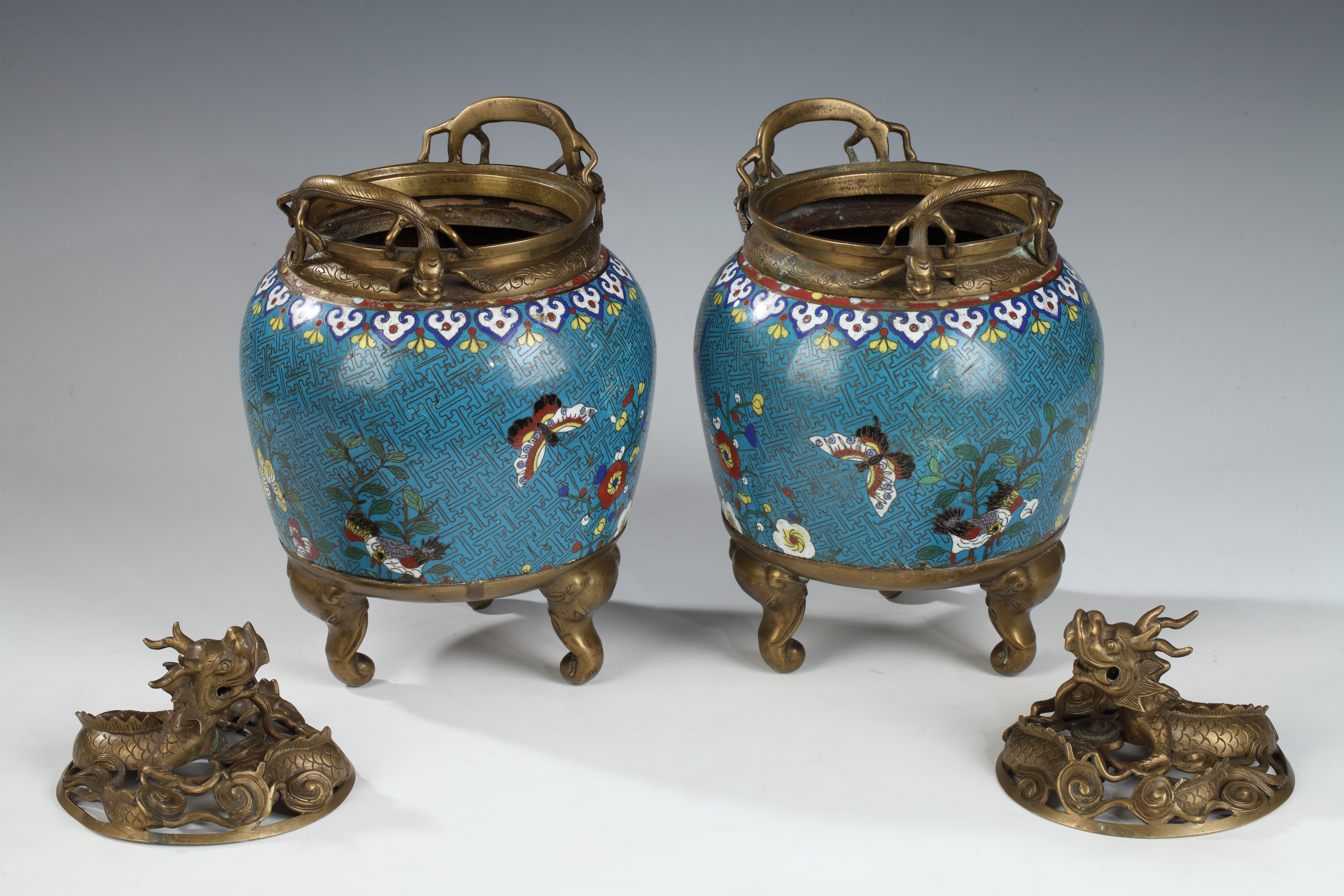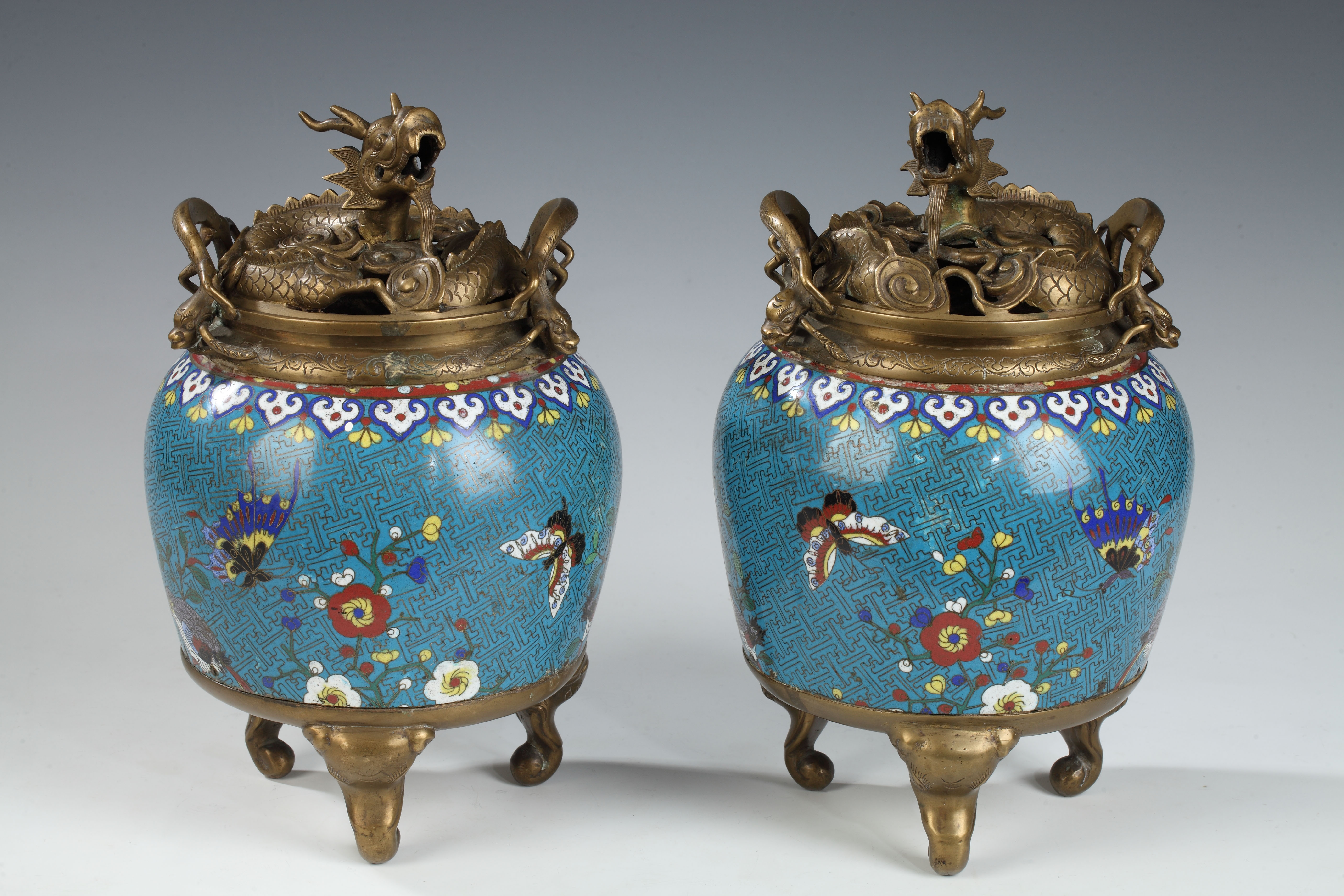 独角鹿西洋古董摆件中国铜鎏金底座镶嵌多彩掐丝珐琅香薰炉一对