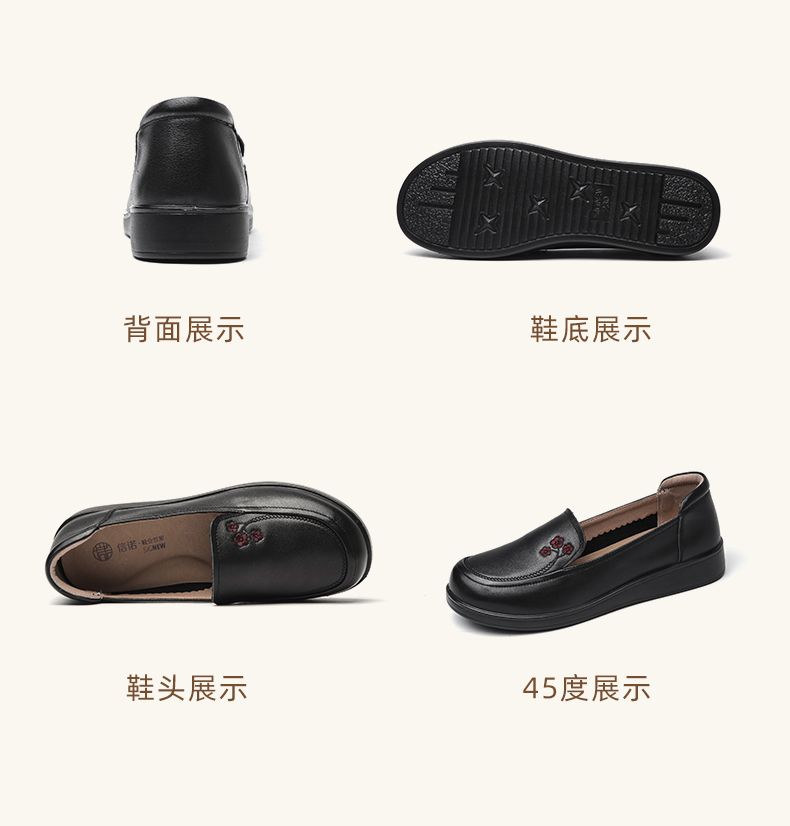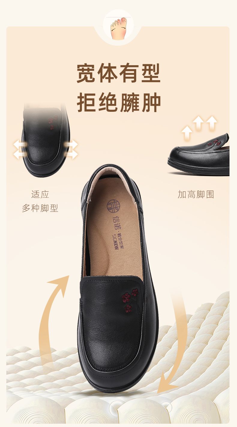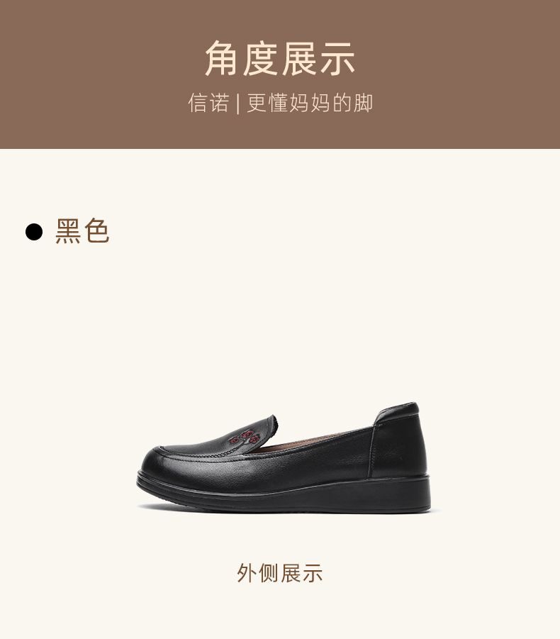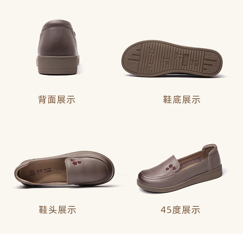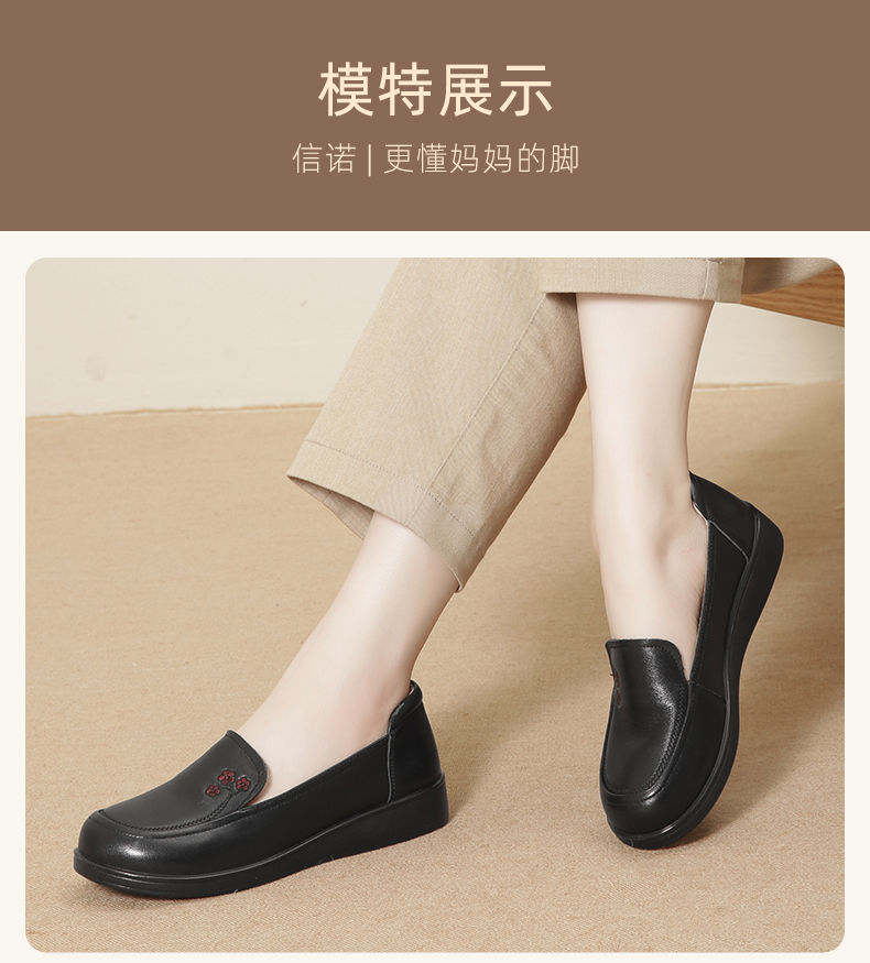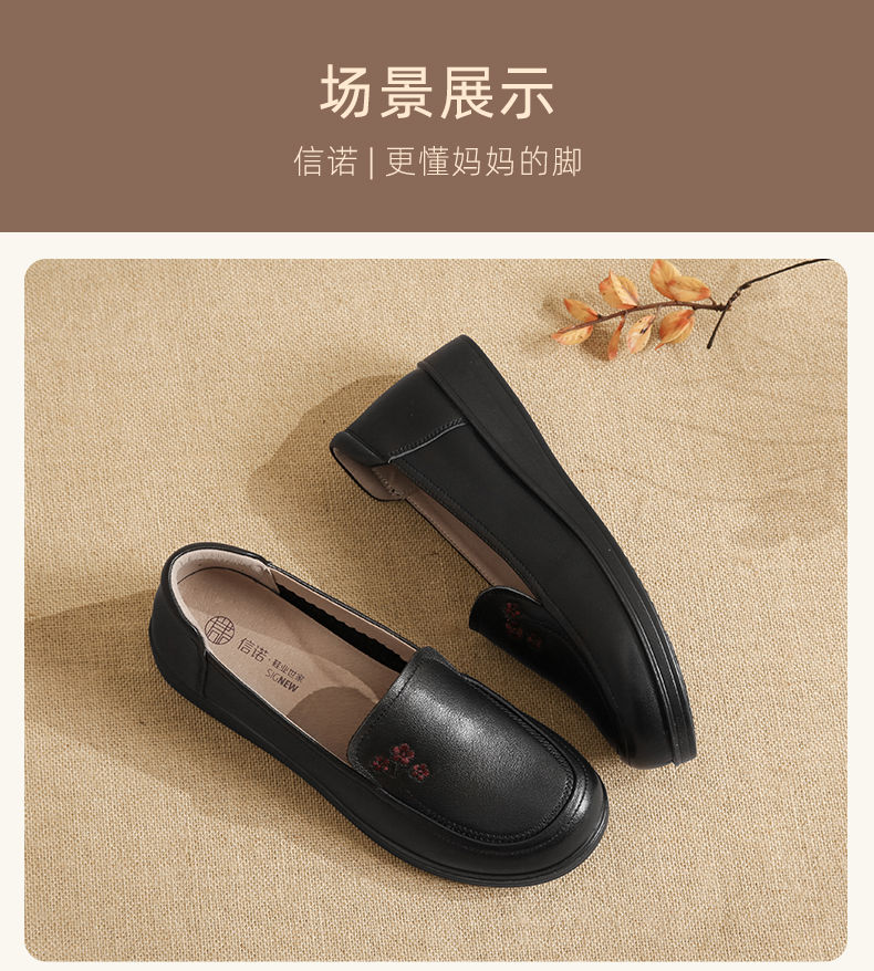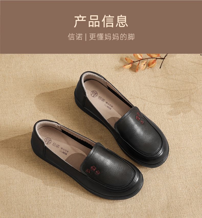 信诺真皮舒适女鞋2024新款春季中老年软底妈妈鞋春秋款轻便单皮鞋24C6801-12