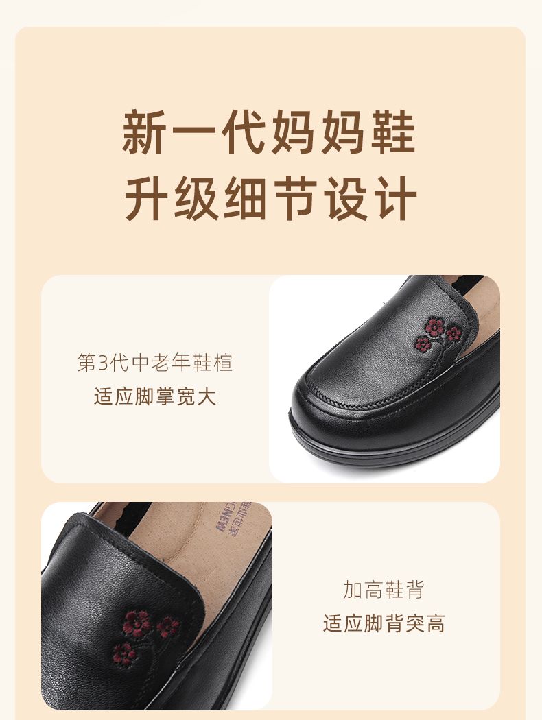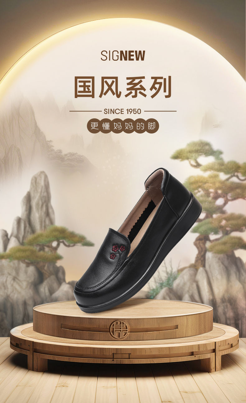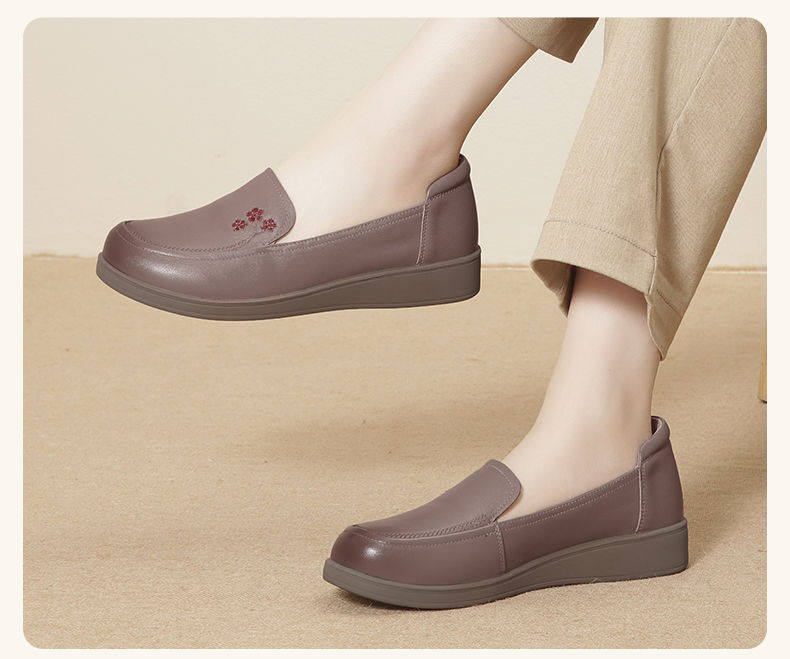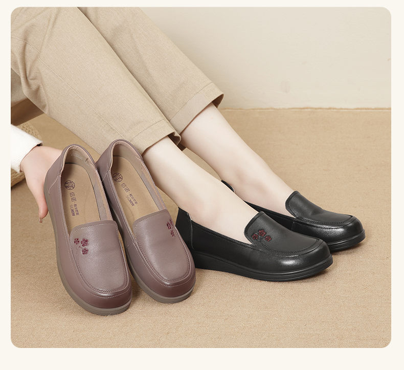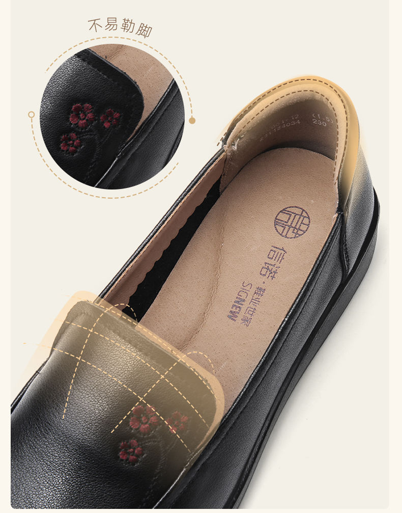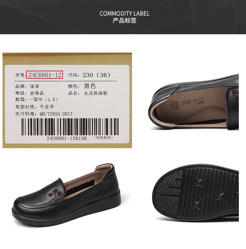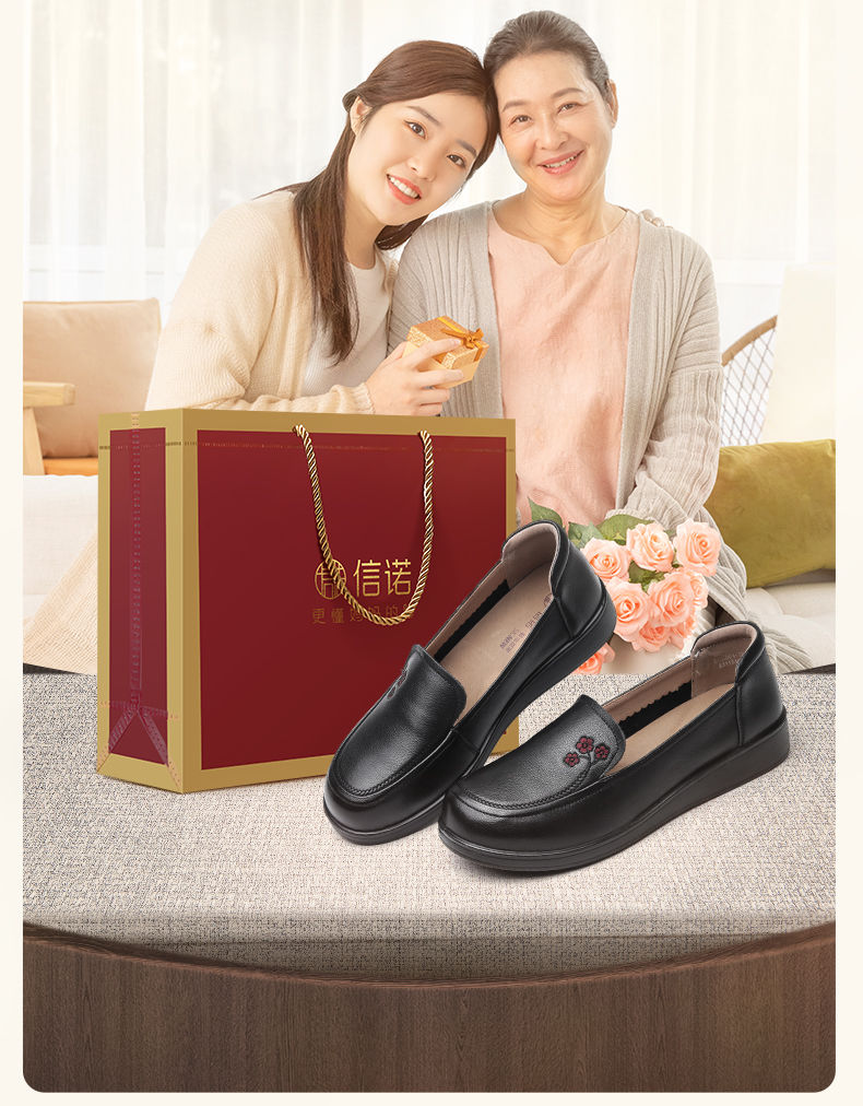 信诺真皮舒适女鞋2024新款春季中老年软底妈妈鞋春秋款轻便单皮鞋24C6801-12