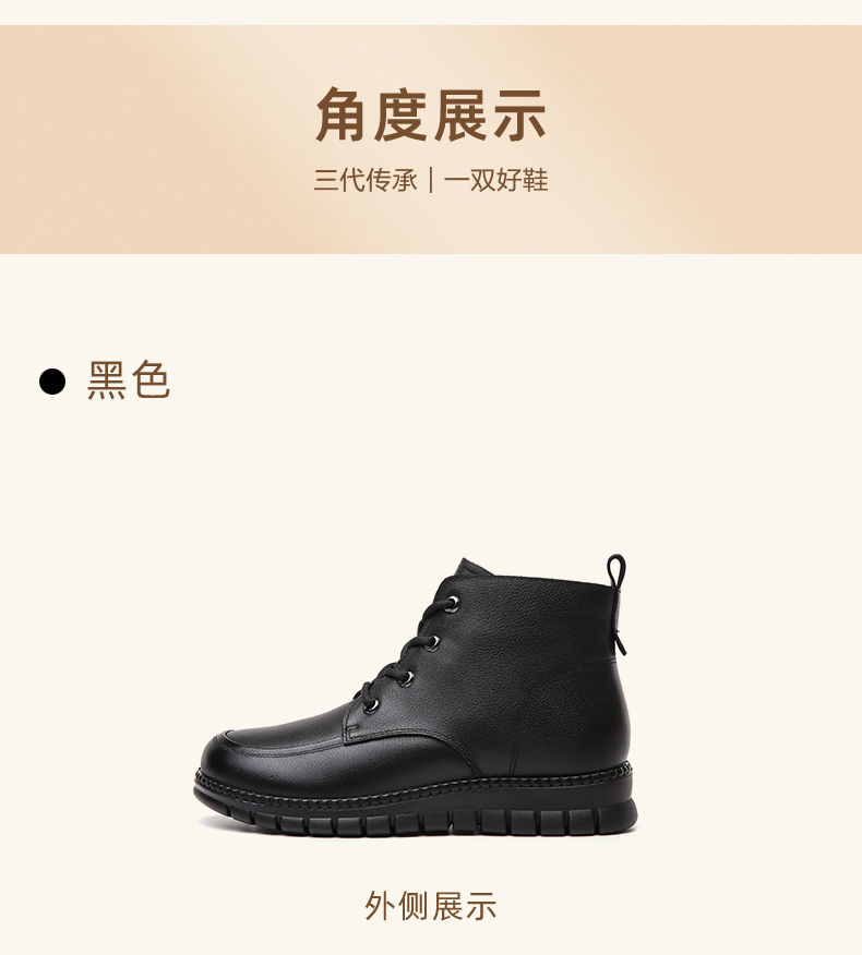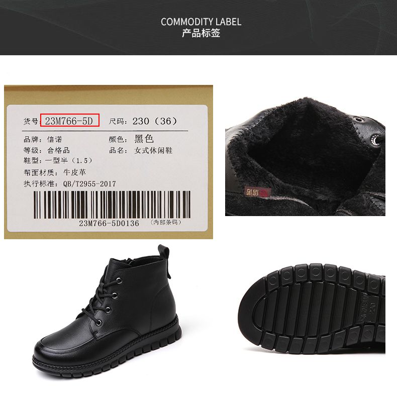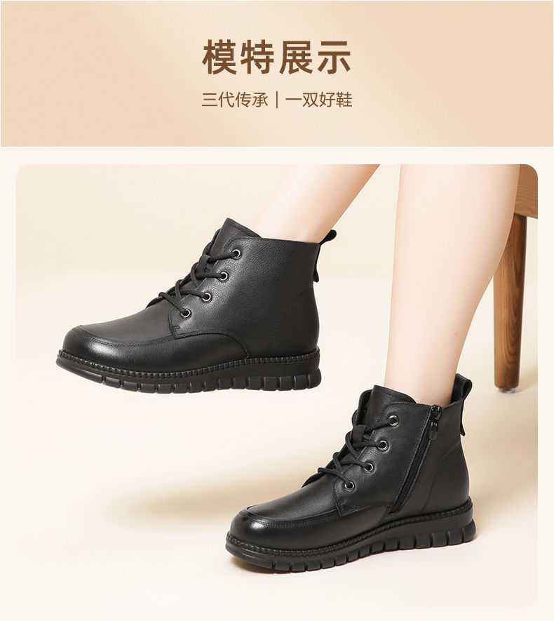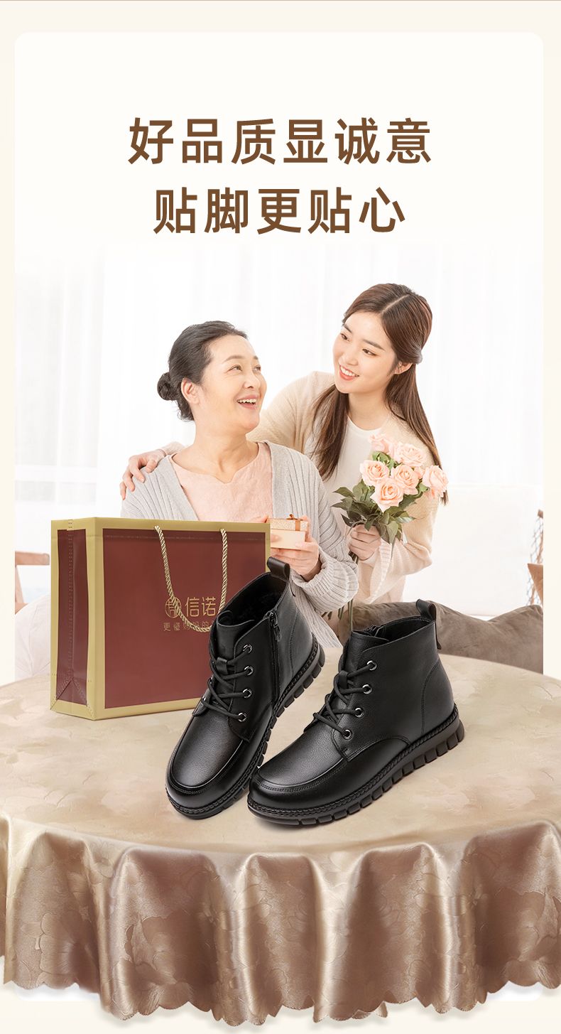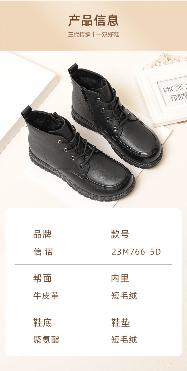 信诺真皮软底妈妈棉鞋加绒保暖中老年短靴防滑秋冬季二棉女士皮鞋23M766-5D