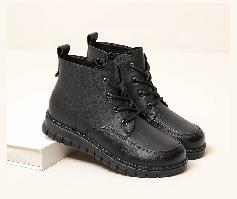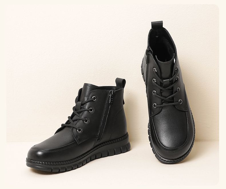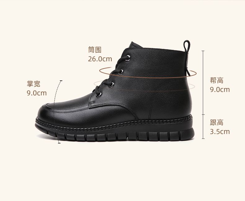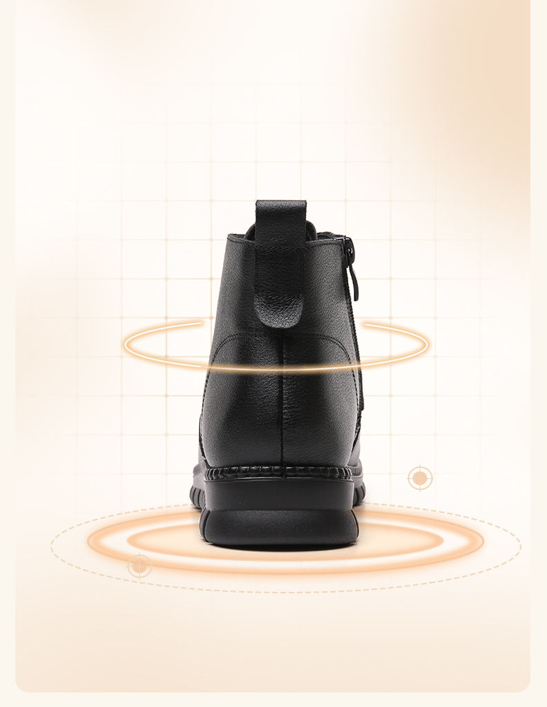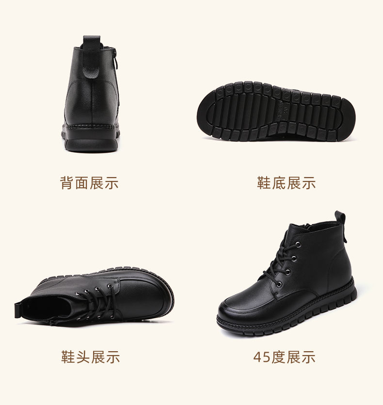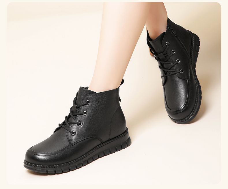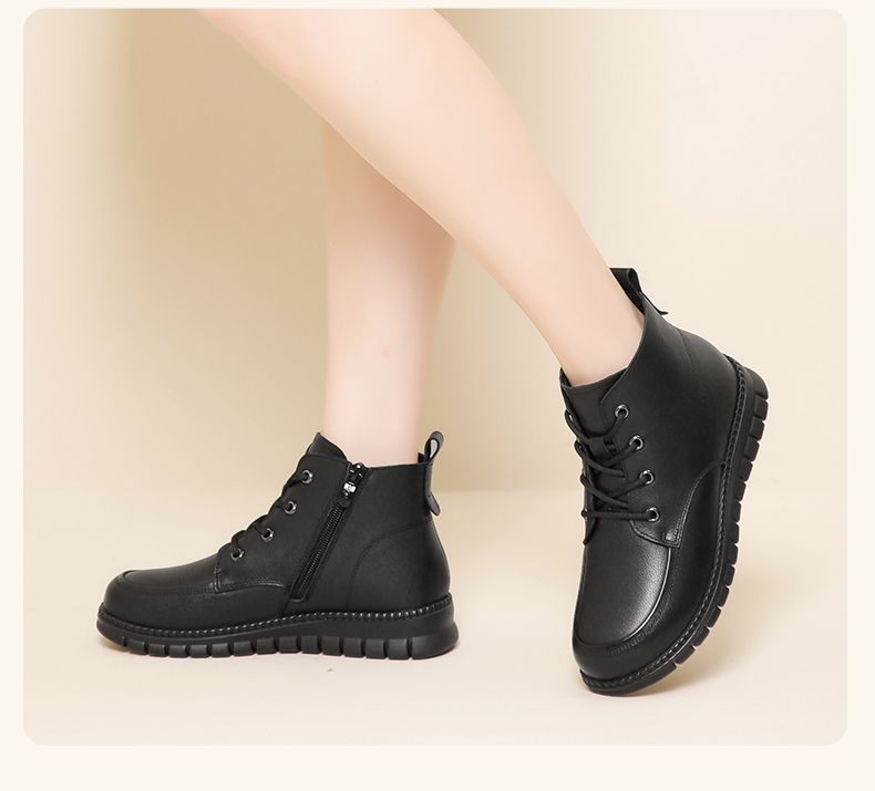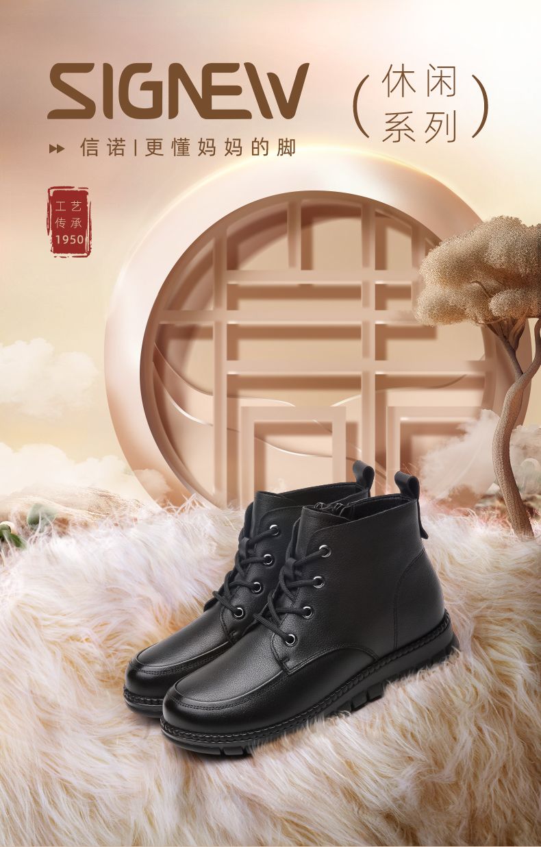 信诺真皮软底妈妈棉鞋加绒保暖中老年短靴防滑秋冬季二棉女士皮鞋23M766-5D