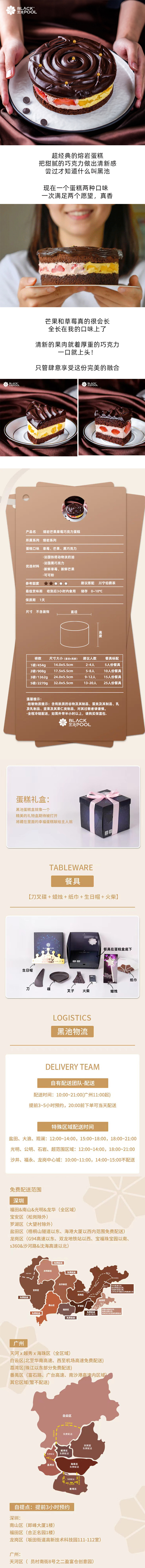 黑巧克力(法国)、可可粉(法国)、淡奶油(法国)、幼砂糖(韩国)、全球时令鲜草莓、全球时令鲜芒果、食用金箔
