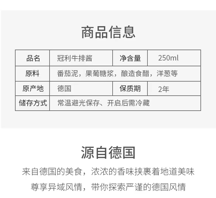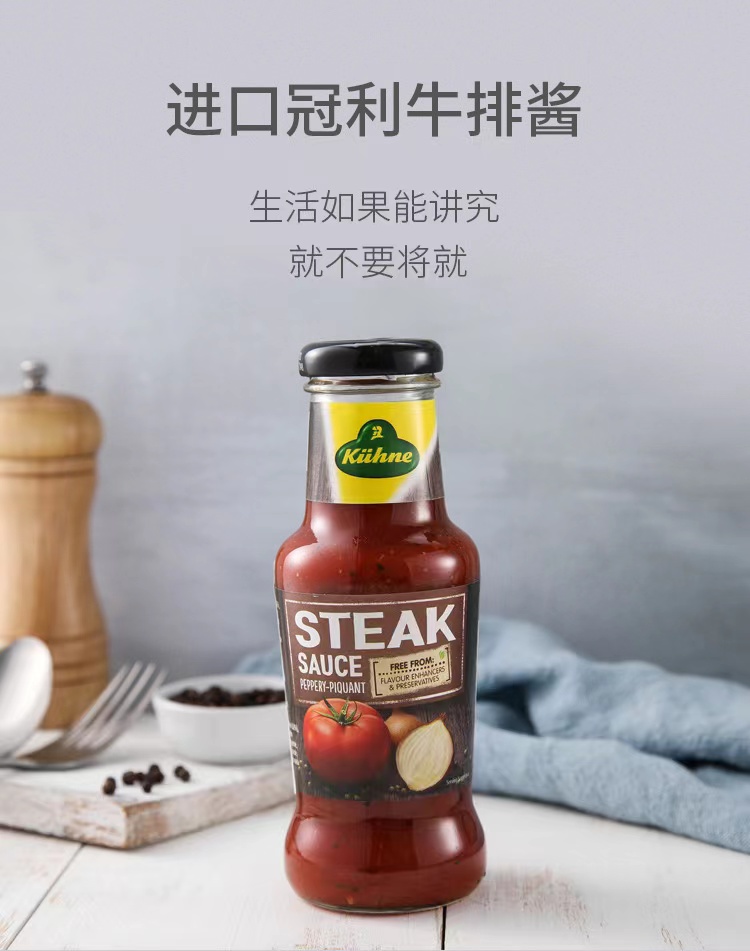 【中欧班列精选2瓶】德国冠利牛排调味酱 原装进口排骨羊肉串烤猪肉串炸肉饼烤肉饼蘸酱 250ml/瓶