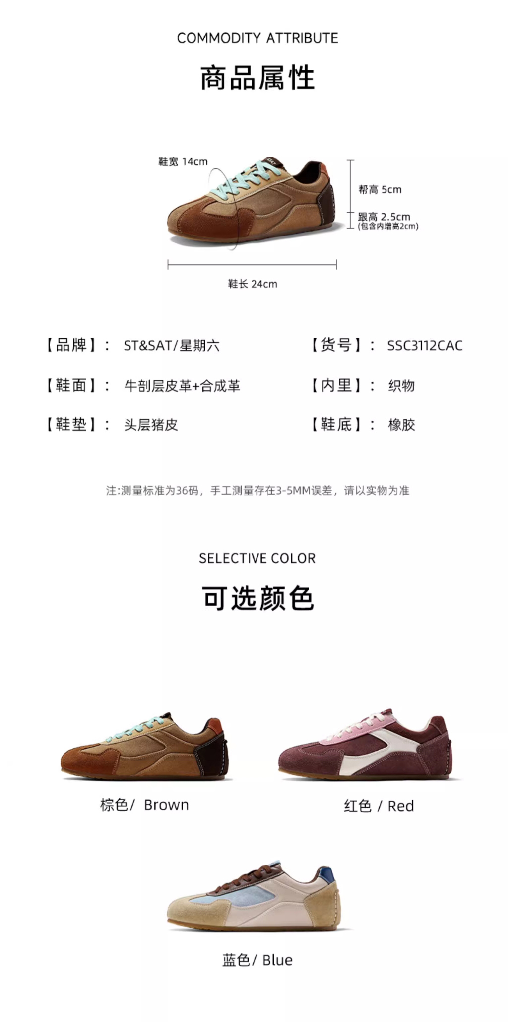星期六复古撞色百搭平底德训鞋SSC3112CAC