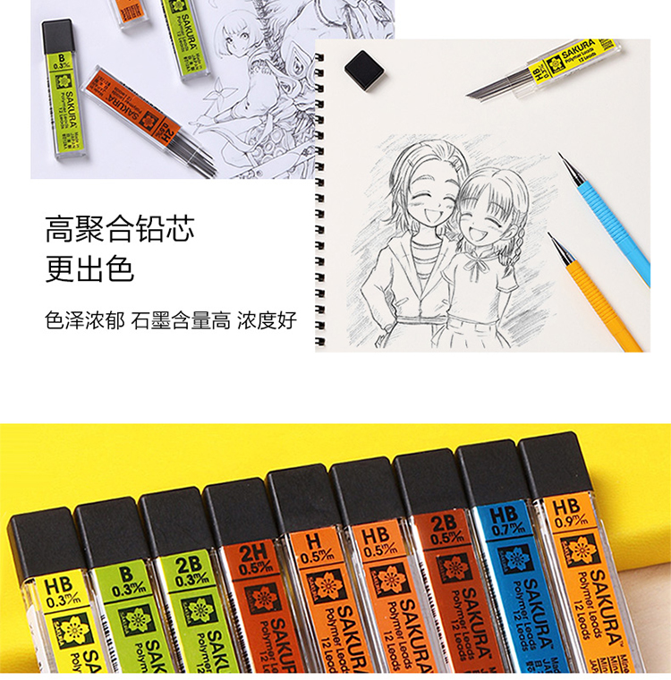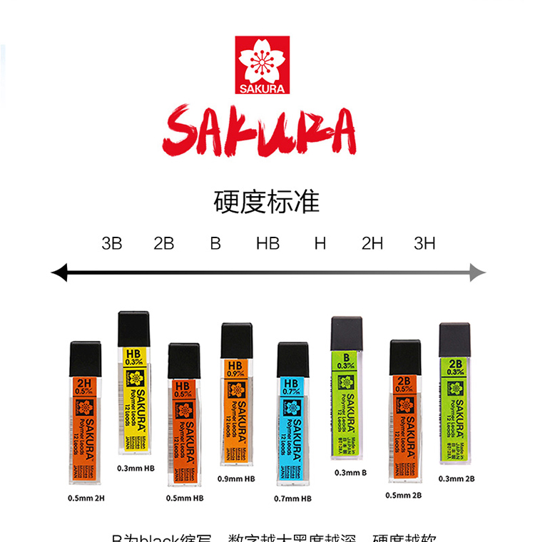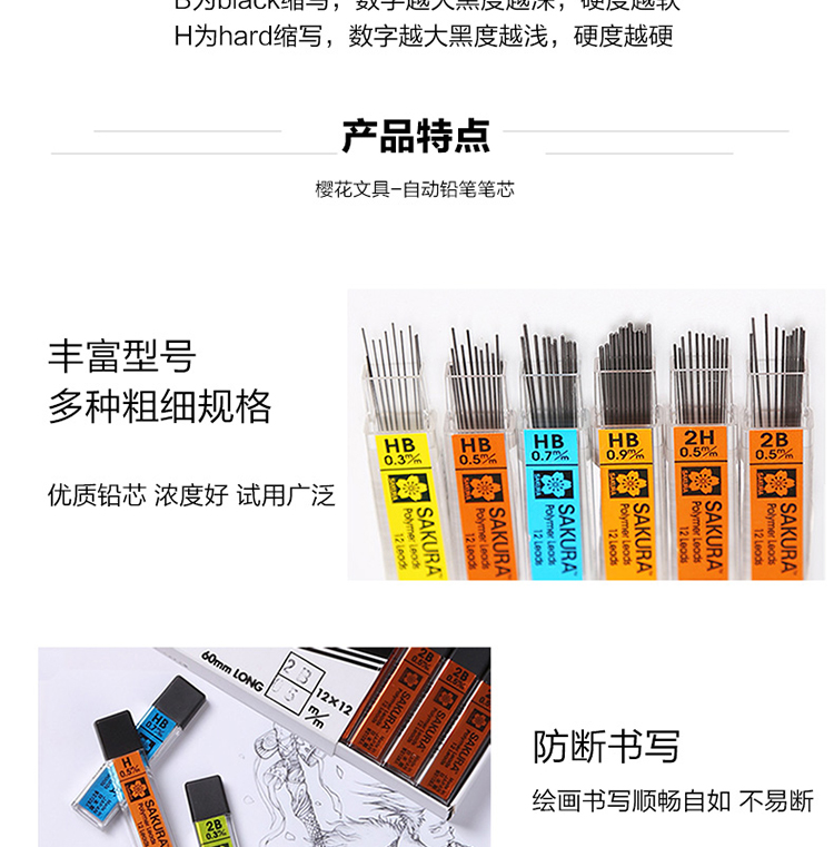 日本樱花(SAKURA)防断自动铅笔芯活动铅芯替芯 不易折断 0.5mmHB