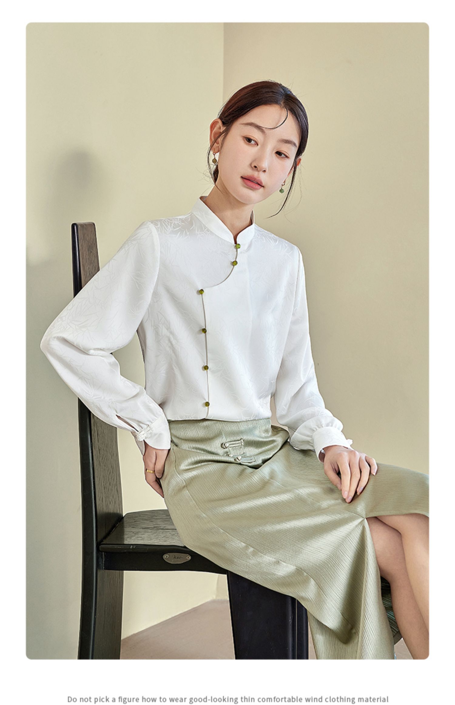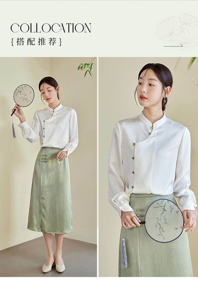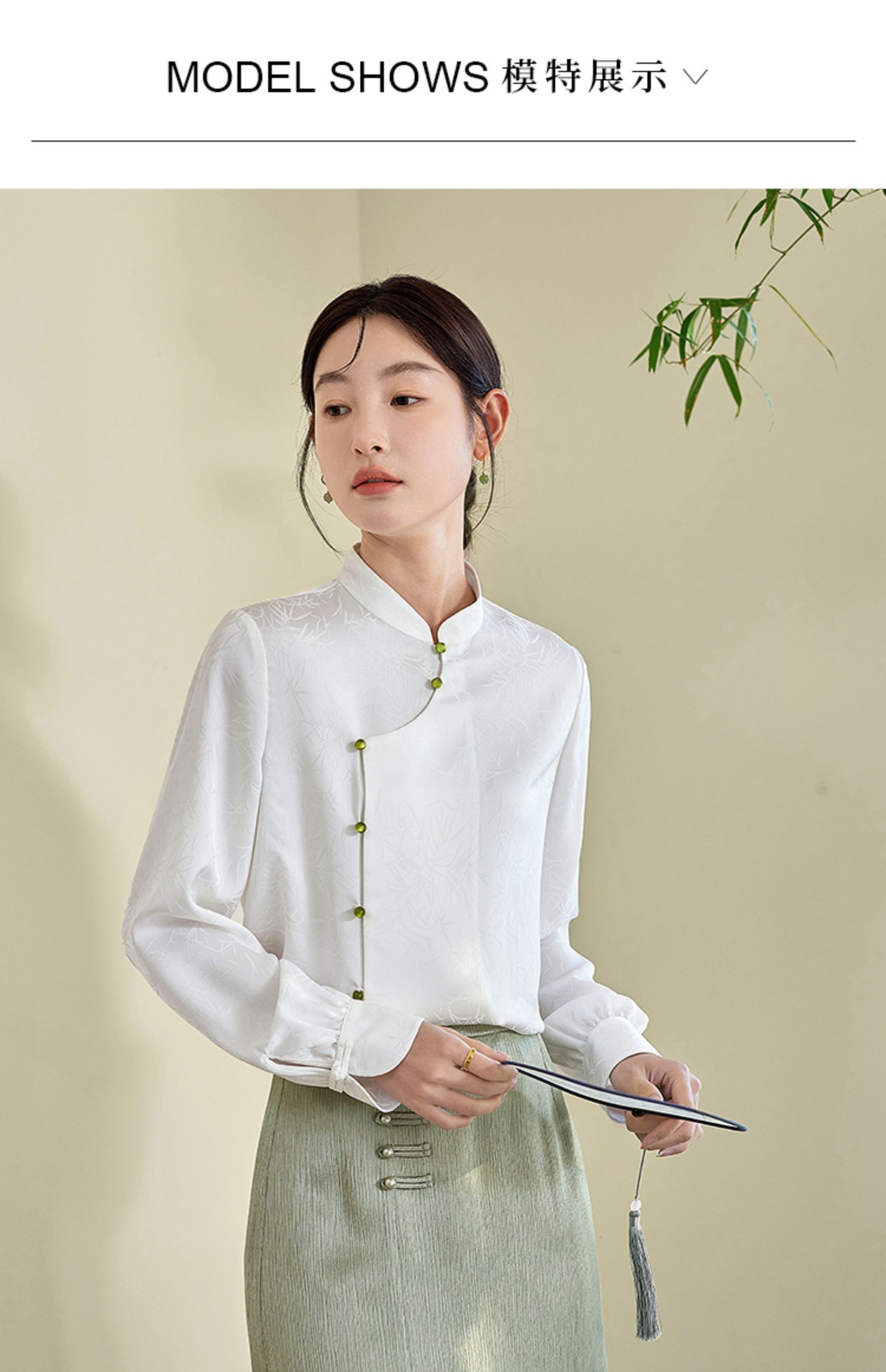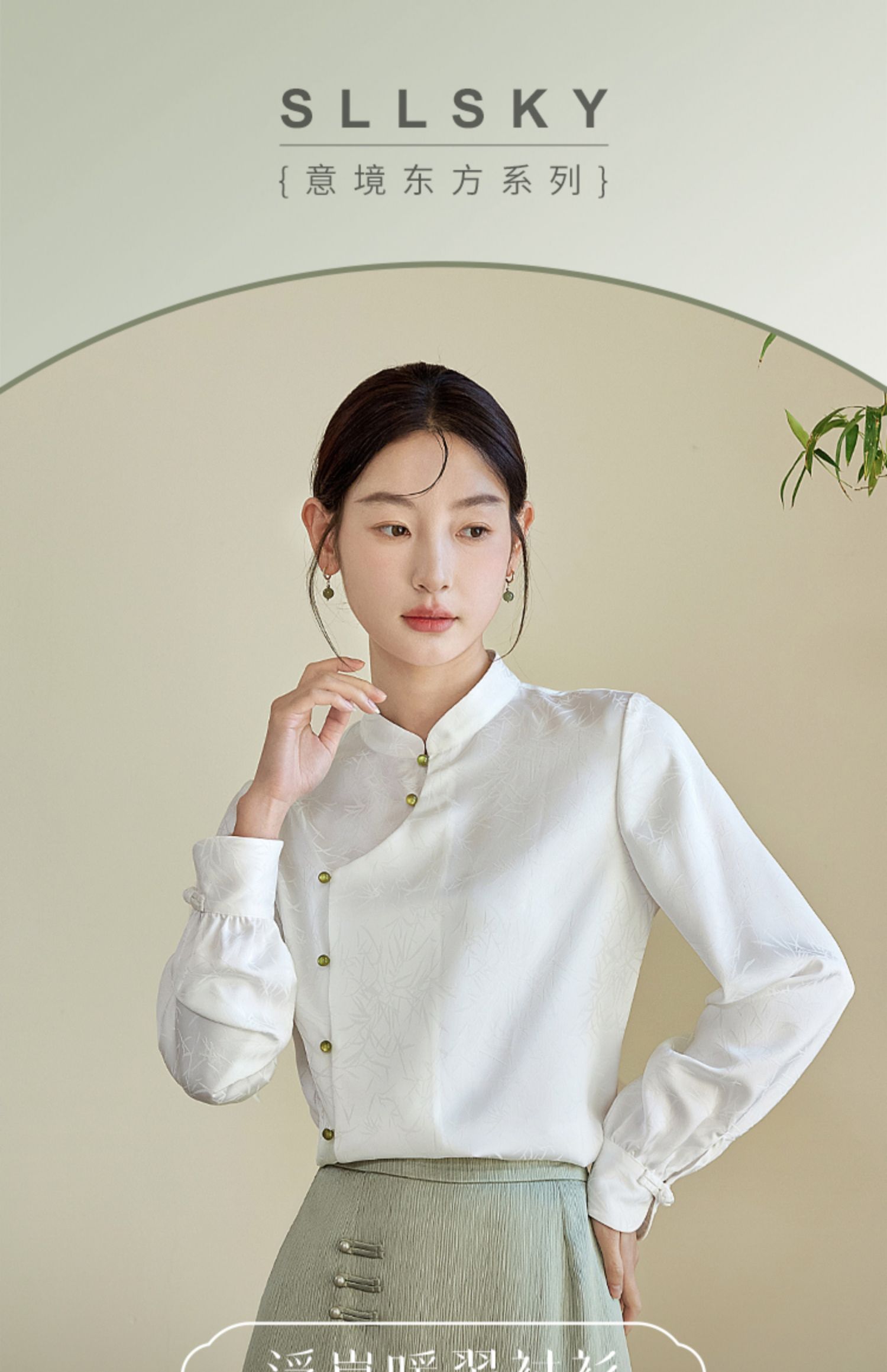 【年终特卖】熙世界国风复古暗纹新中式衬衫女长袖2025秋季新款别致立领上衣