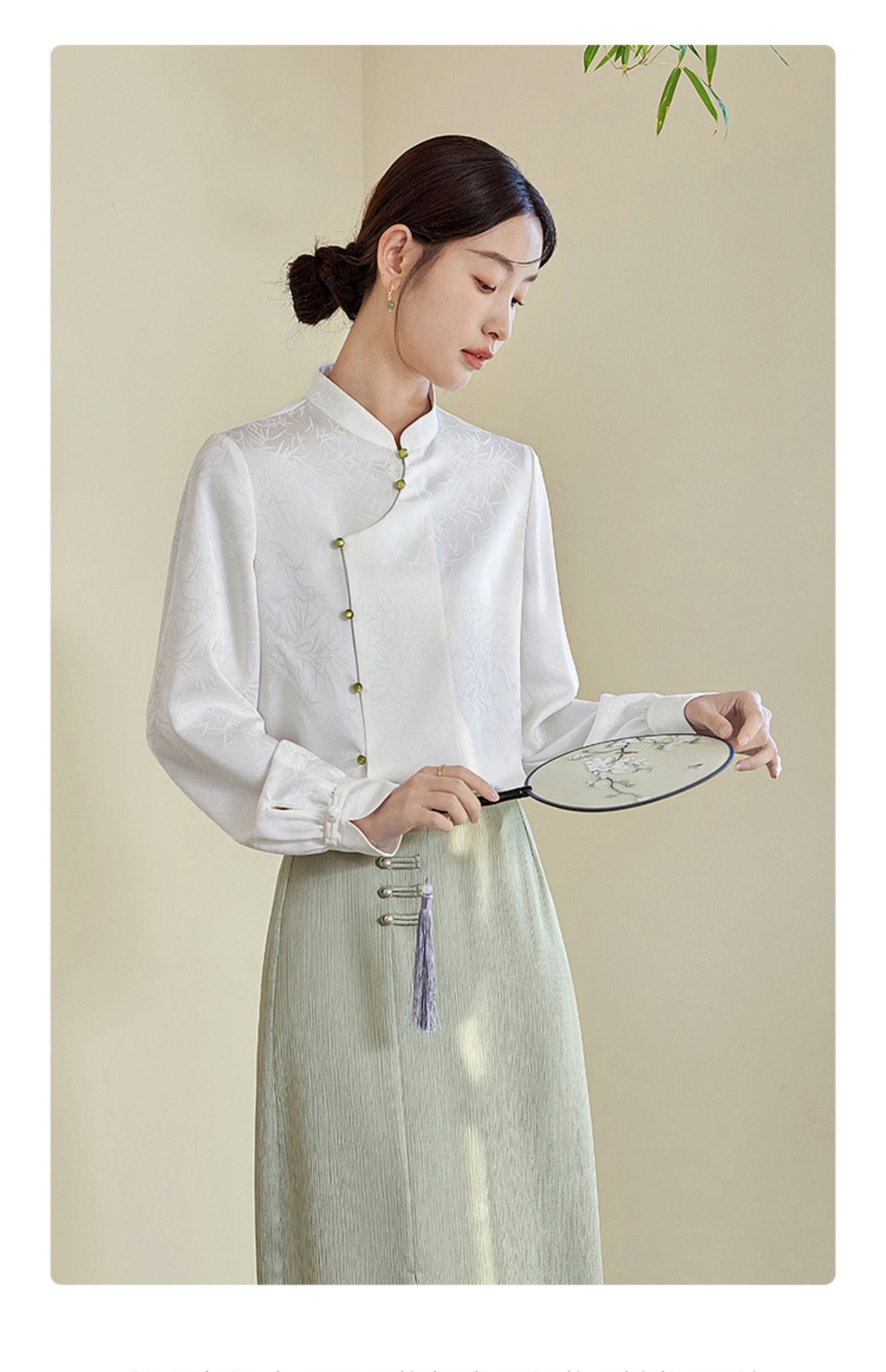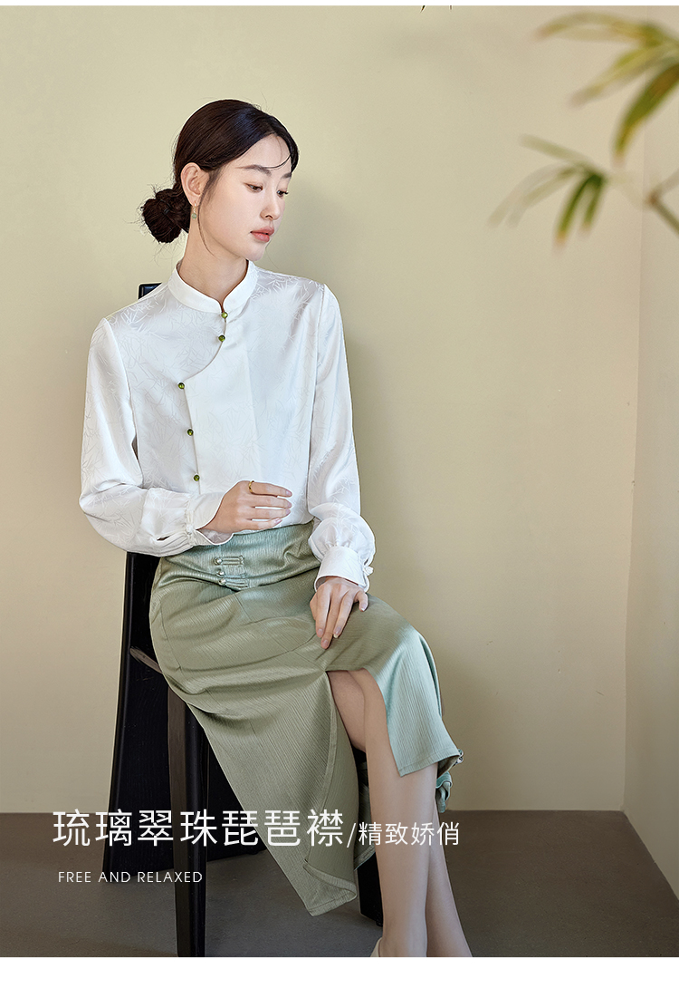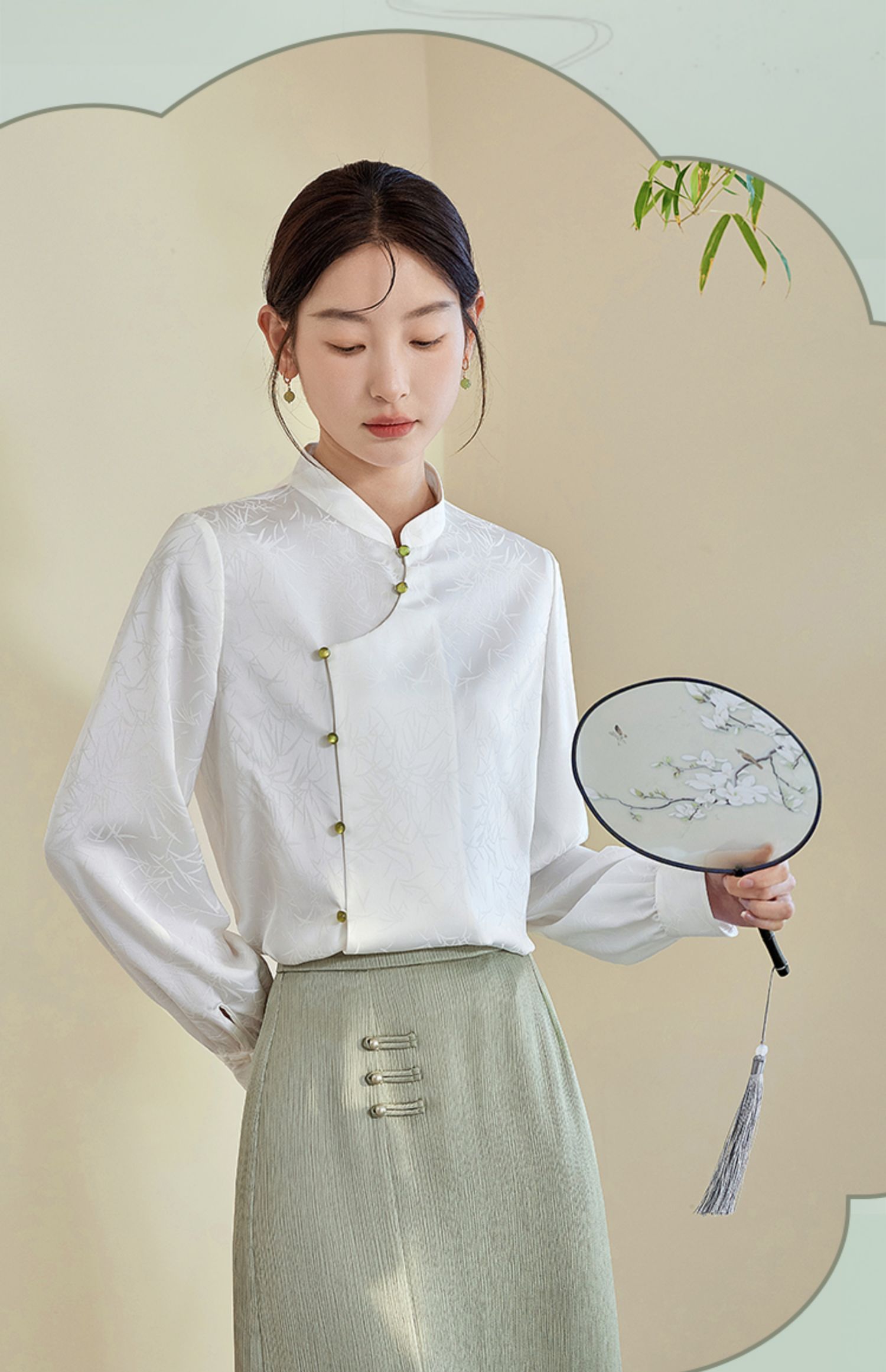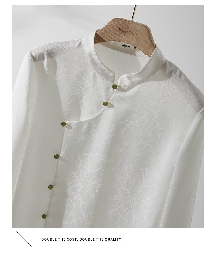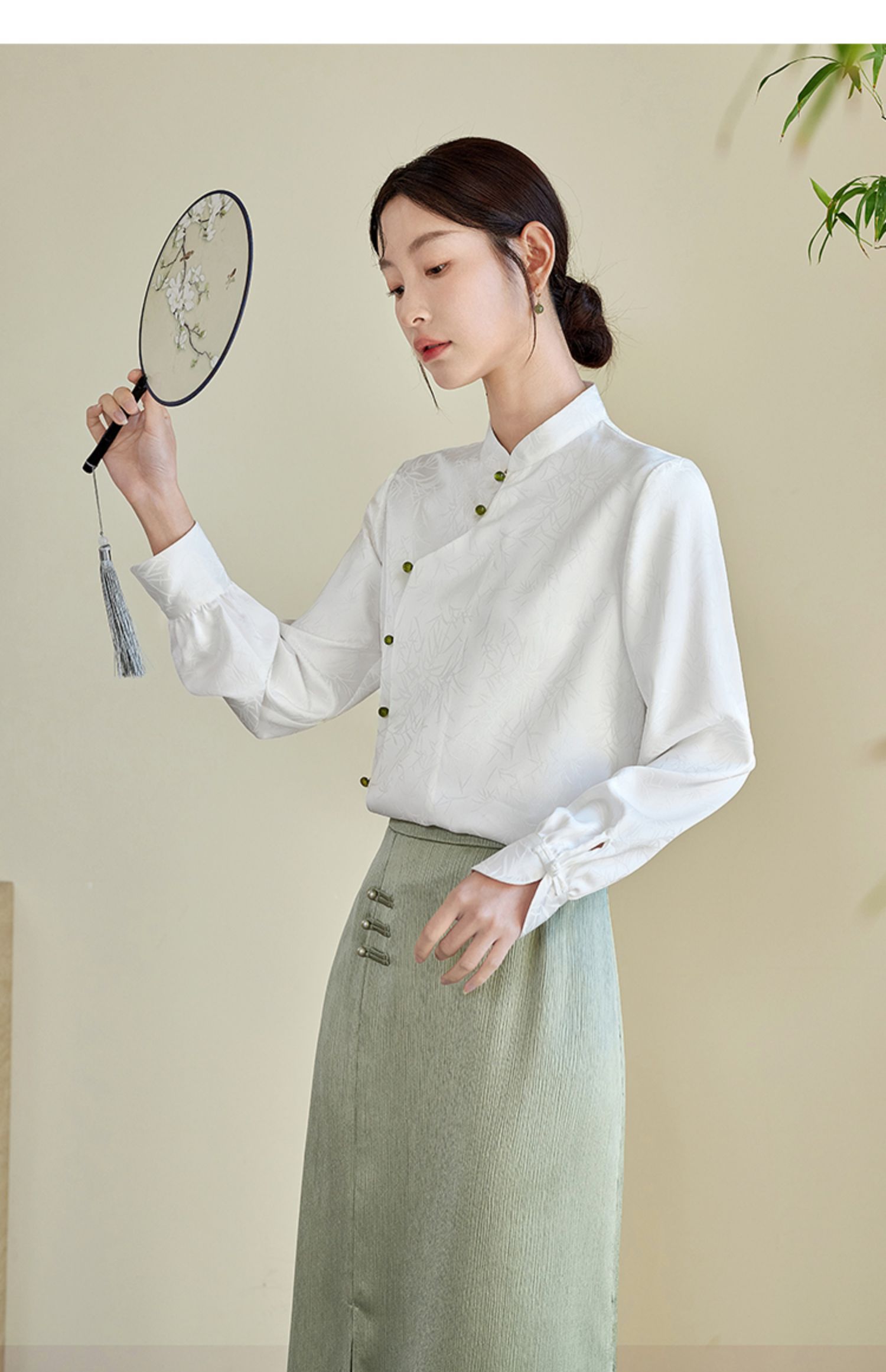 【年终特卖】熙世界国风复古暗纹新中式衬衫女长袖2025秋季新款别致立领上衣