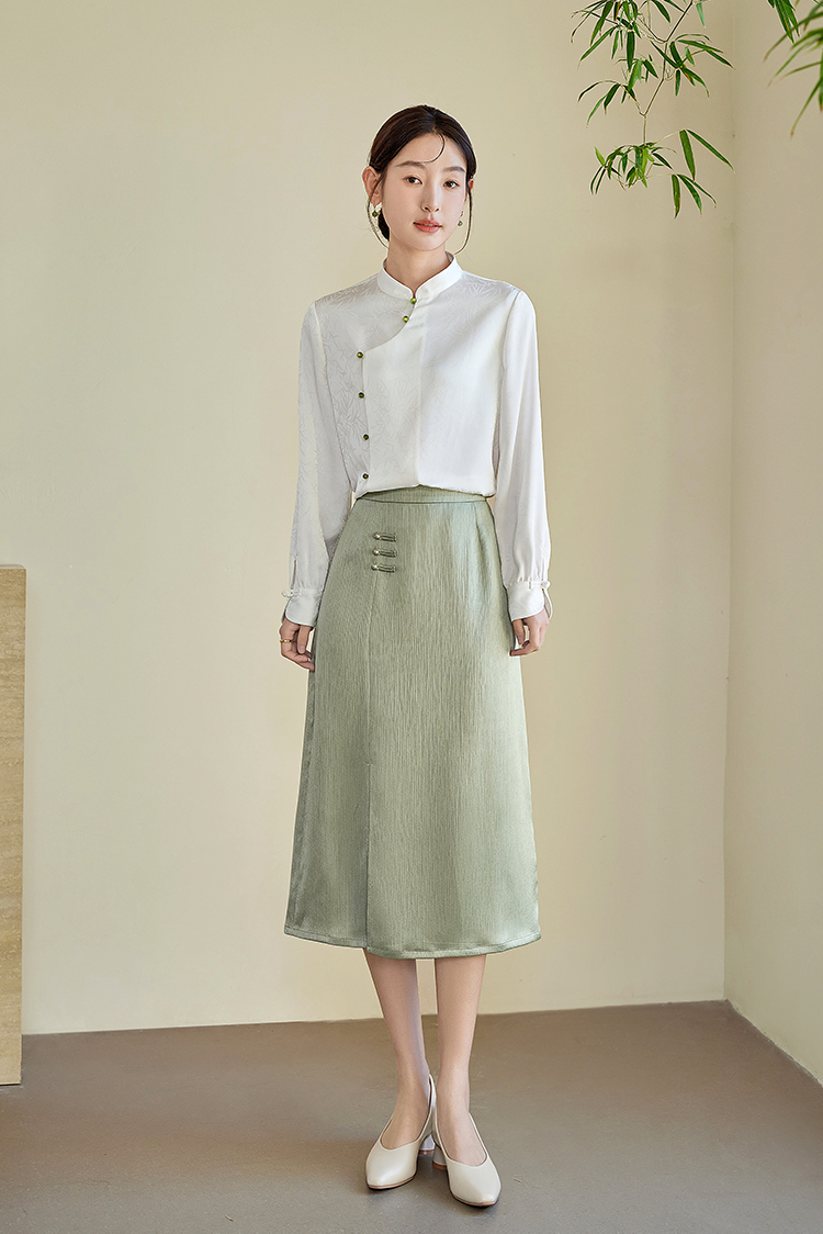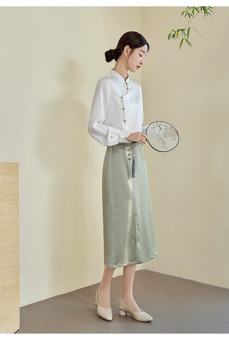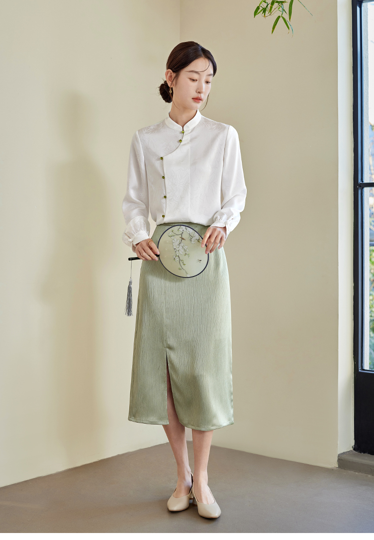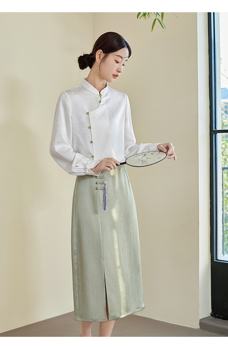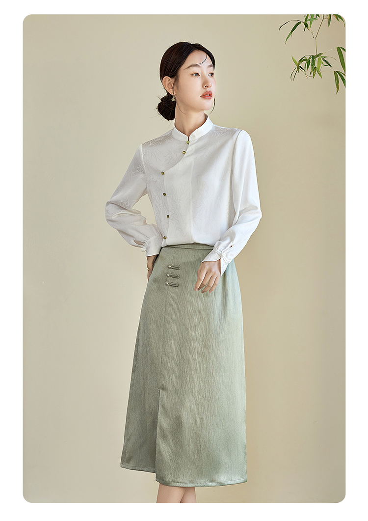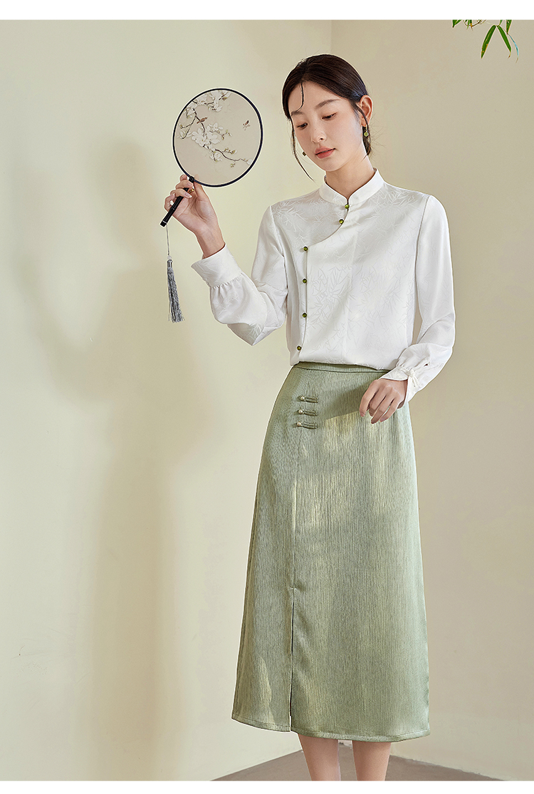 【年终特卖】熙世界国风复古暗纹新中式衬衫女长袖2025秋季新款别致立领上衣
