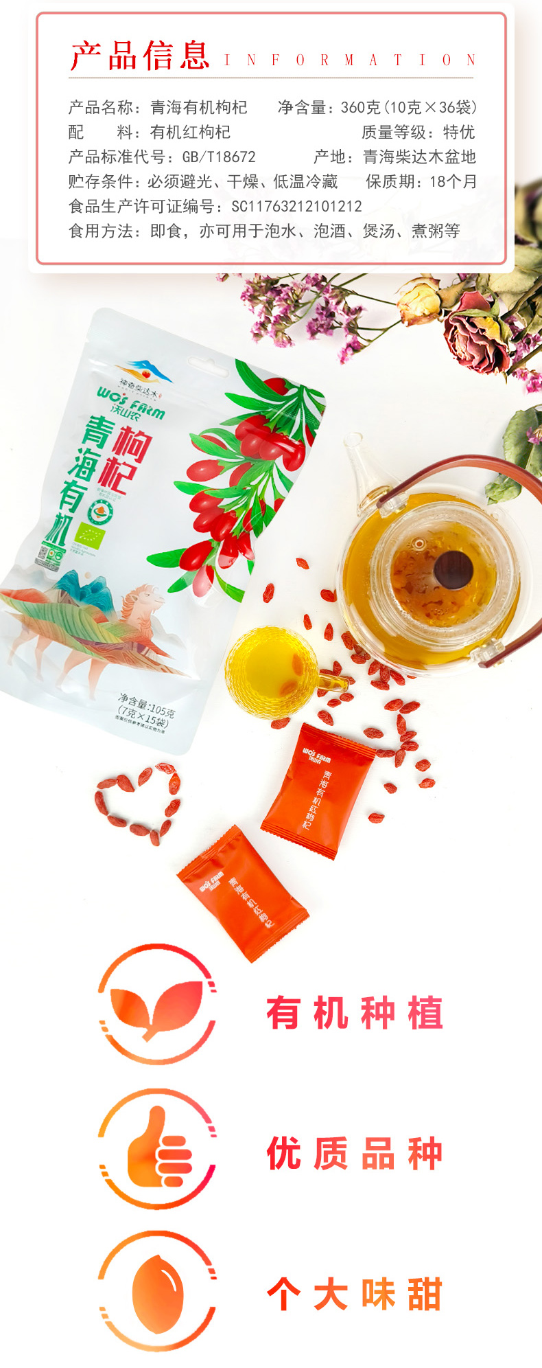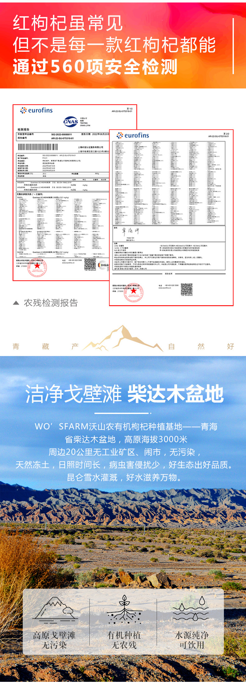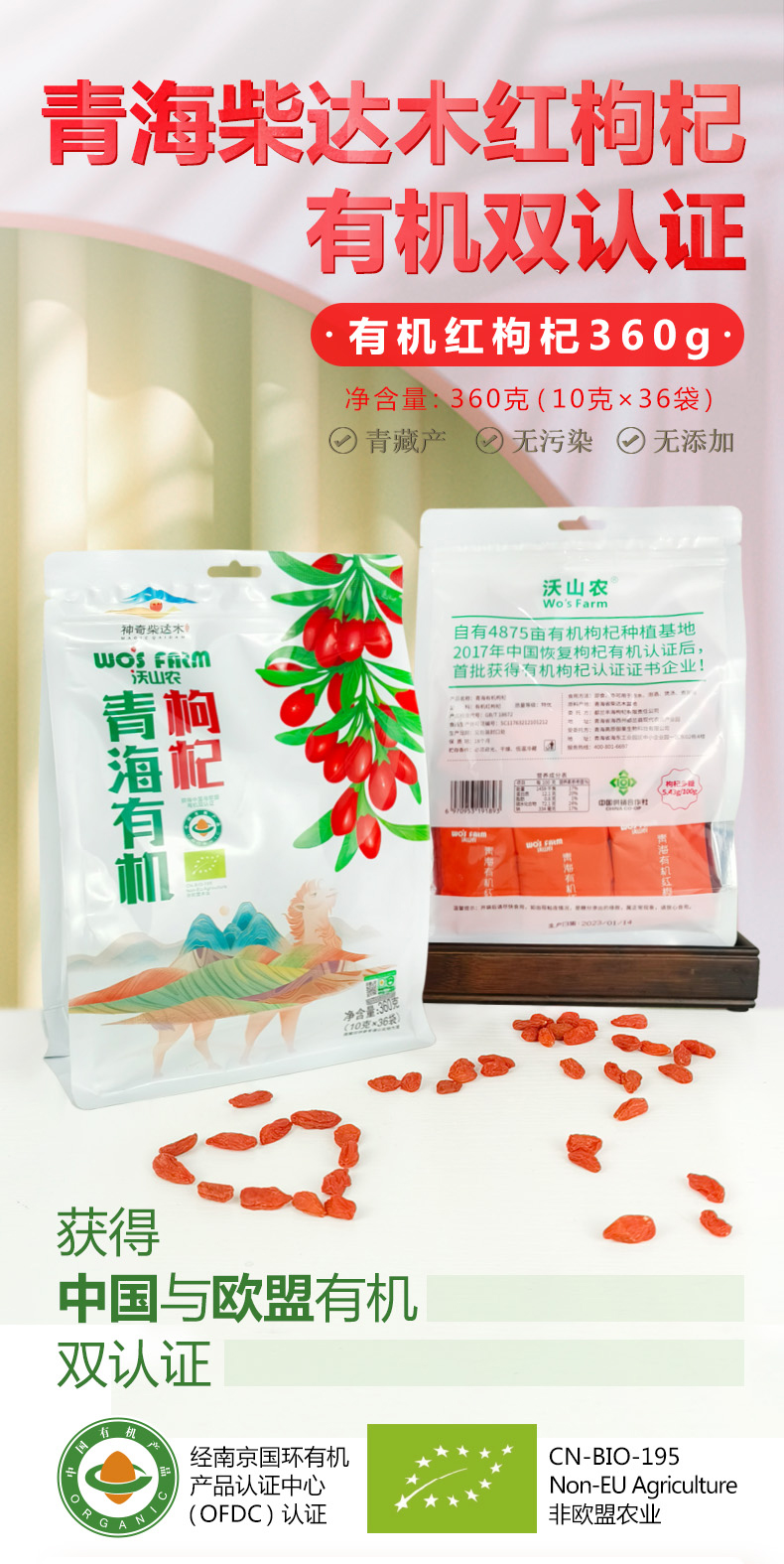 沃山农有机红枸杞子青藏柴达木盆地590项零农残检测免洗特级枸杞多糖360g