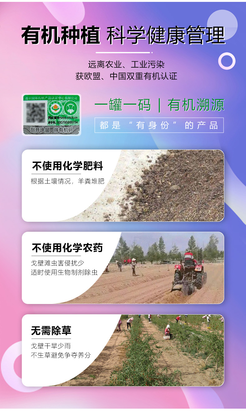 - 本商城所有产品都经过我们严格品控,安全放心。 我们坚持遵循有机标准,种植过程不使用农药,化肥, 激素,提倡蔬食、无添加、有机的生活方式。