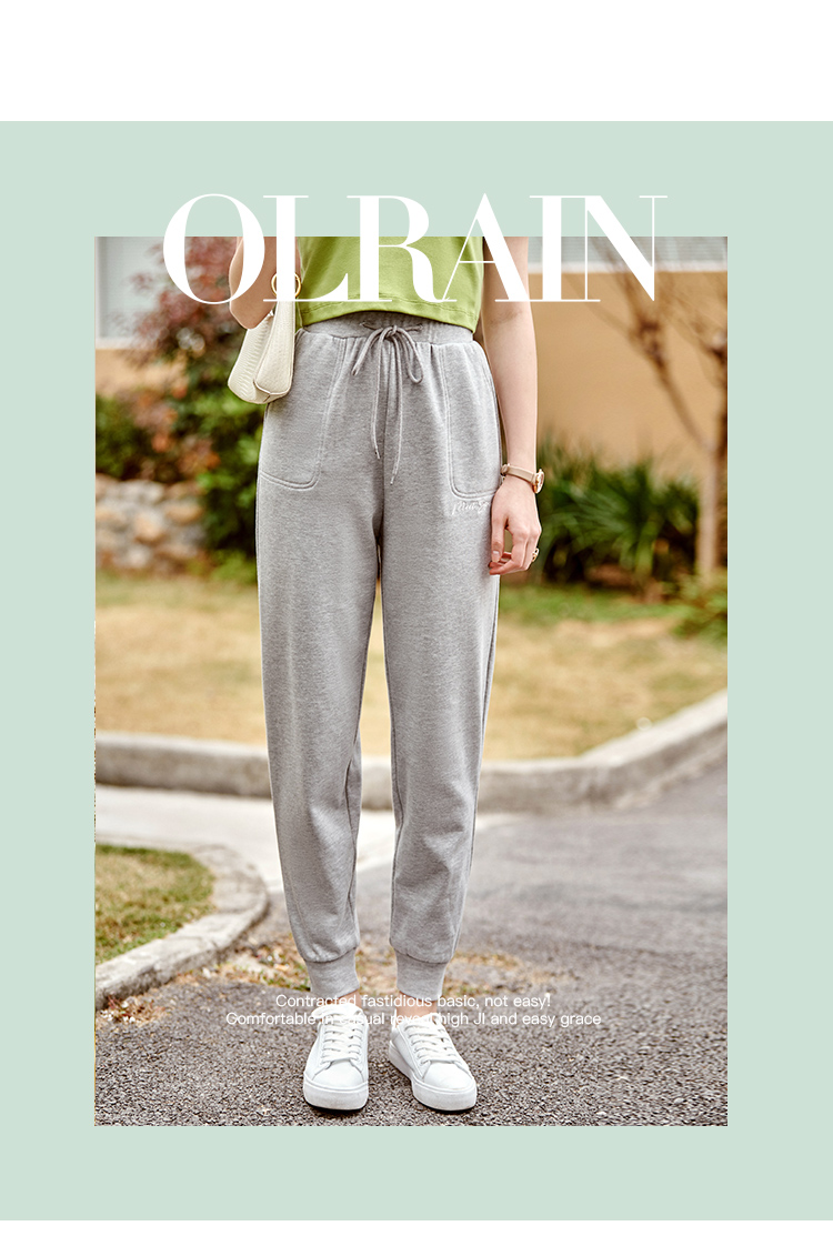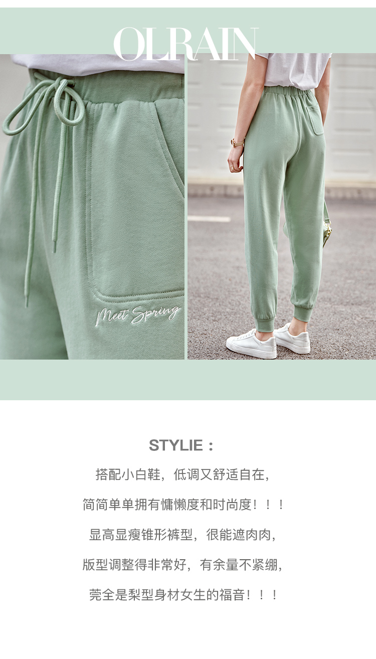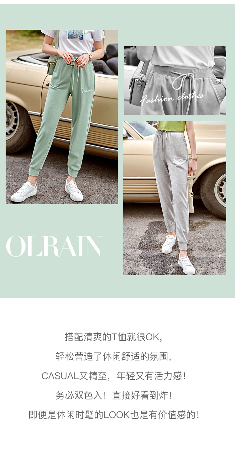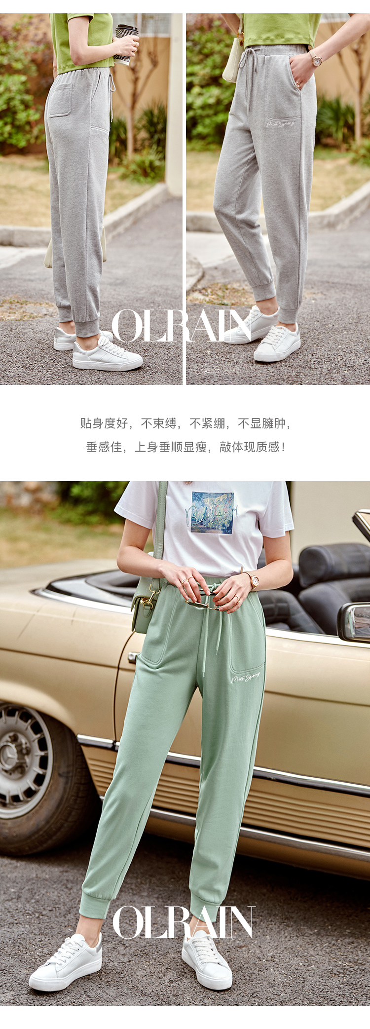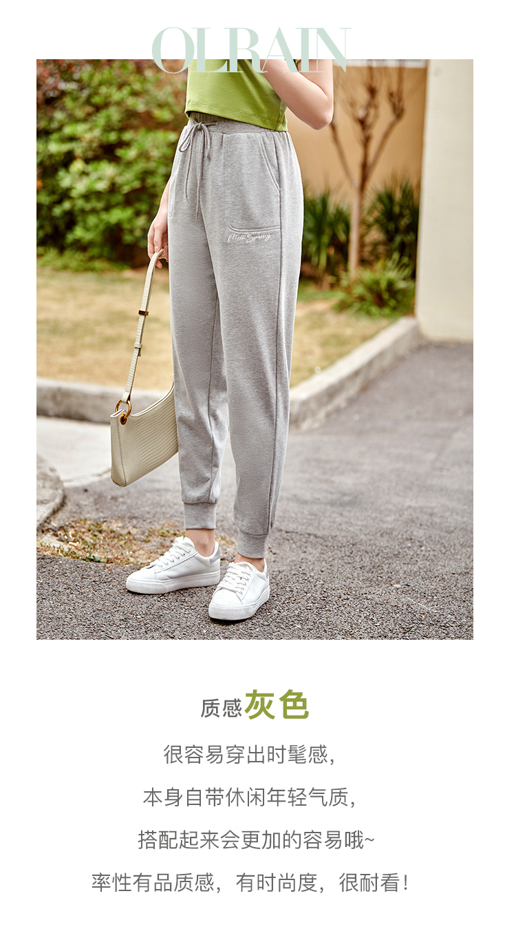 欧芮儿运动休闲裤女2021新款抽绳收腰束脚宽松弹力针织卫裤