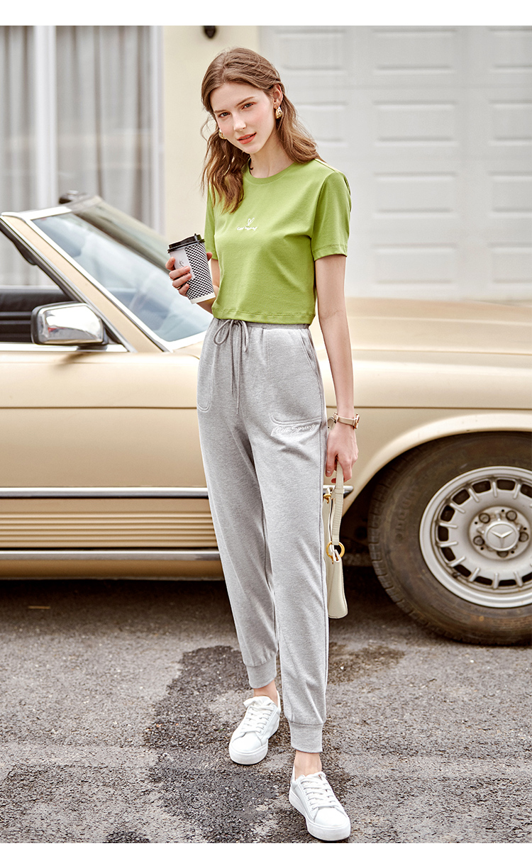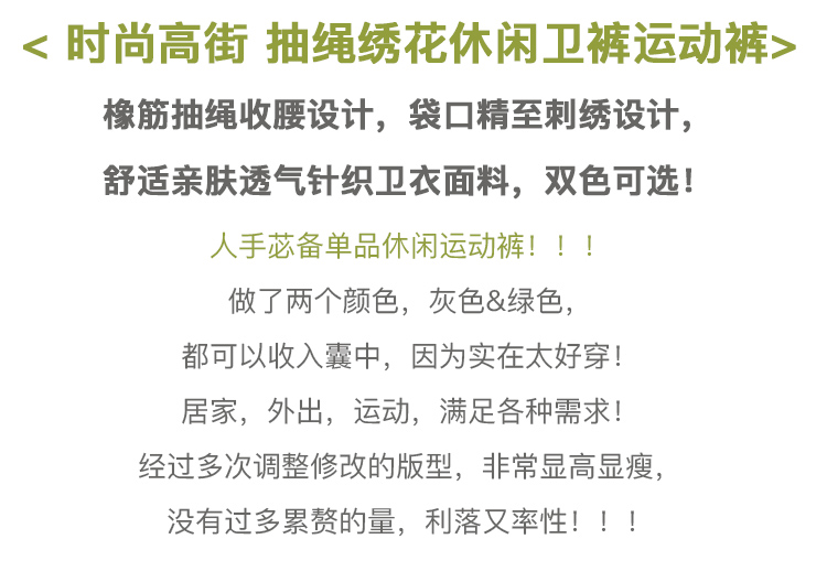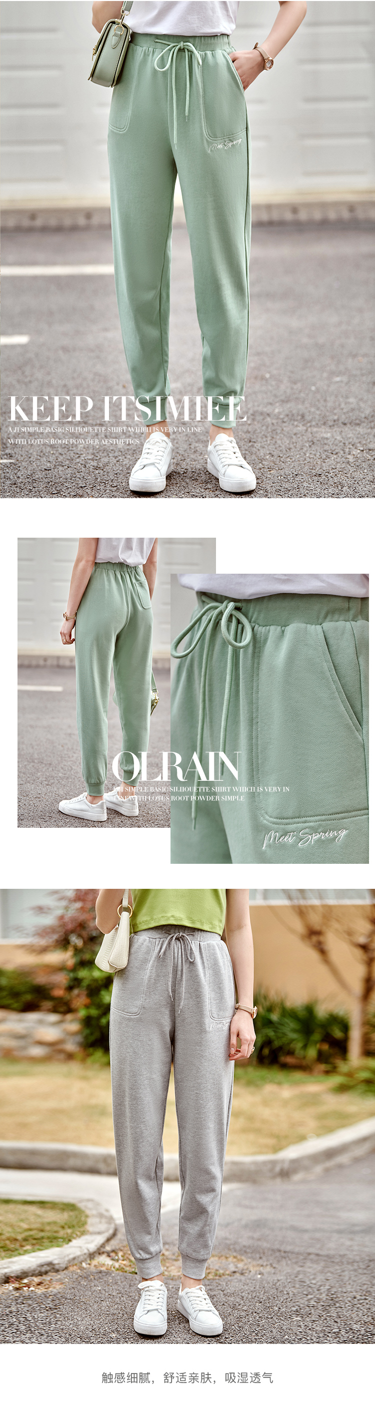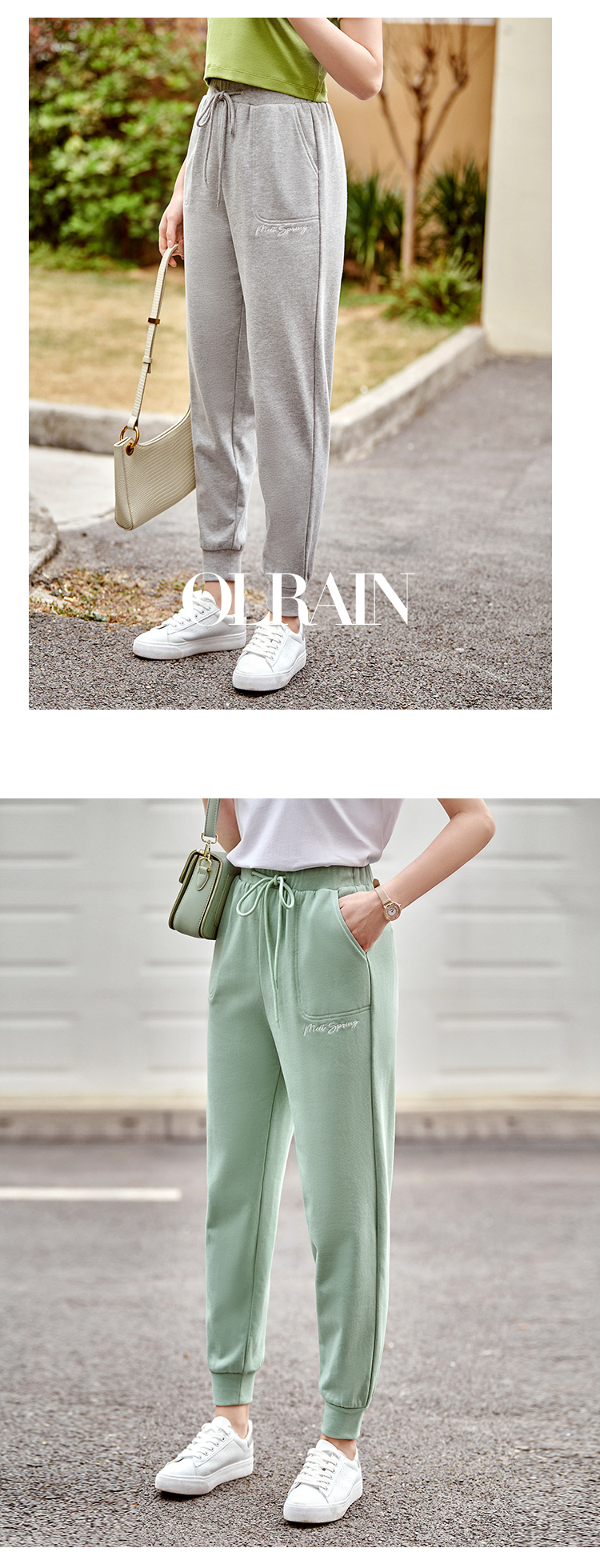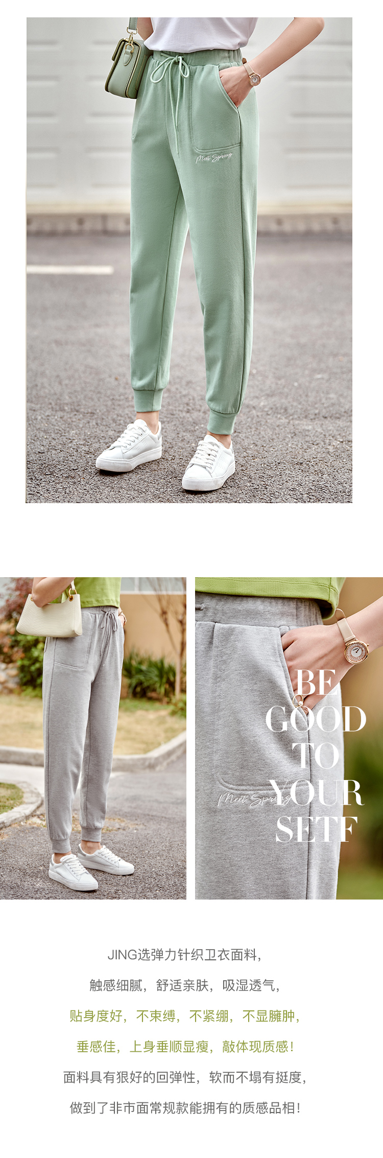 欧芮儿运动休闲裤女2021新款抽绳收腰束脚宽松弹力针织卫裤
