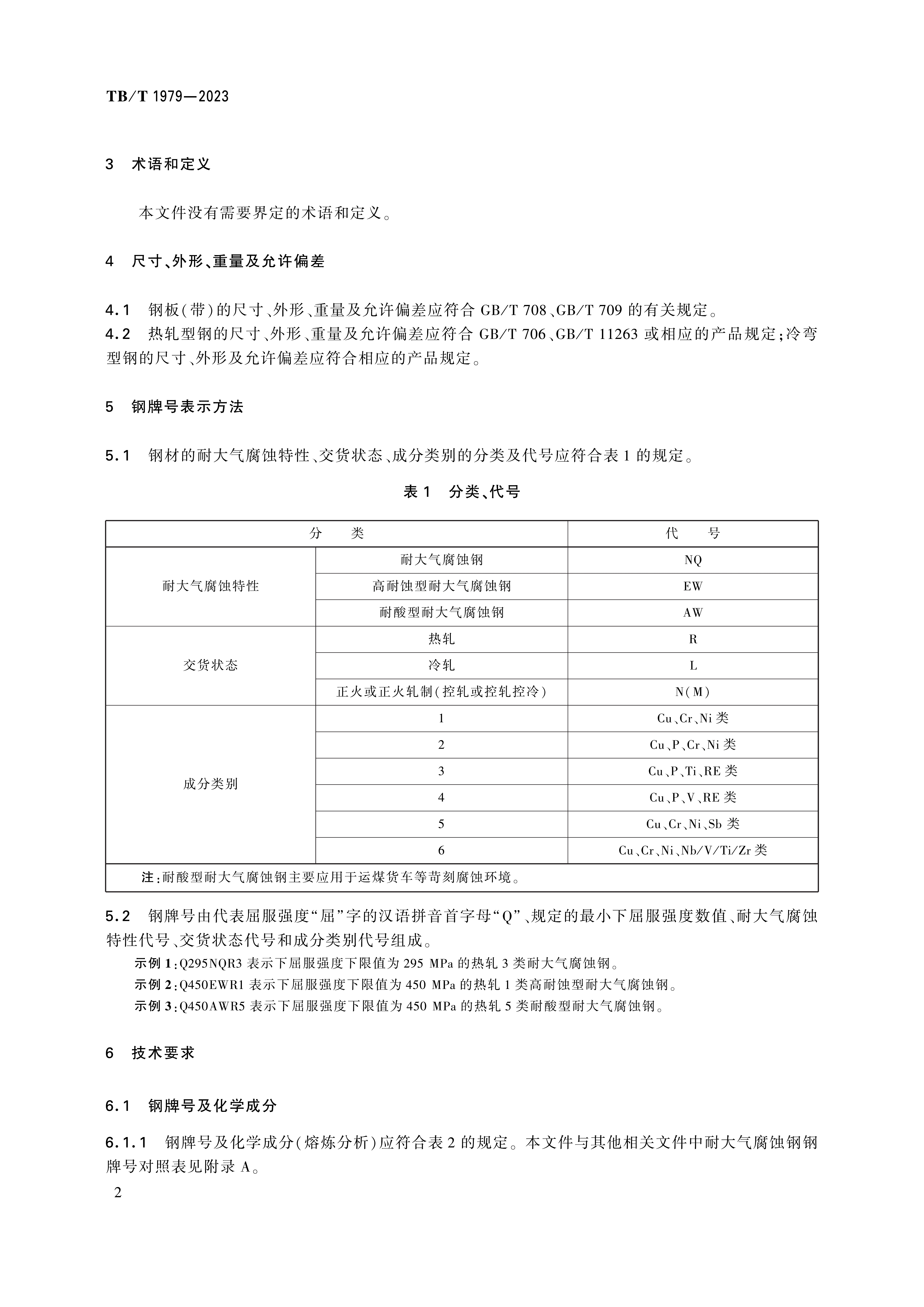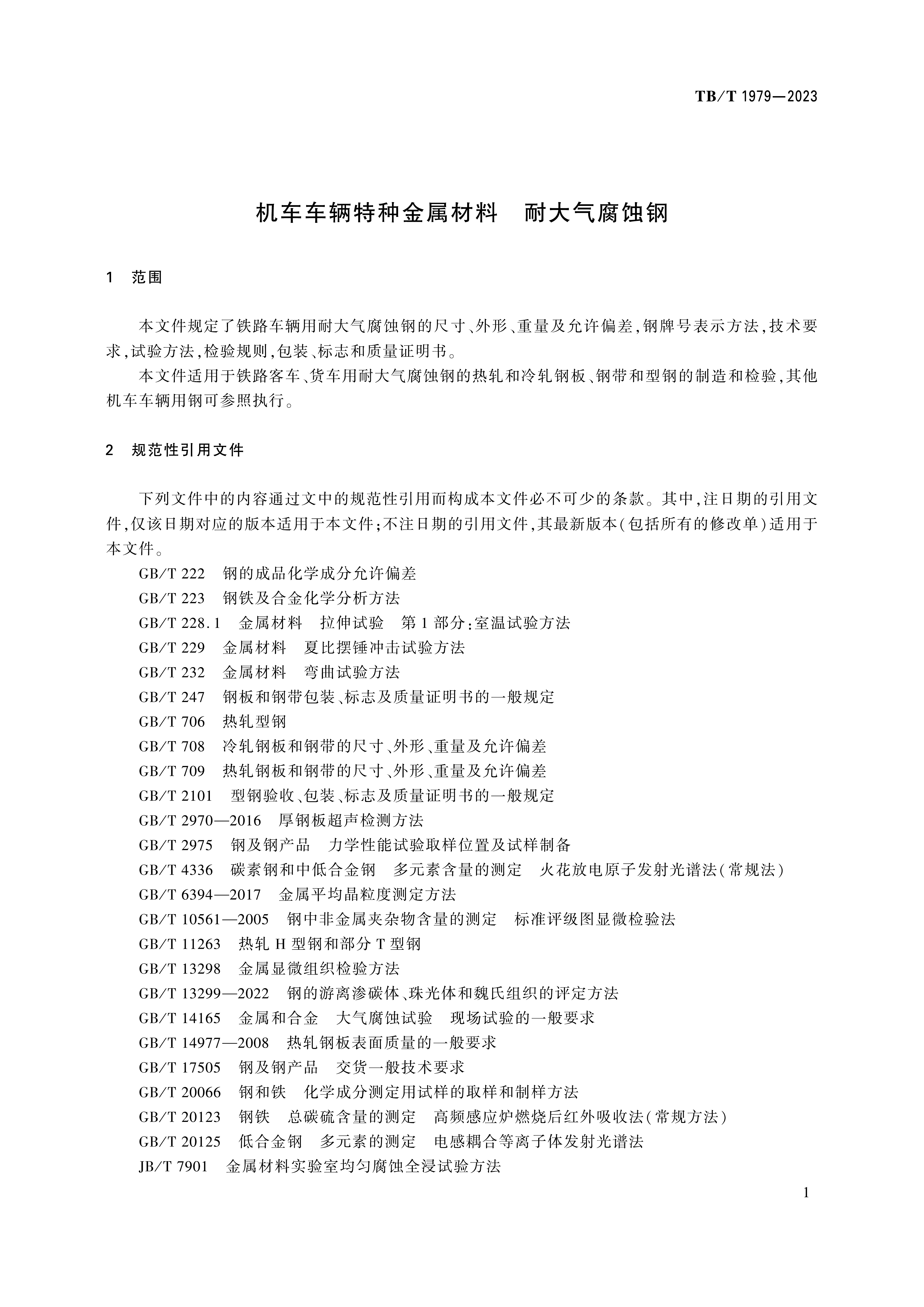 6885 机车车辆特种金属材料 耐大气腐蚀钢 TB/T 1979-2023