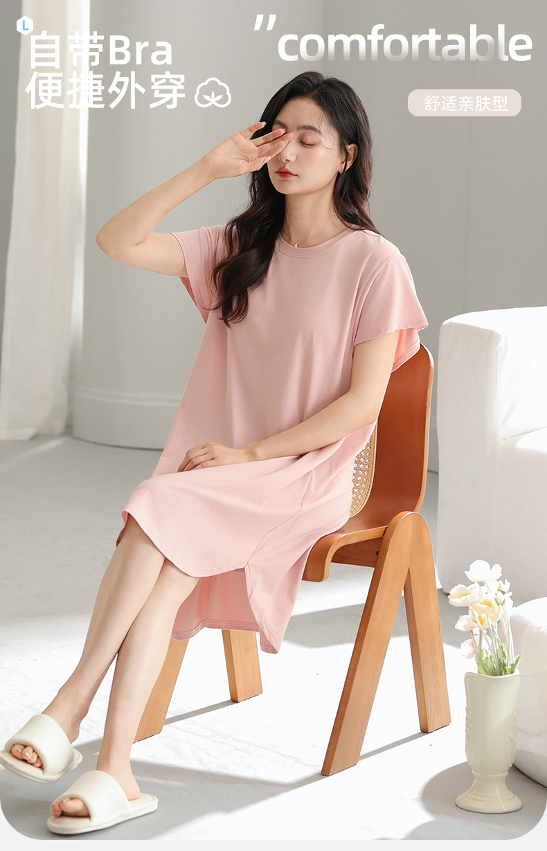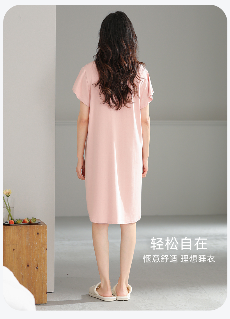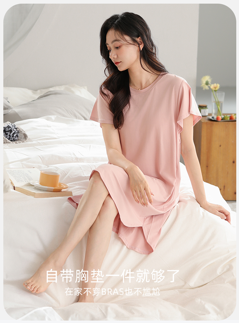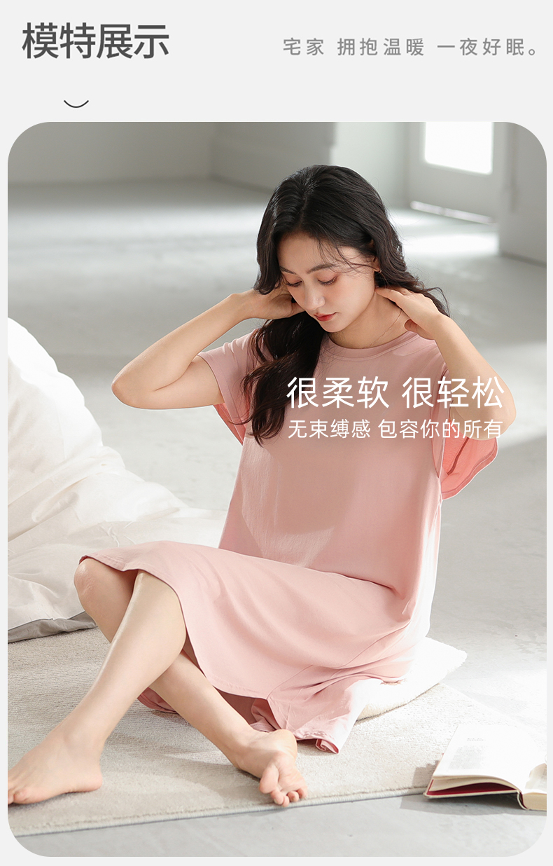 洁丽雅夏季新款莫代尔大码连体舒适亲肤透气可外穿睡衣睡裙家居服