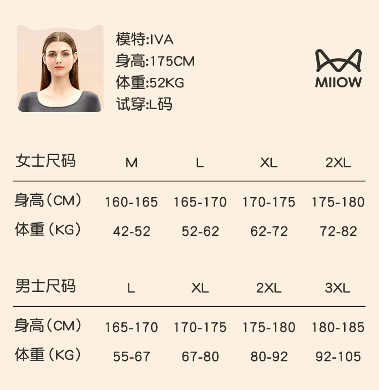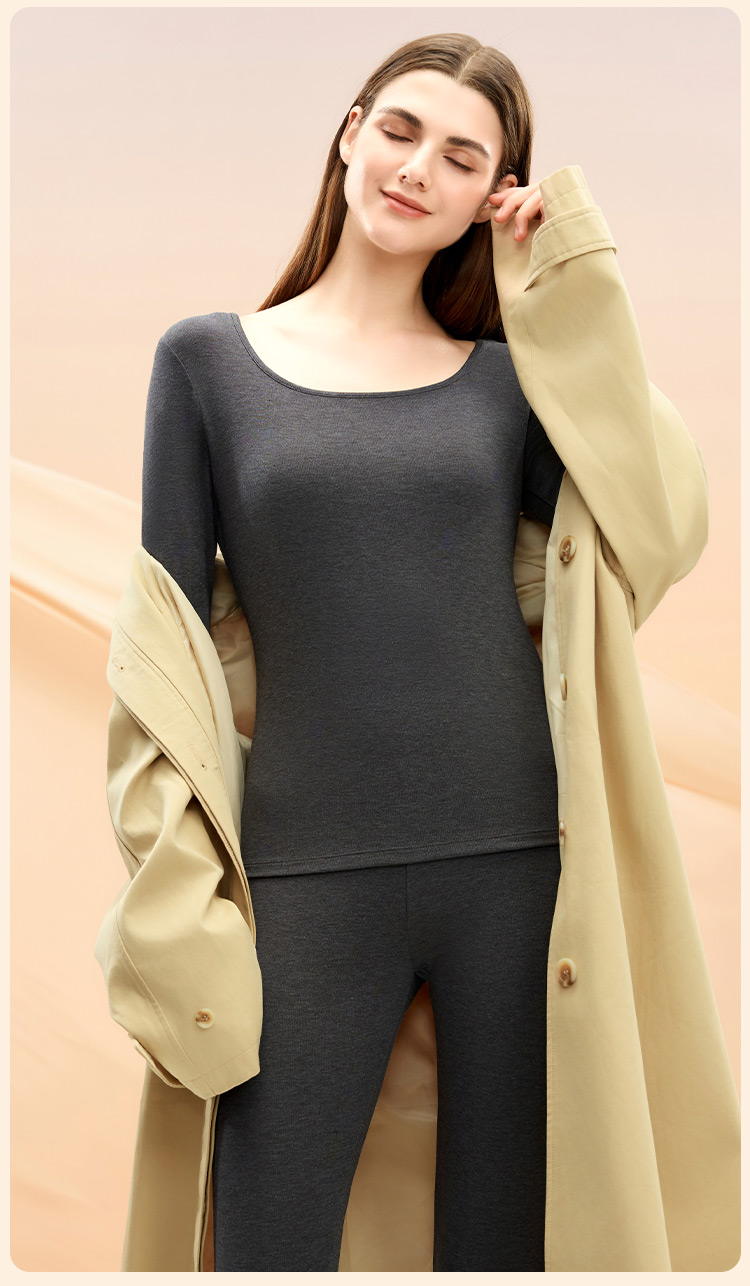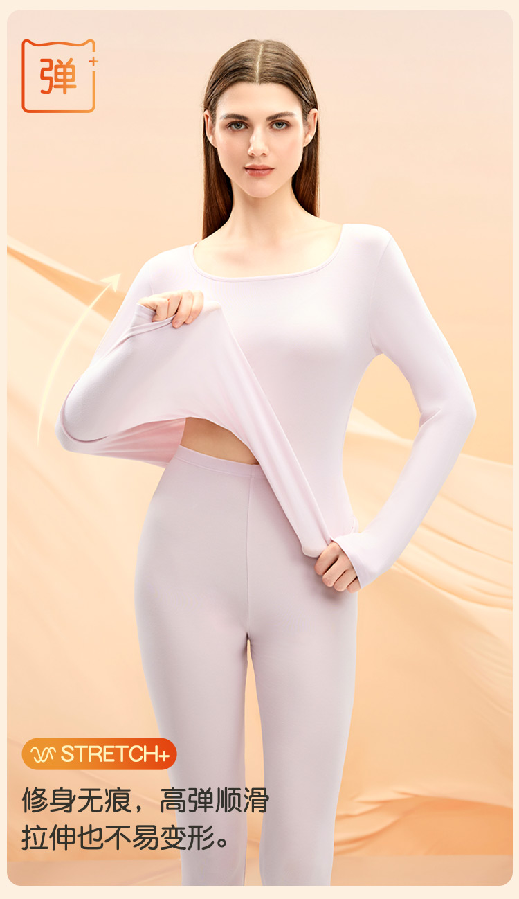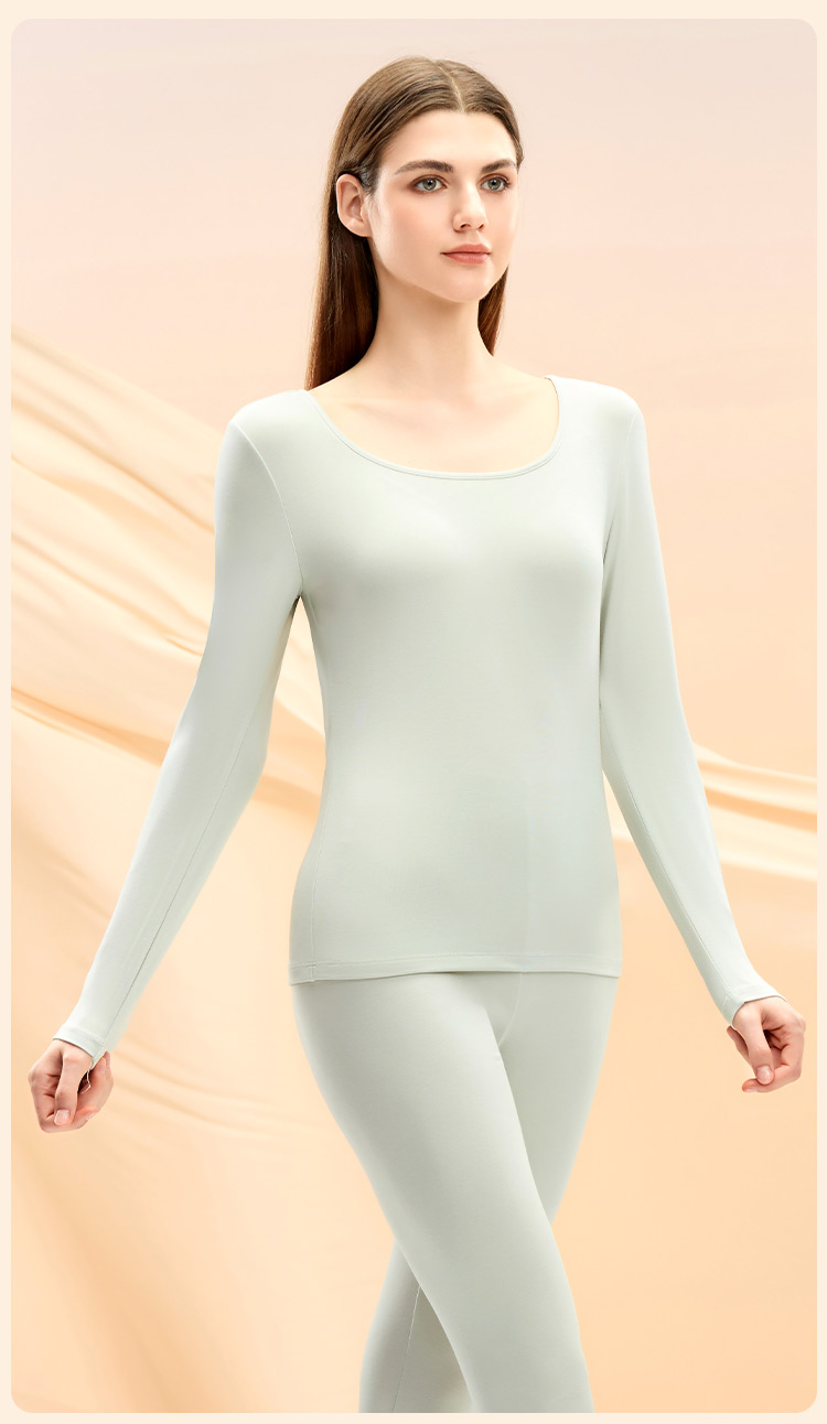 【M-2XL】【腈纶莫代尔 】【猫人】女士方领保暖内衣套装