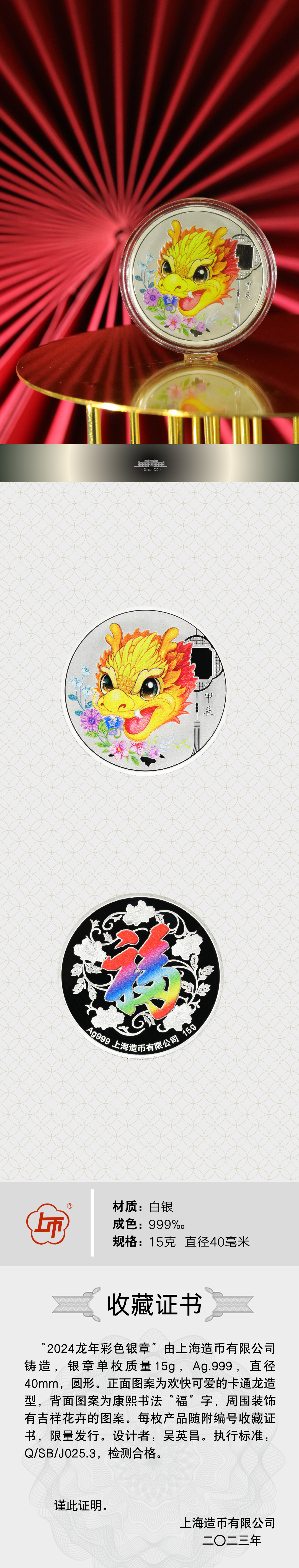 2024龙年彩色银章15克