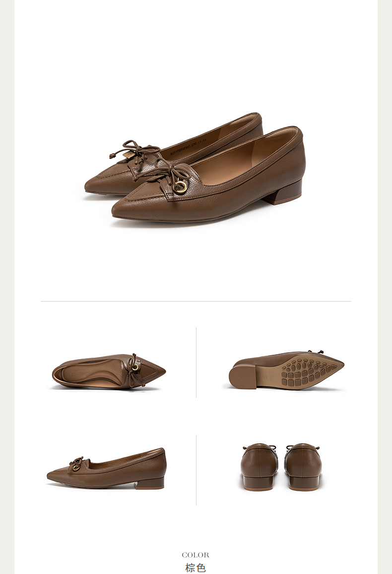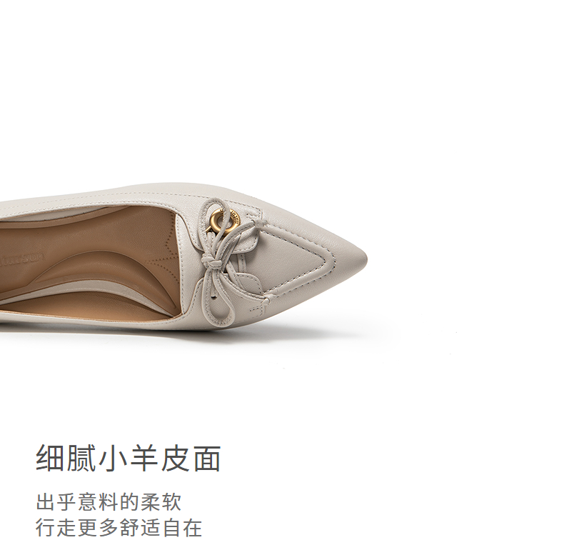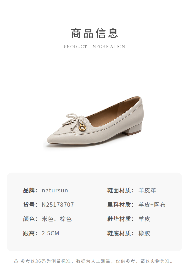 natursun气质单鞋尖头浅口一脚蹬法式超软小羊皮女鞋N25178707