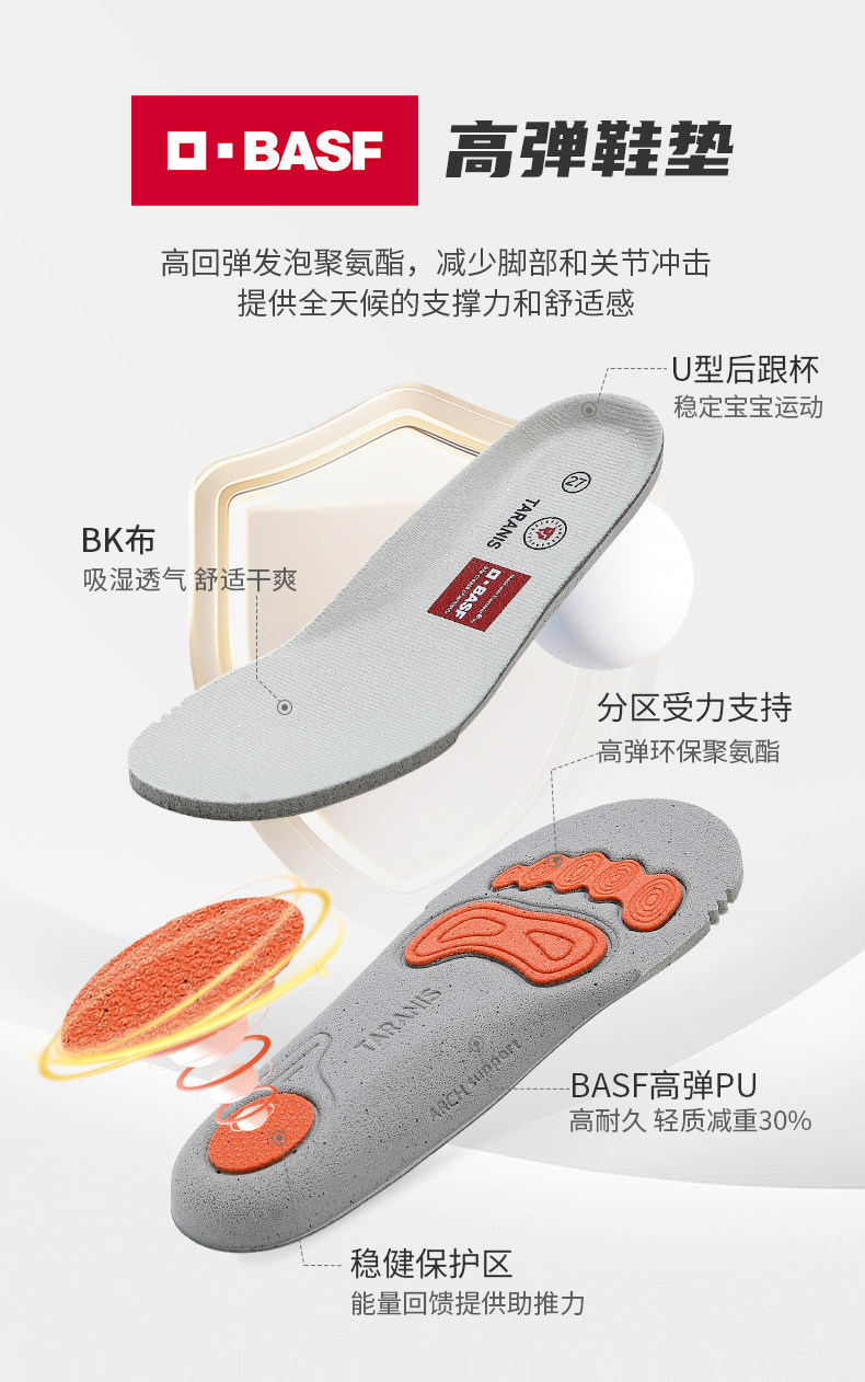 泰兰尼斯春季新款宝宝学步鞋软底运动鞋机能透气网面鞋T01T5A6340
