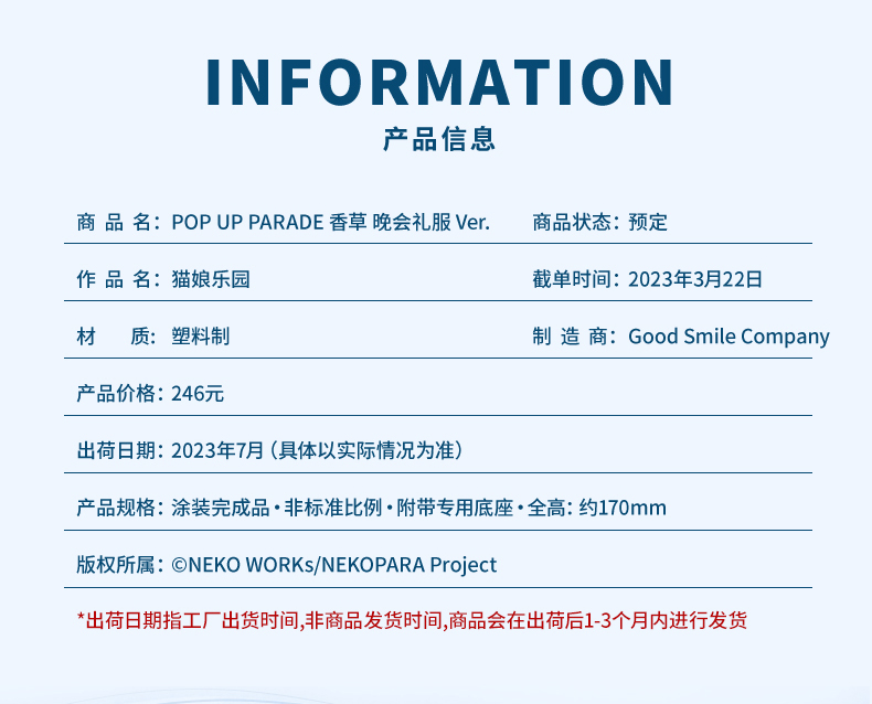 【GSC现货】POP UP PARADE 香草 晚会礼服 Ver. 猫娘乐园