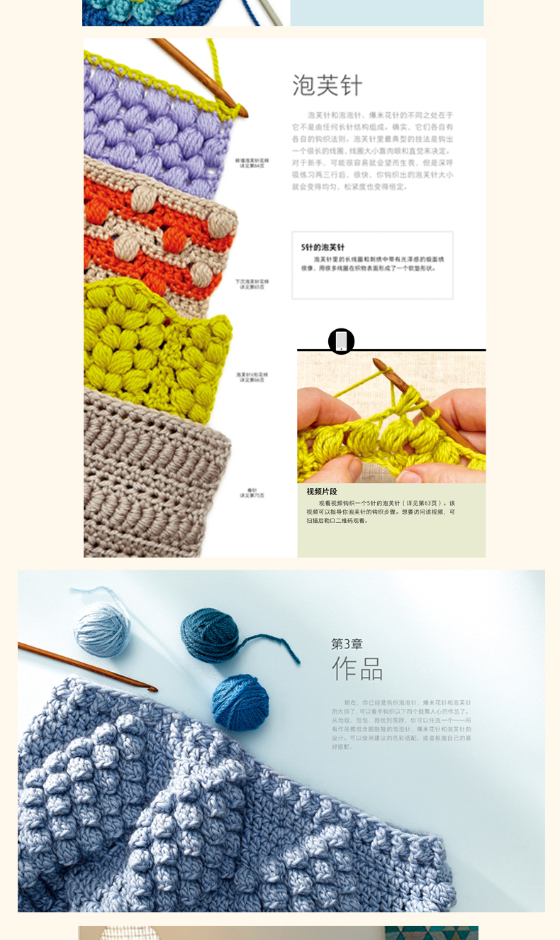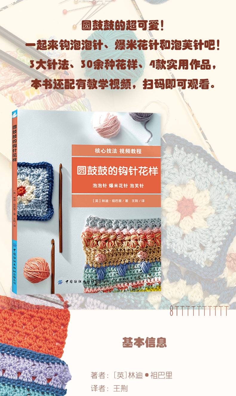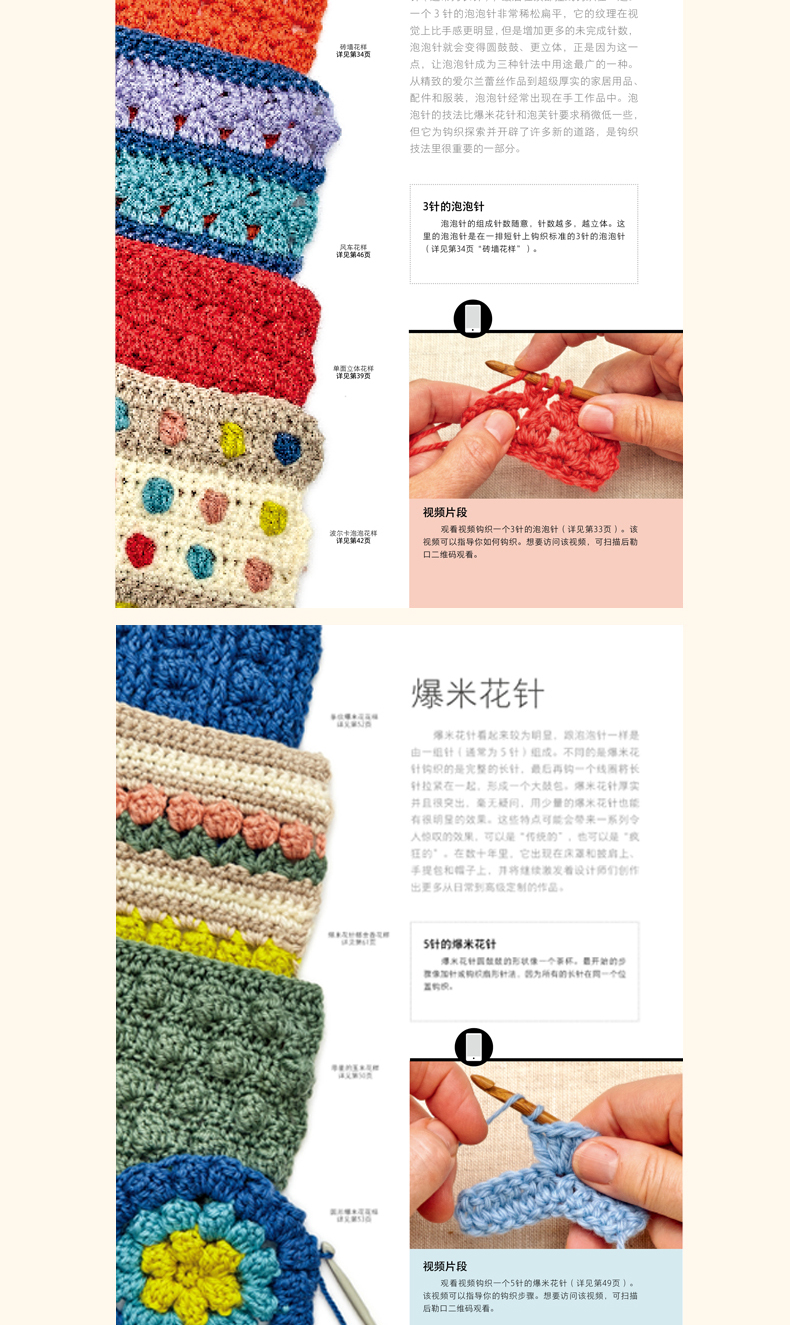 【视频教学】圆鼓鼓的钩针花样 林迪·祖巴里 泡泡针爆米花针泡芙针钩针编织技法详讲 地垫抱枕毛衣编织图案花样大全 棒针编织教程