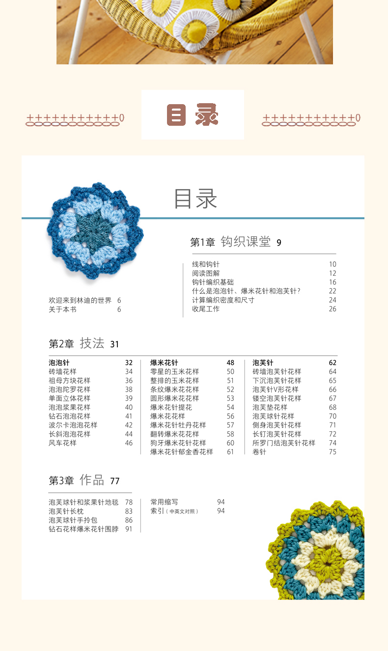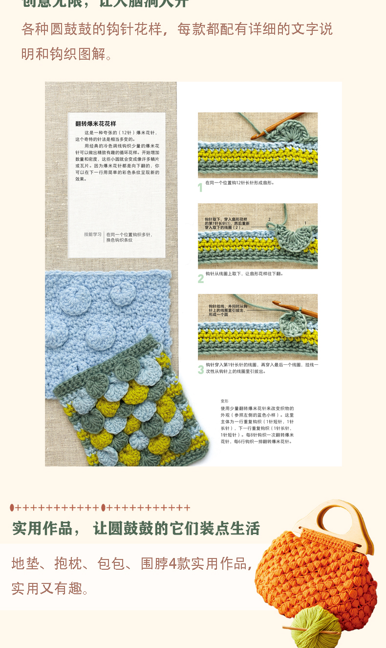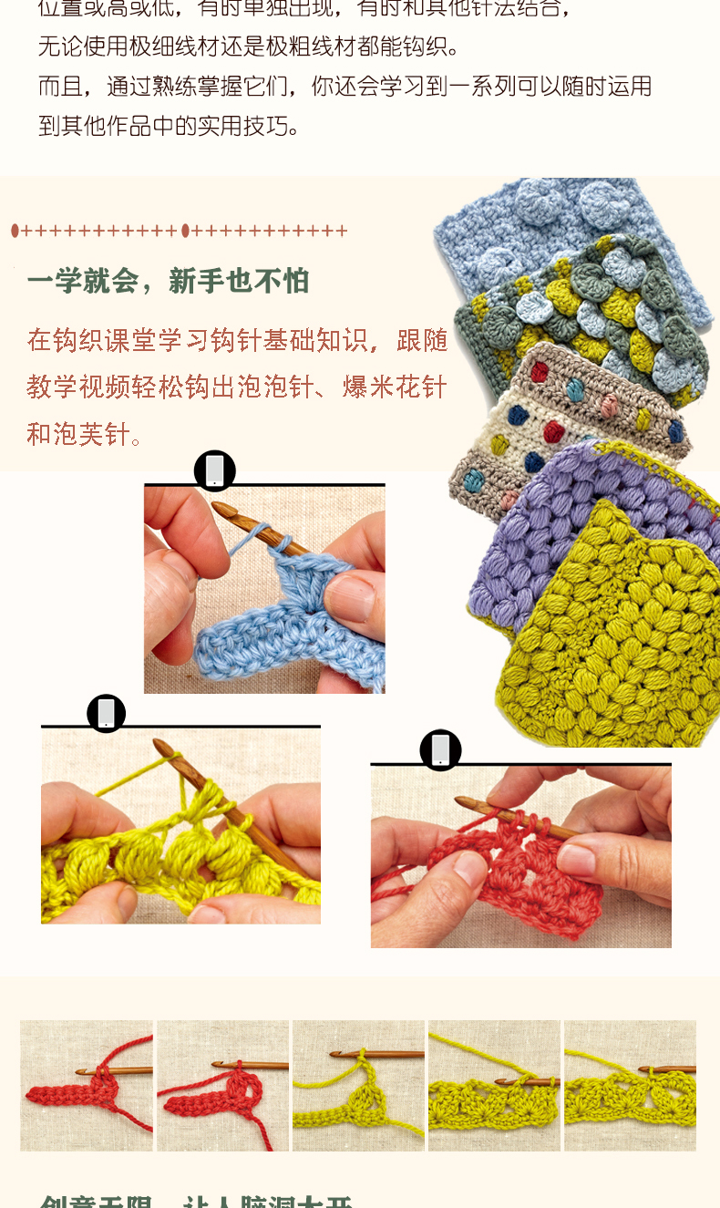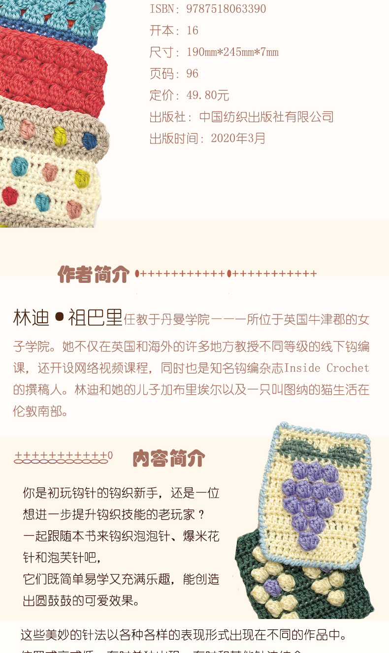 【视频教学】圆鼓鼓的钩针花样 林迪·祖巴里 泡泡针爆米花针泡芙针钩针编织技法详讲 地垫抱枕毛衣编织图案花样大全 棒针编织教程